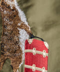 動物の毛並みや表情まで繊細に刺しゅうされているバッグ。