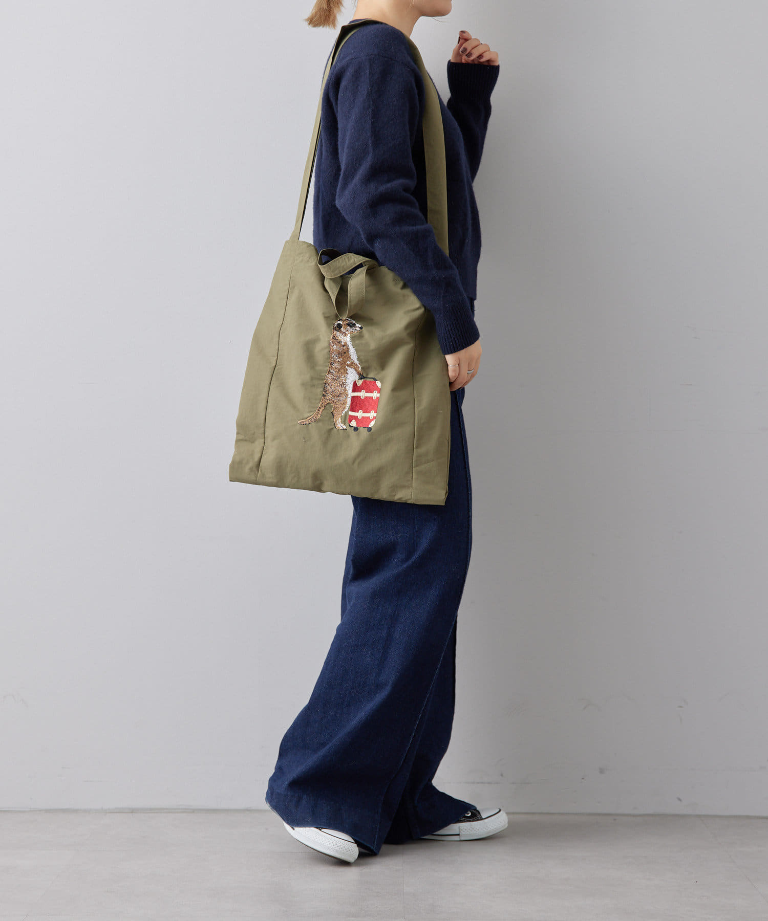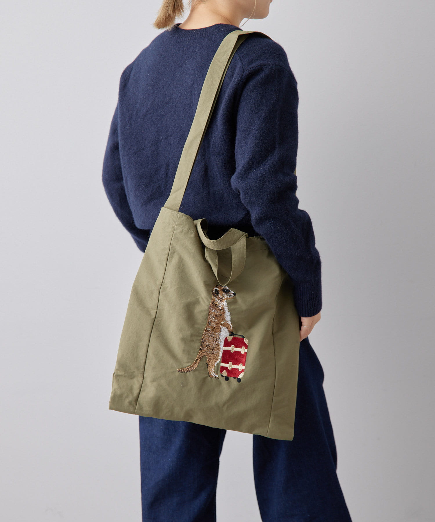 アニマル刺しゅうがポイントの2wayトートバッグ。