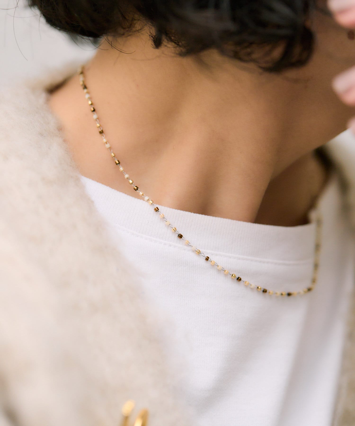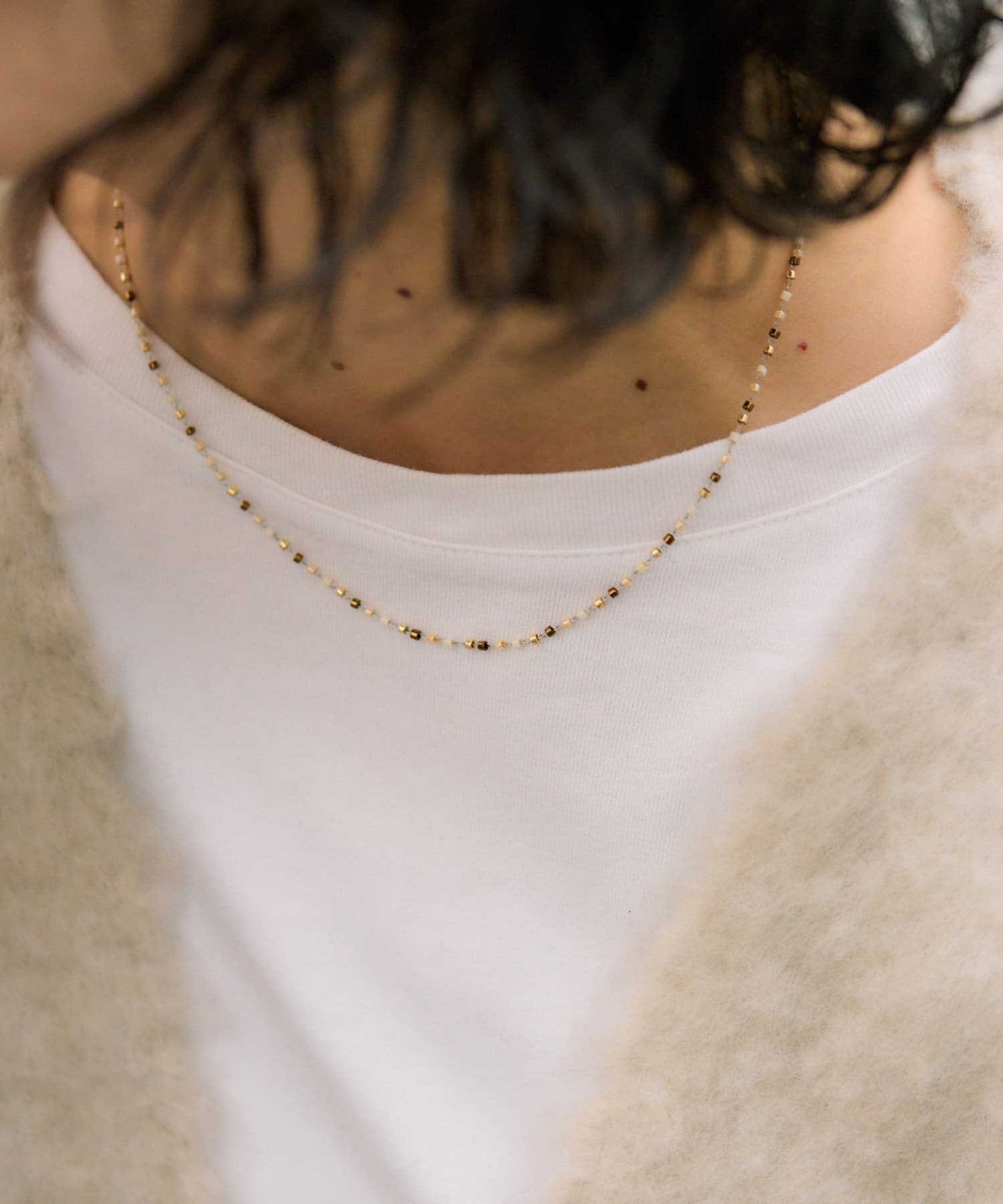 小粒のビーズを連ねた繊細なデザインのネックレス。