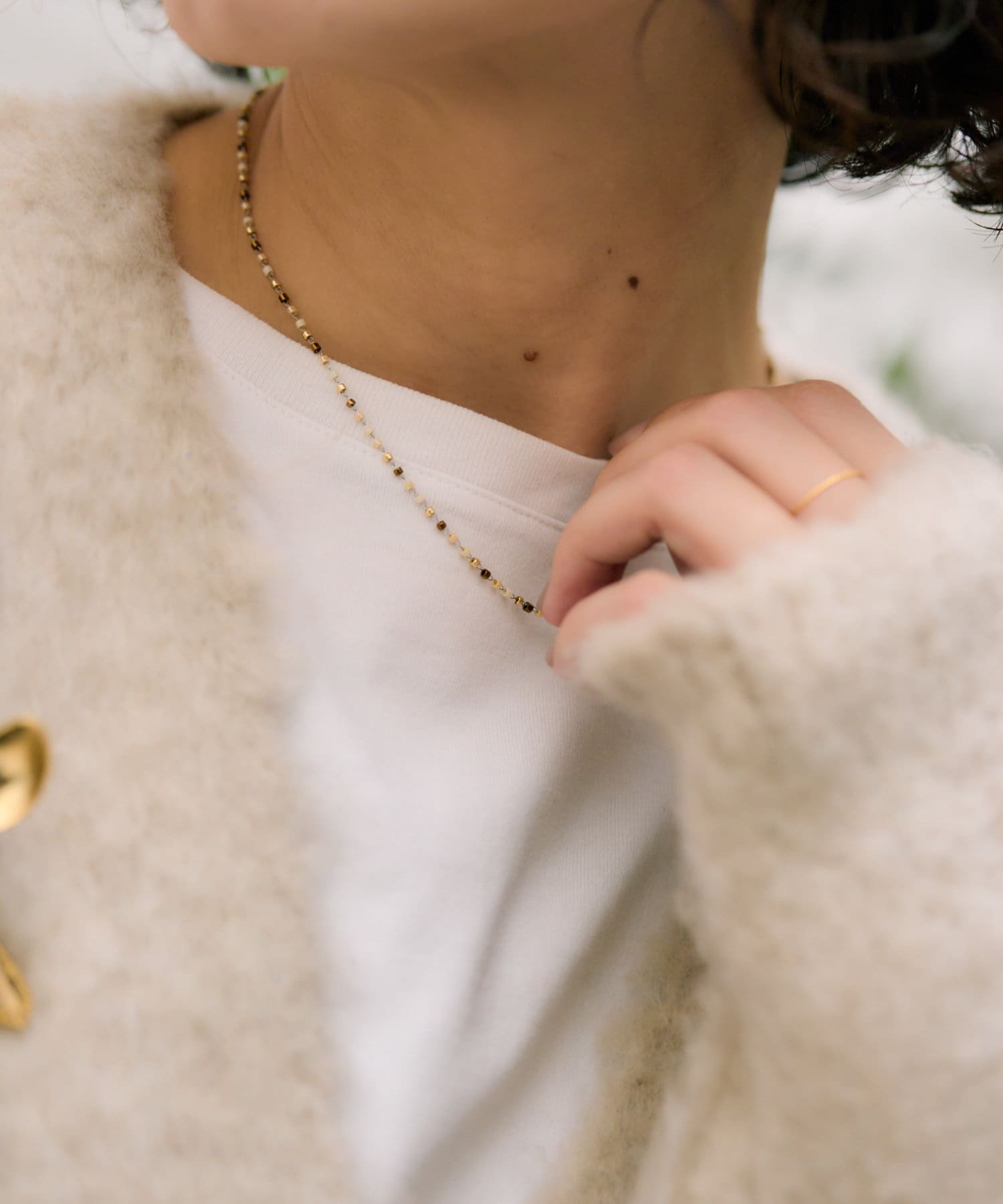 お手持ちのチェーンネックレスやペンダントと合わせて