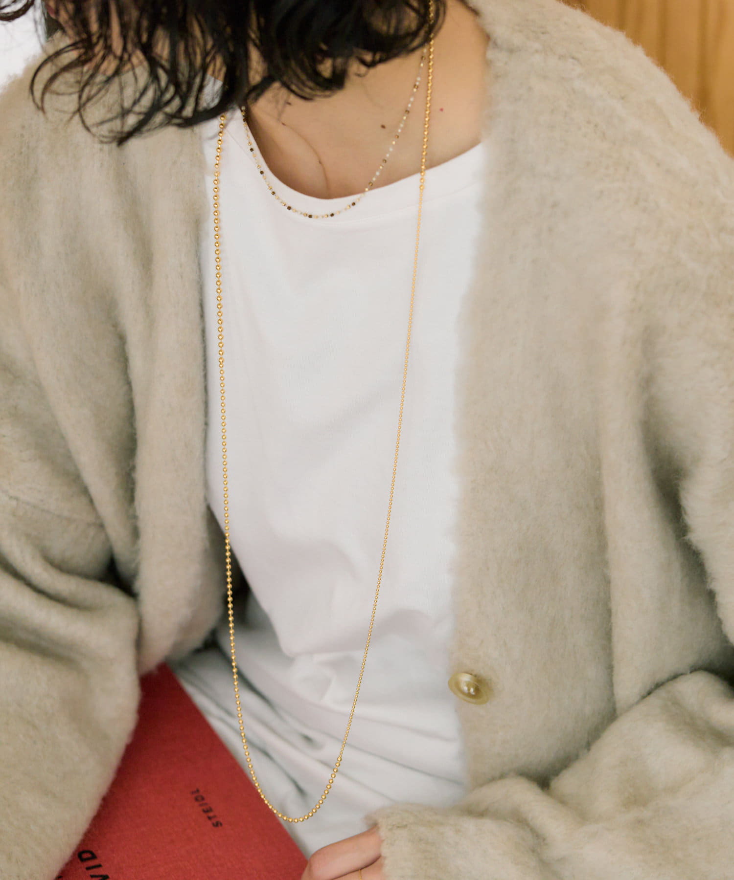アレンジが効くボールチェーンのロングネックレス