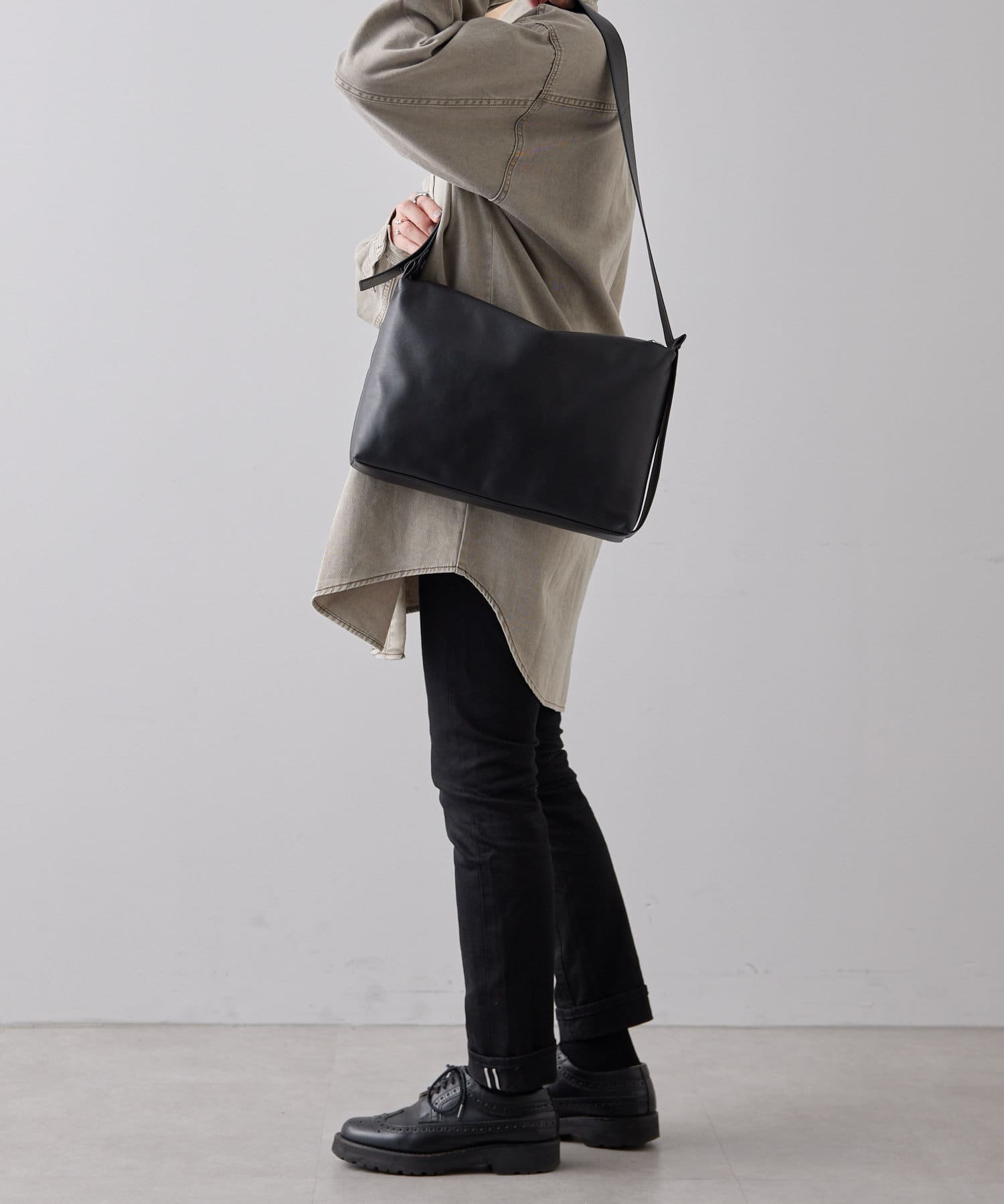 本革/チャコールグレー/サイズ:持ち手58.5~92cm、高さ24.5cm、幅32.5cm、マチ5.5cm -