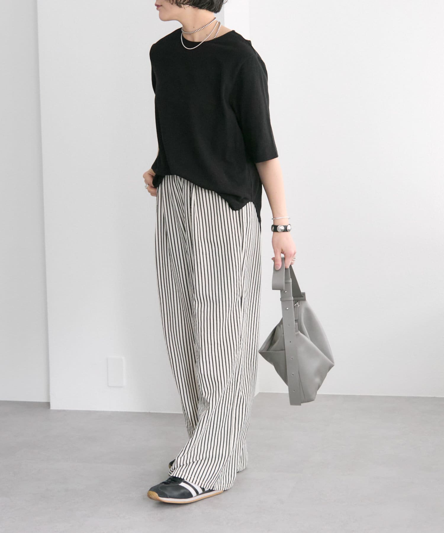 コーディネートのベースとなるシンプルなTシャツから、トレンドライクなハイネックデザインが登場。着心地のよさにもこだわり、柔らかな風合いのレーヨンコットン素材を使用しました。メインとしてはもちろん、インナーレイヤードにもおすすめ。着回しに役立つボーダー柄をご用意しました★