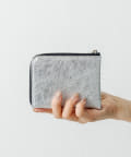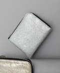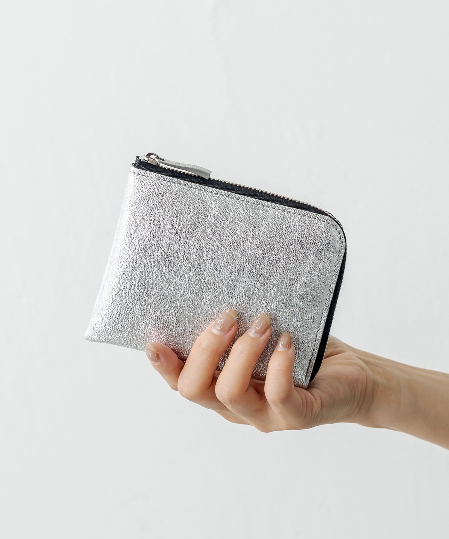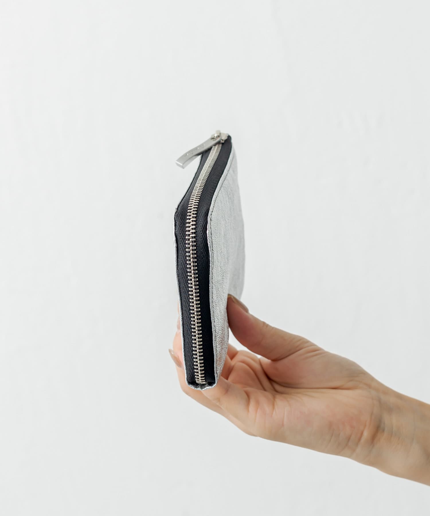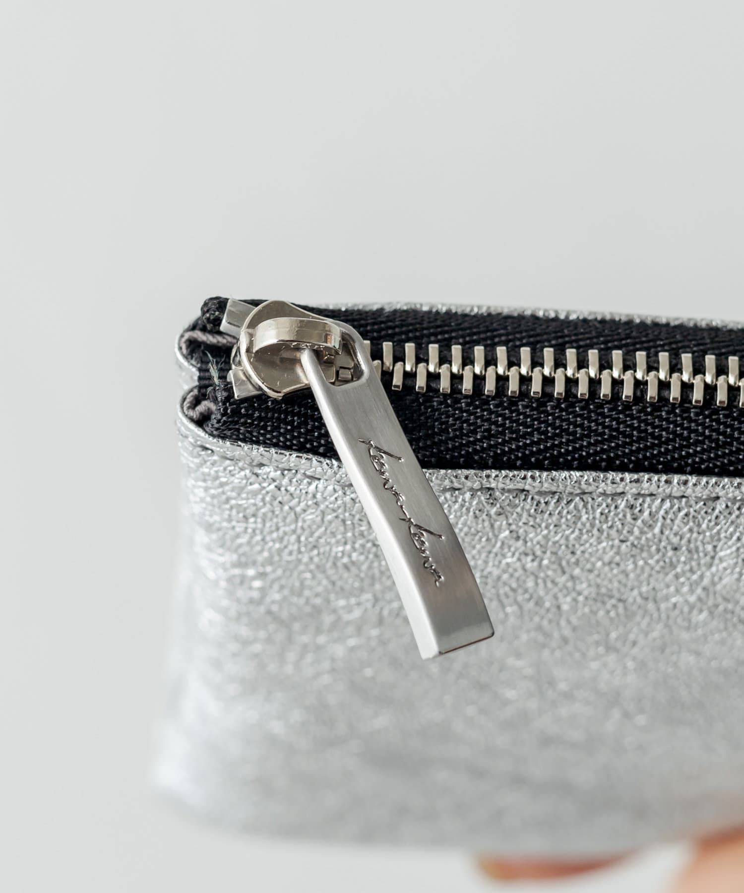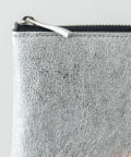 本体にはやぎ革にシルバー箔を圧着し、更に洗い&ヒートドラムシュリンク加工を施した革質が感じられるメタリック素材。