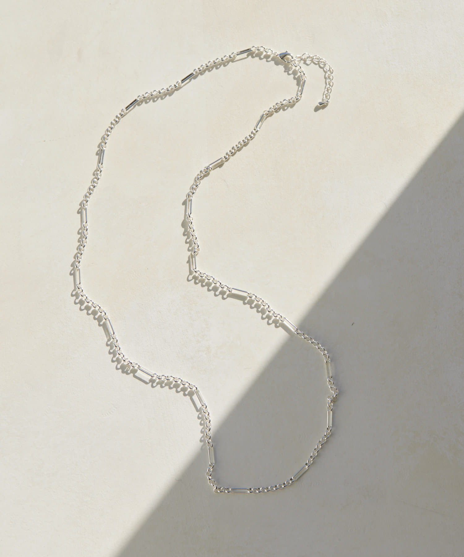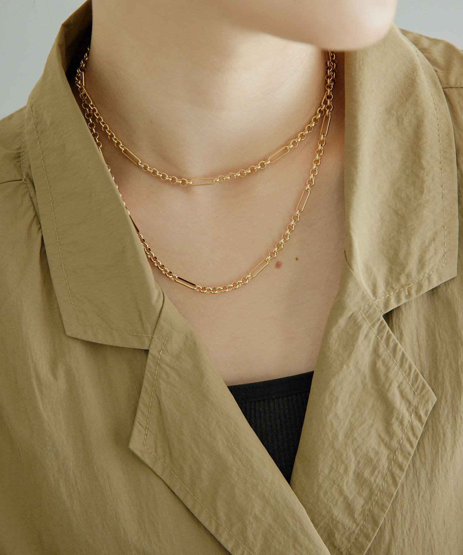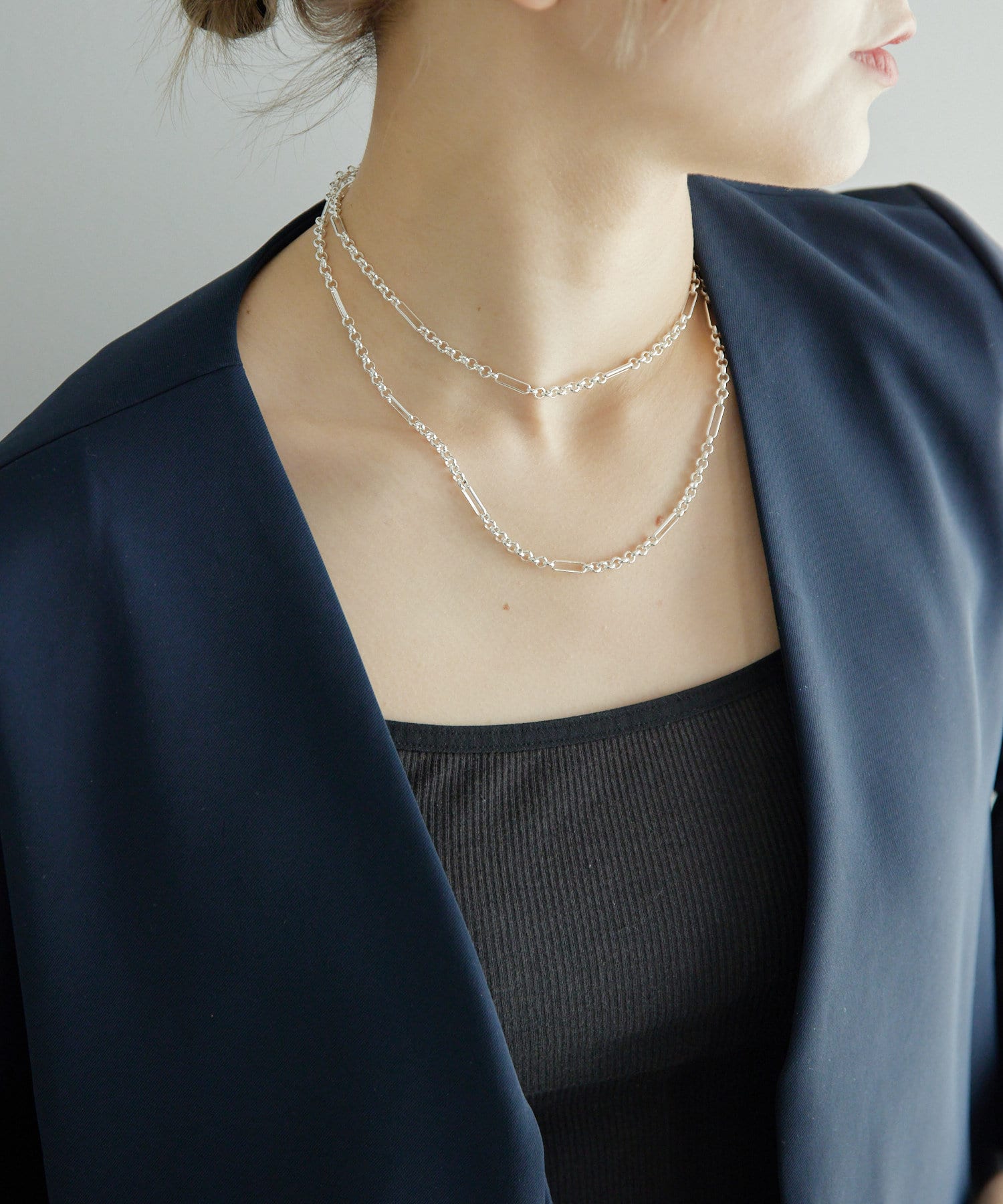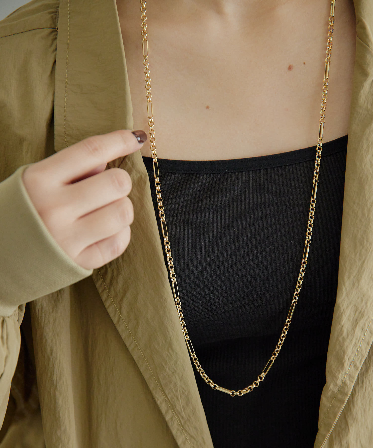 シンプルながら存在感のあるチェーンがポイントのロングネックレス