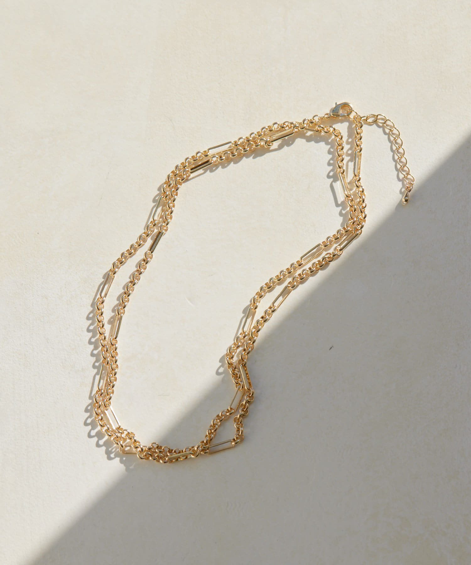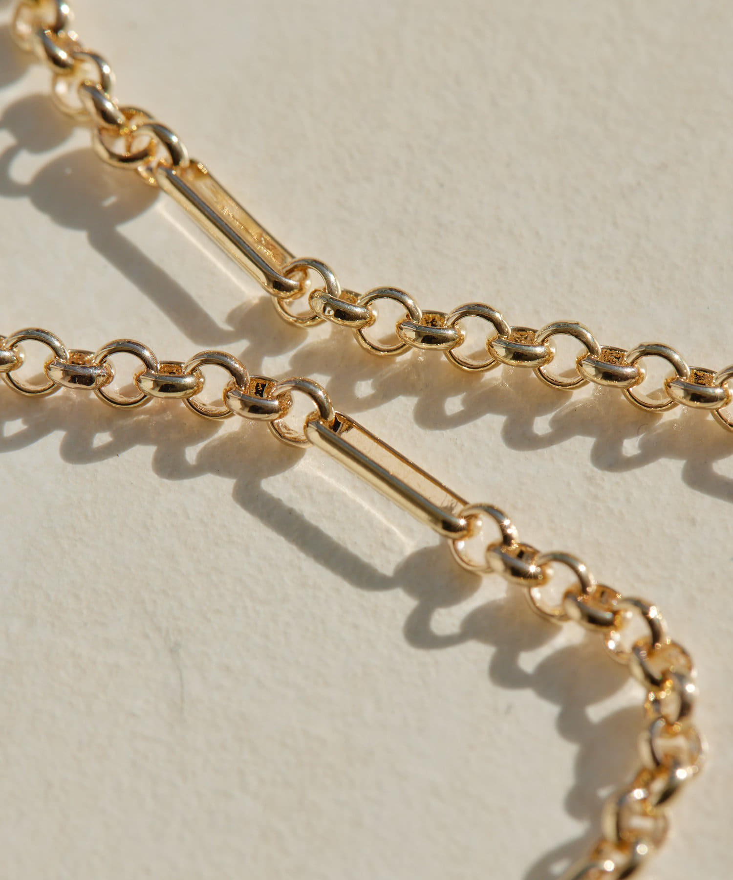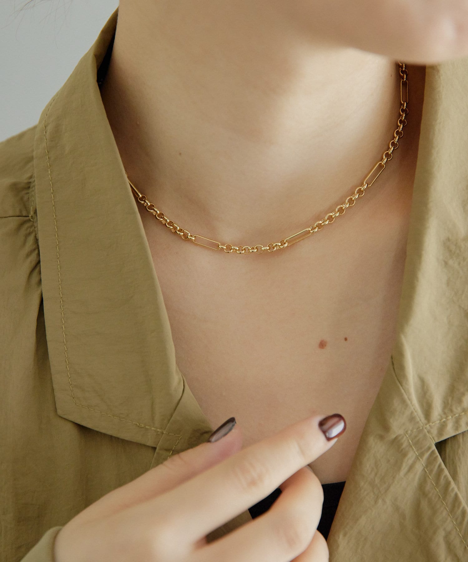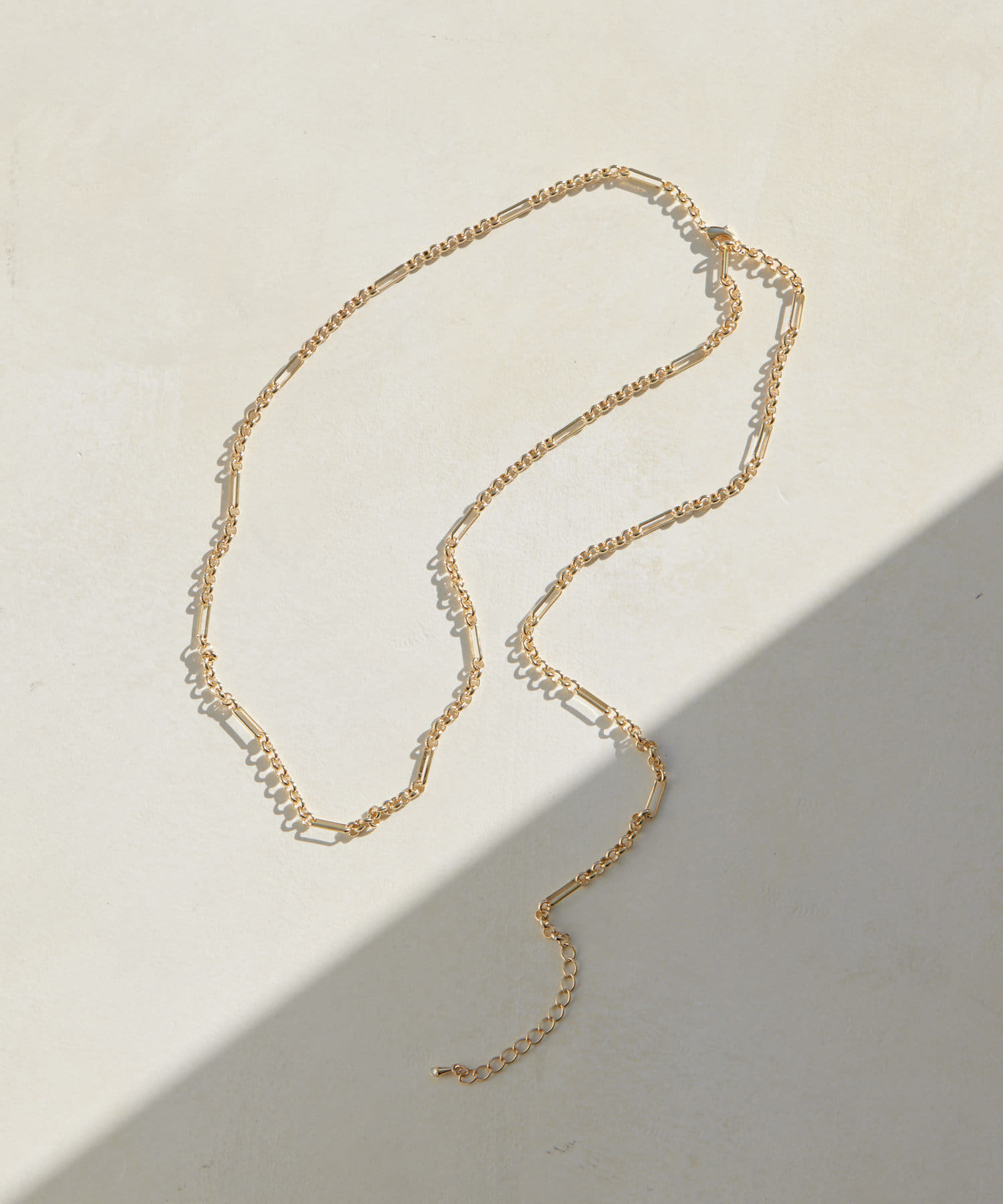 シンプルながら存在感のあるチェーンがポイントのロングネックレス
