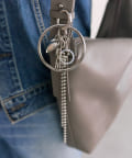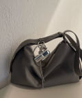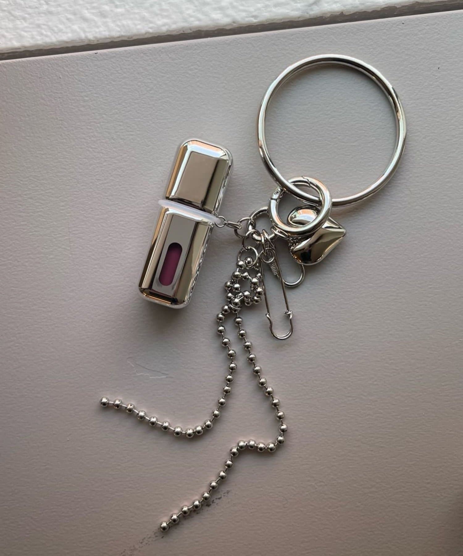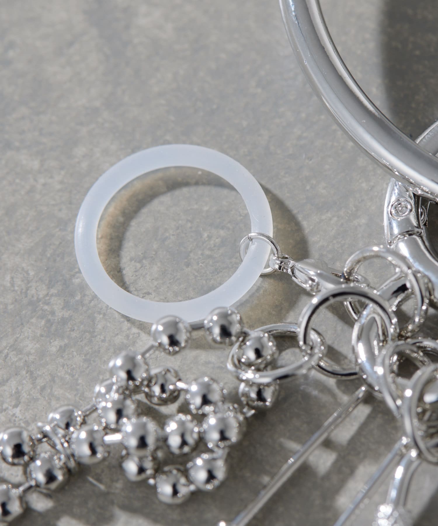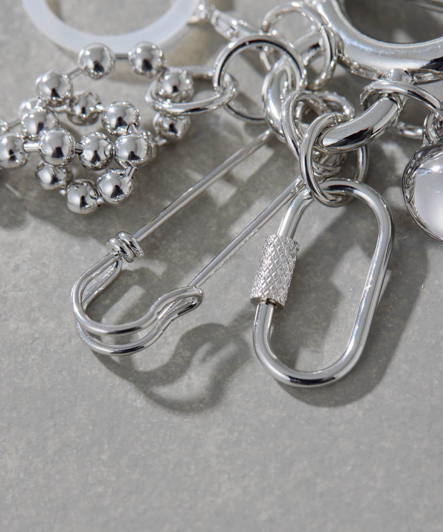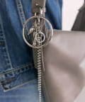 長めなボールチェーンとビッグフープが特徴のバッグチャーム。