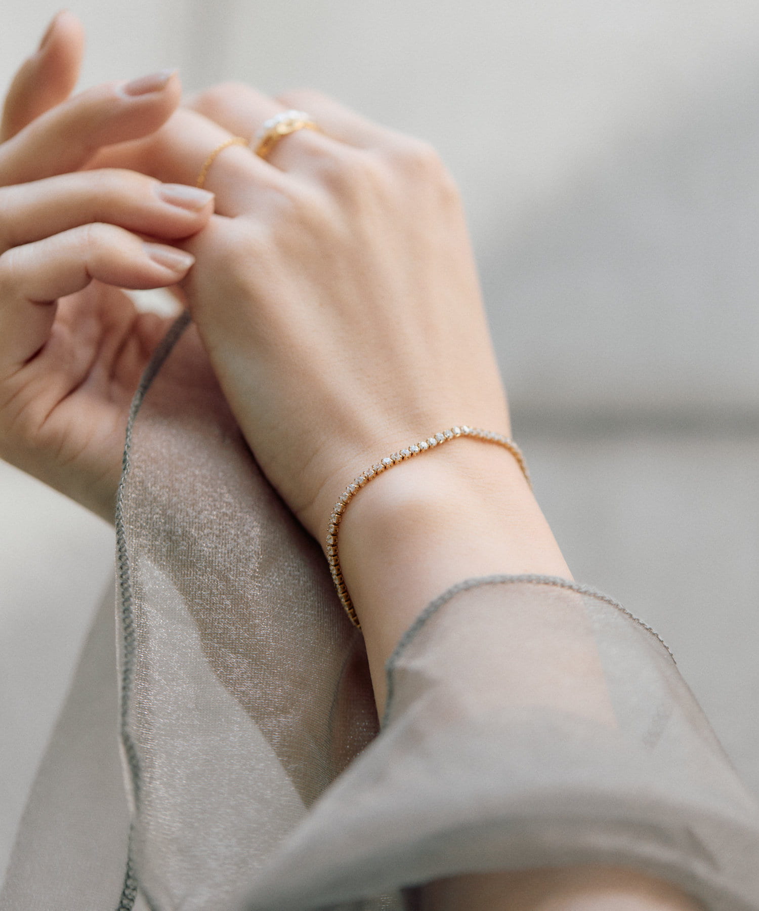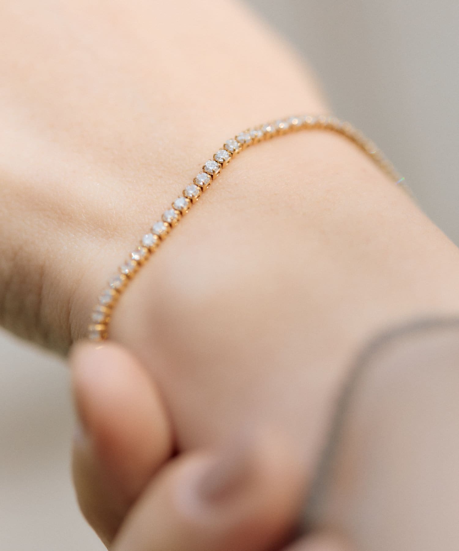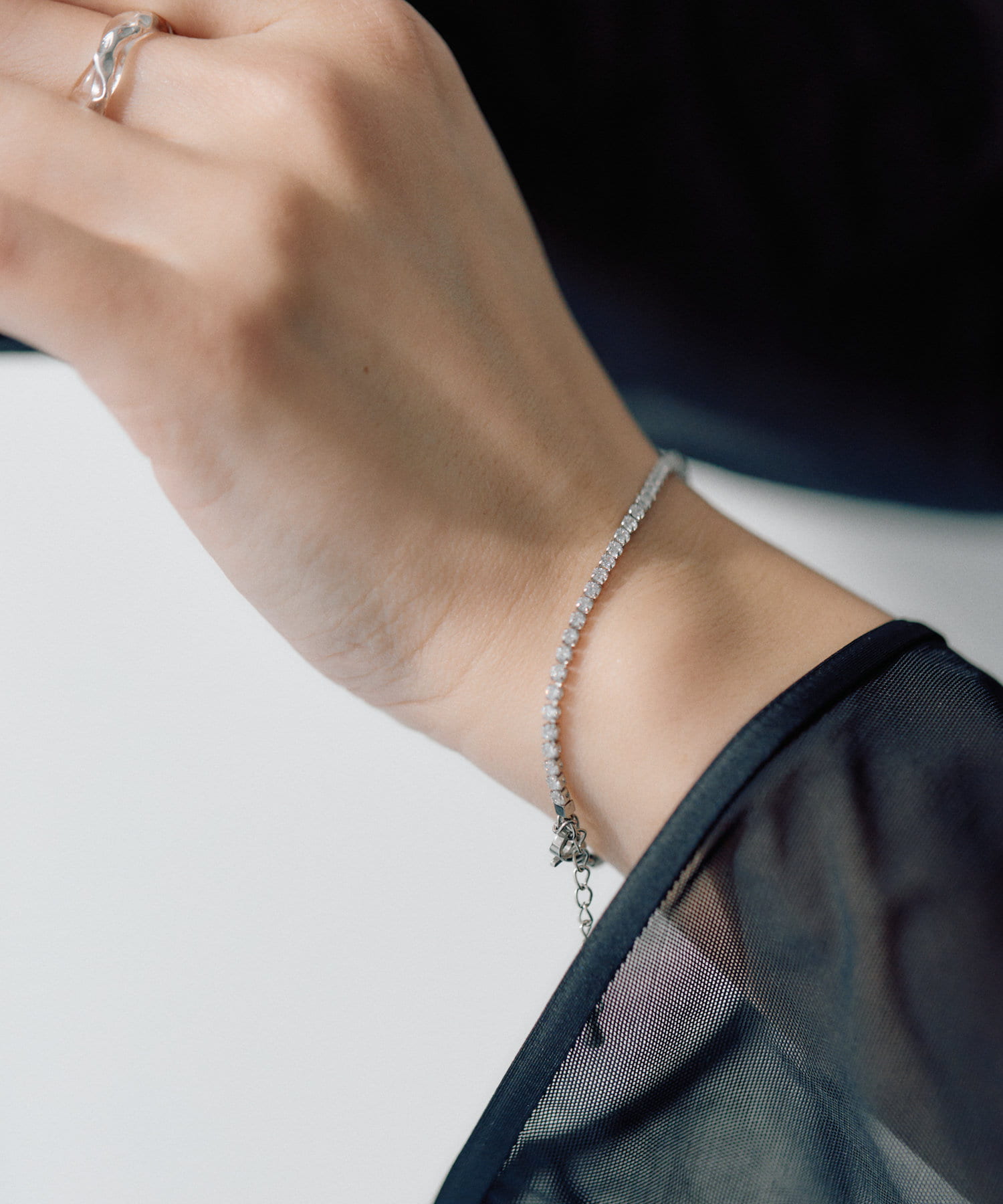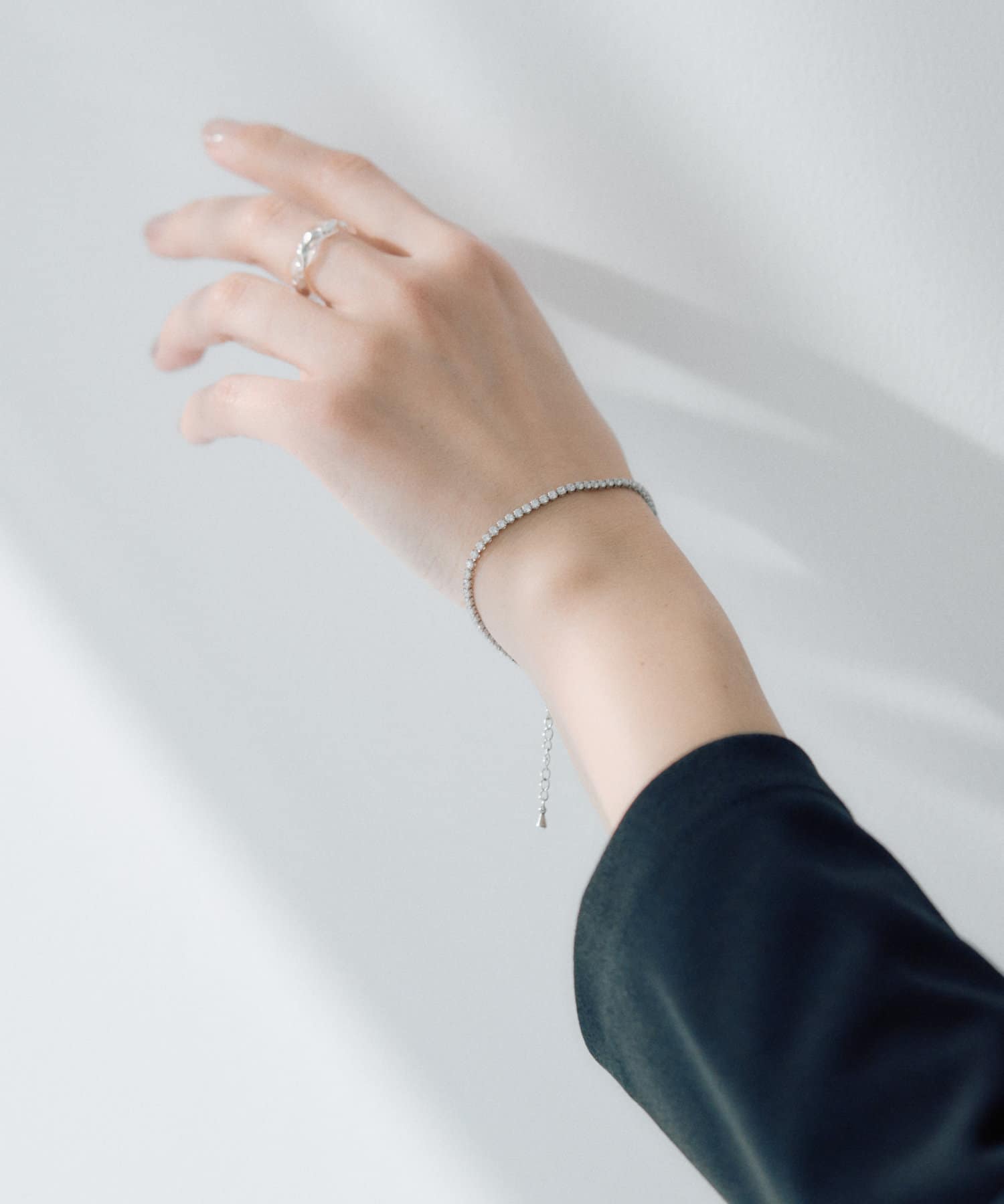 「テニスブレスレット」と呼ばれる、上品で華やかなデザイン。