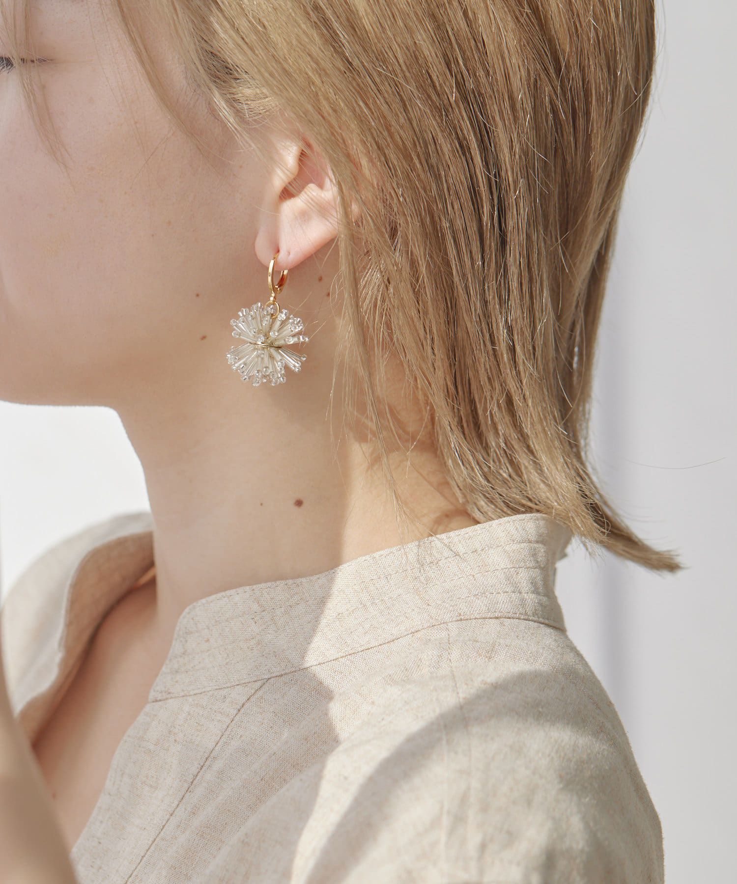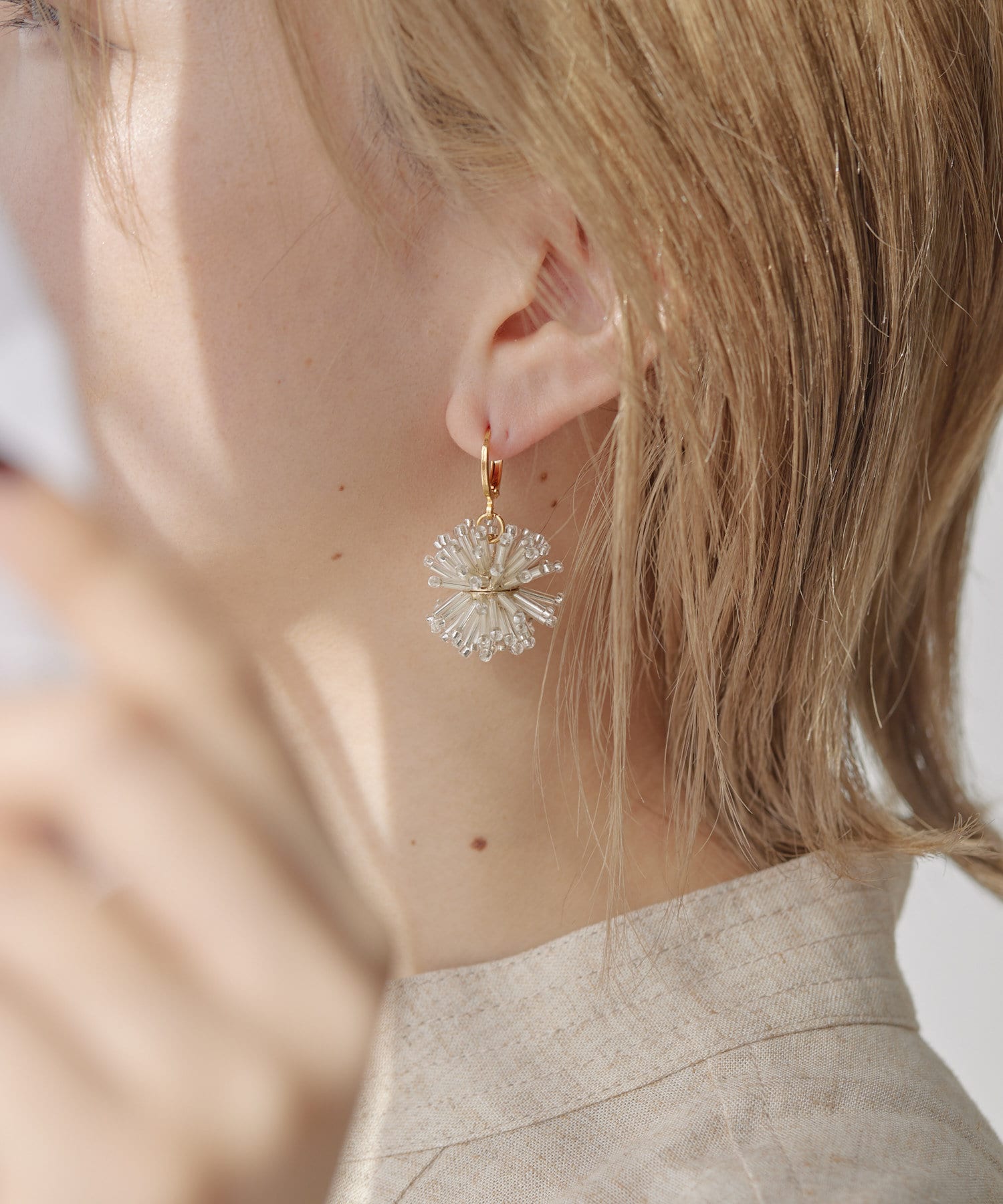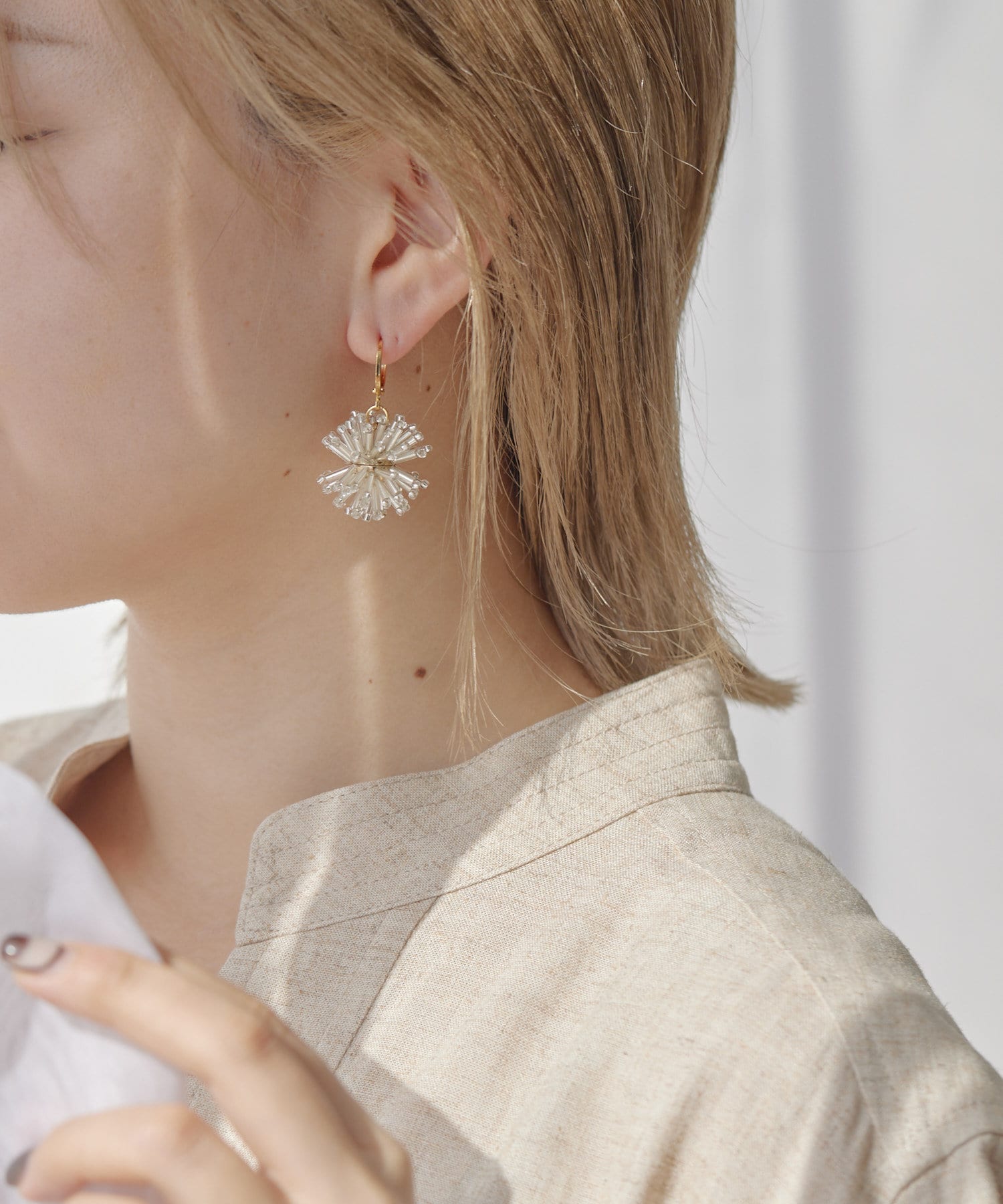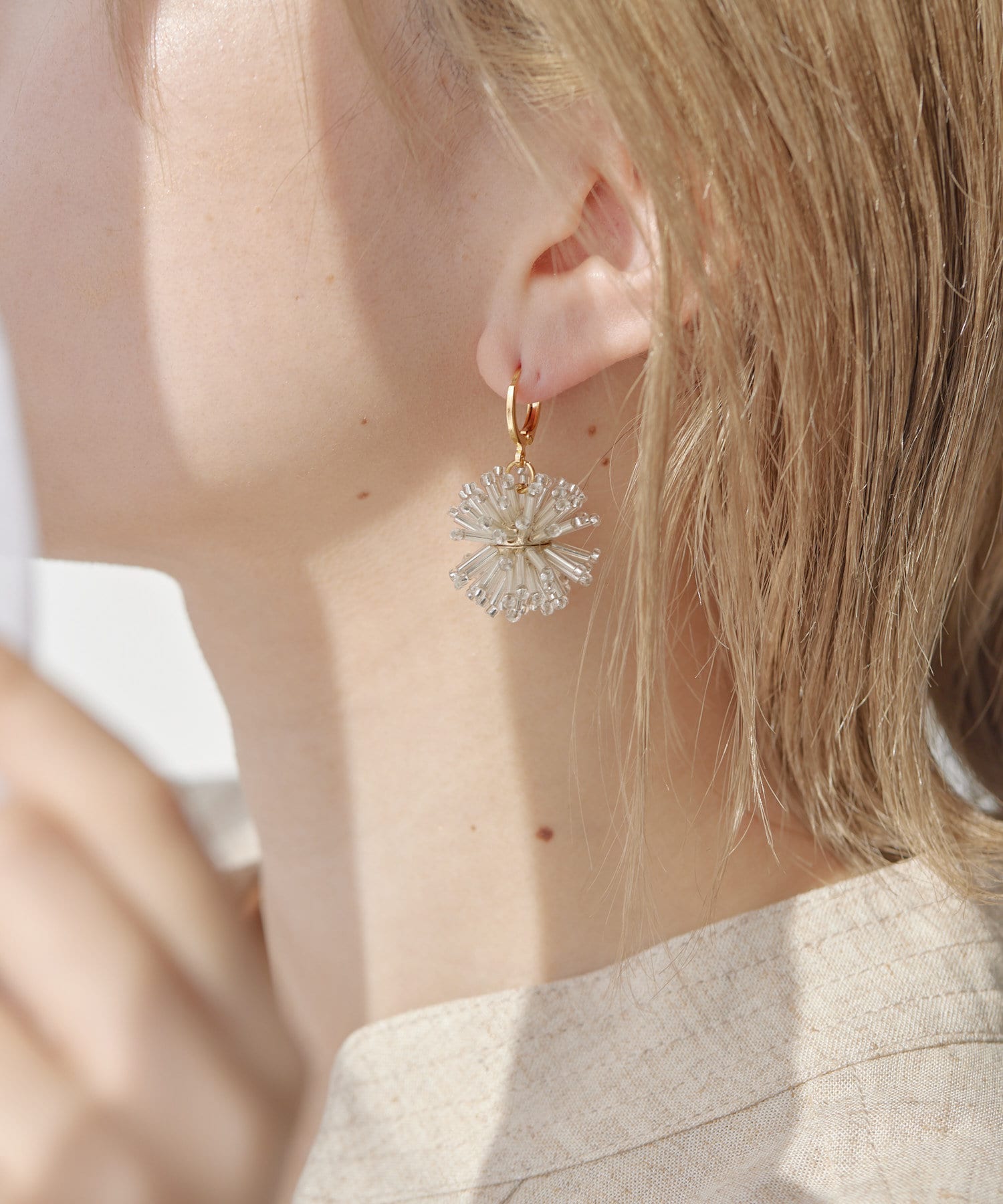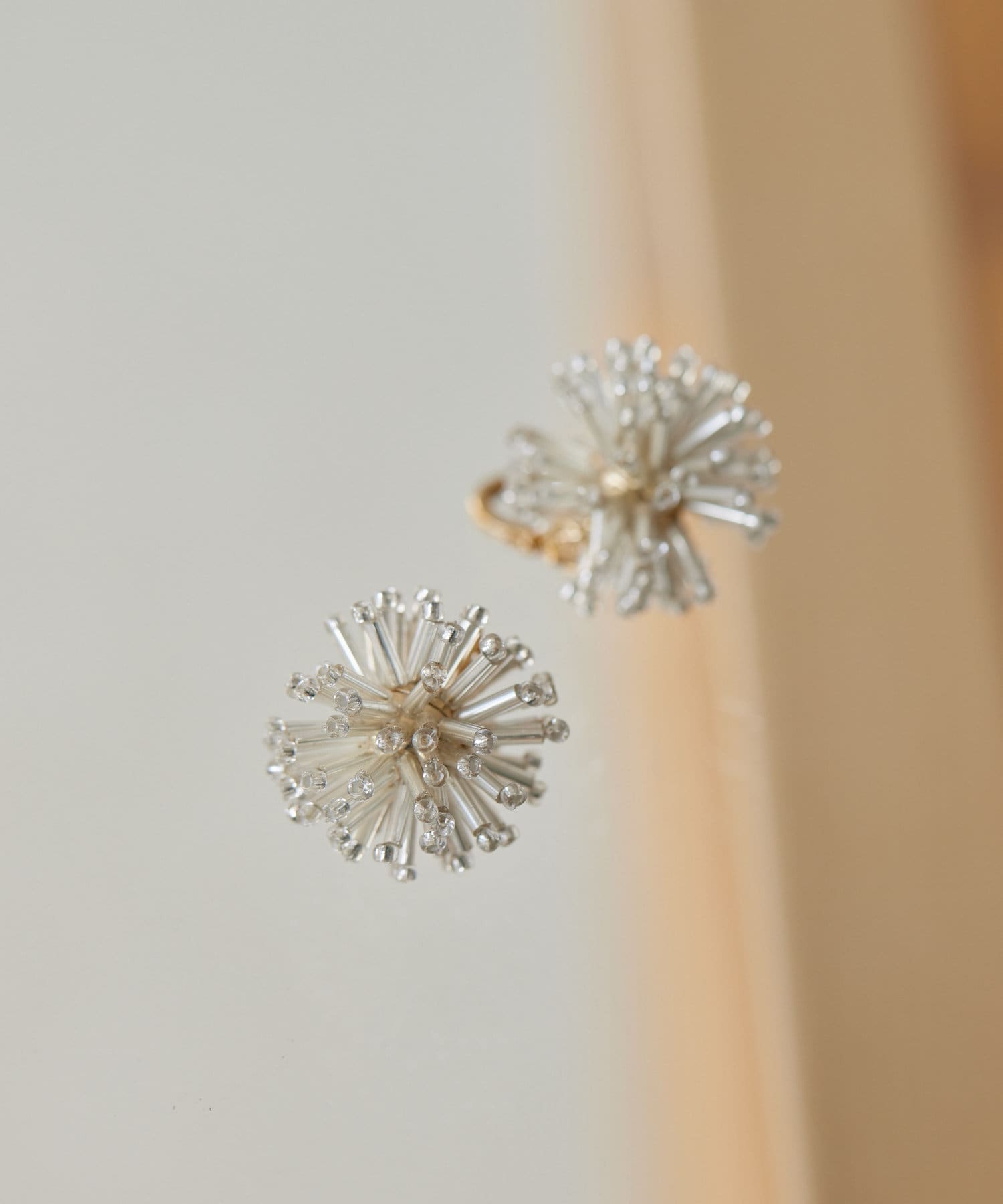 お花のようであり、花火のようであり、華やかな印象のビーズピアス