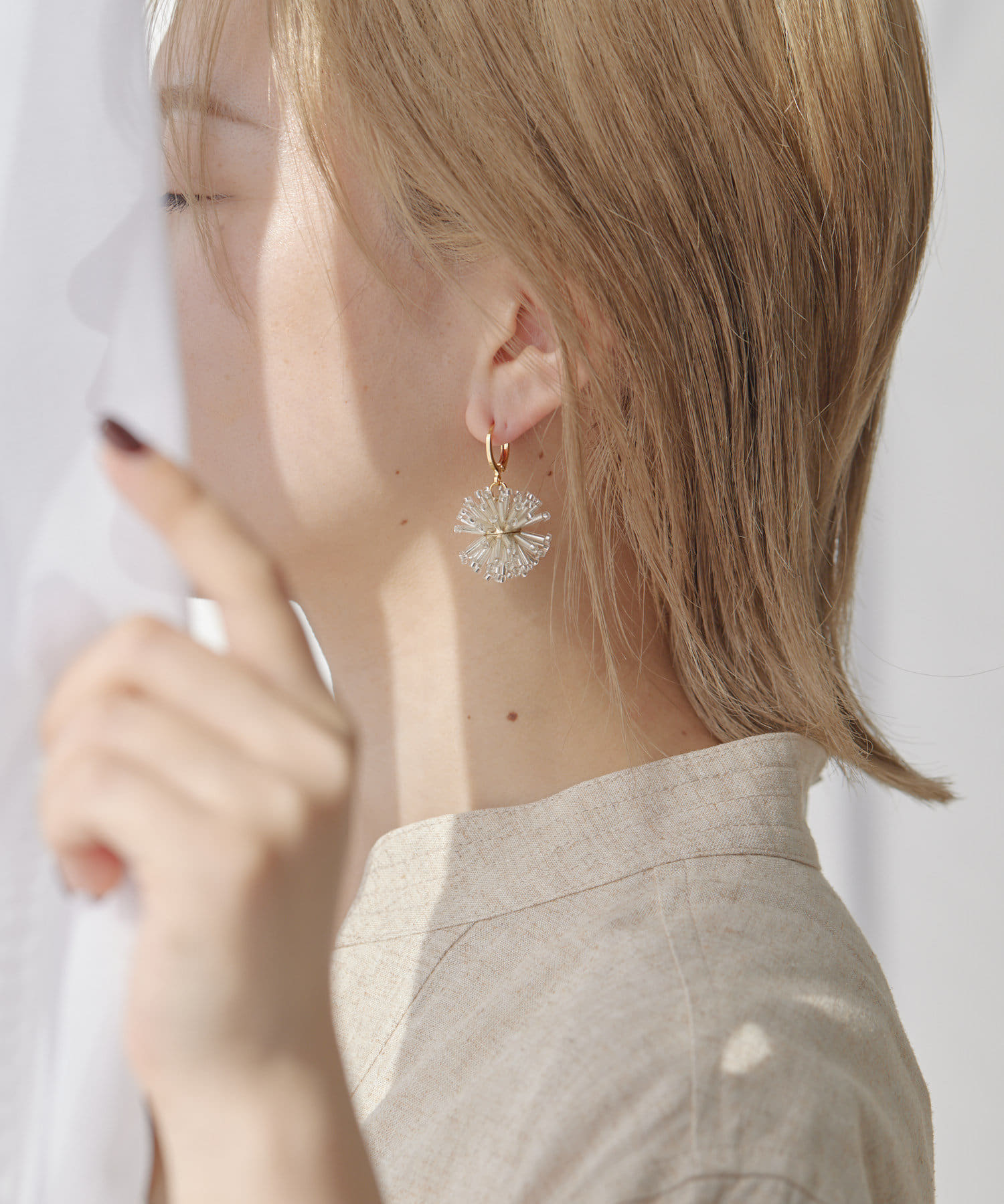 ビーズなので軽く、光を通しキラキラと輝きます。