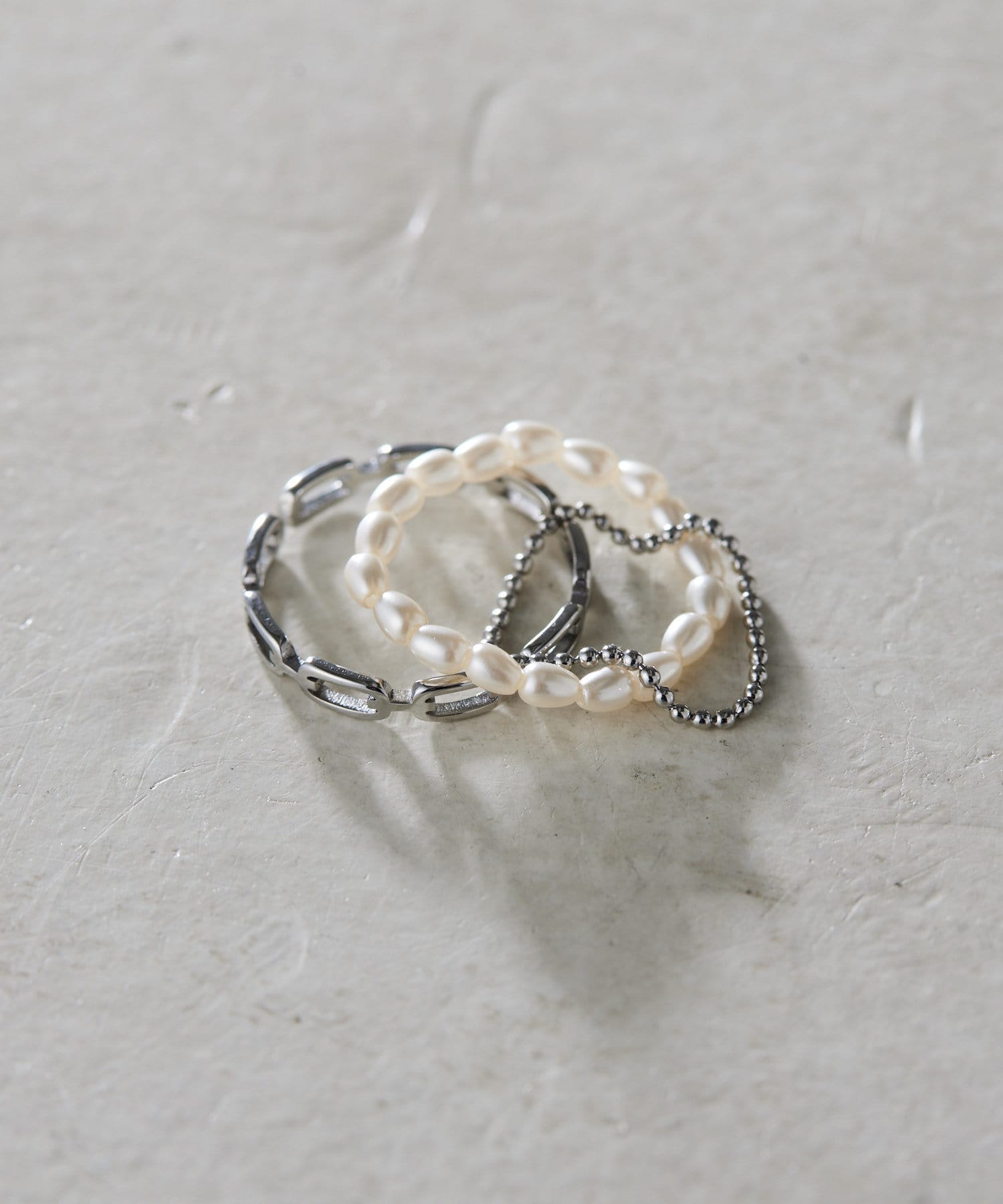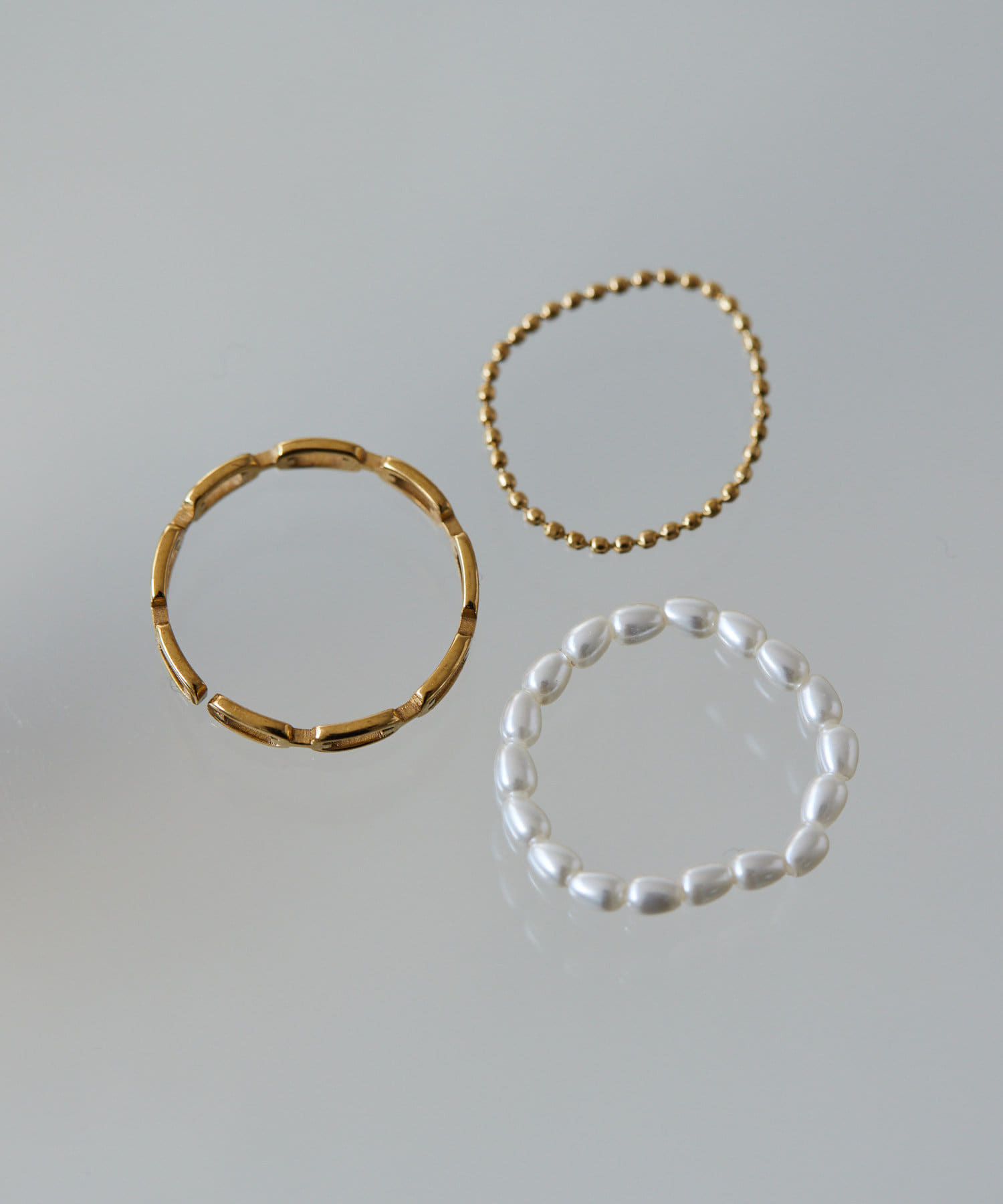 デザインの異なるリングが3点セットに!一つで手元が華やかになるリング