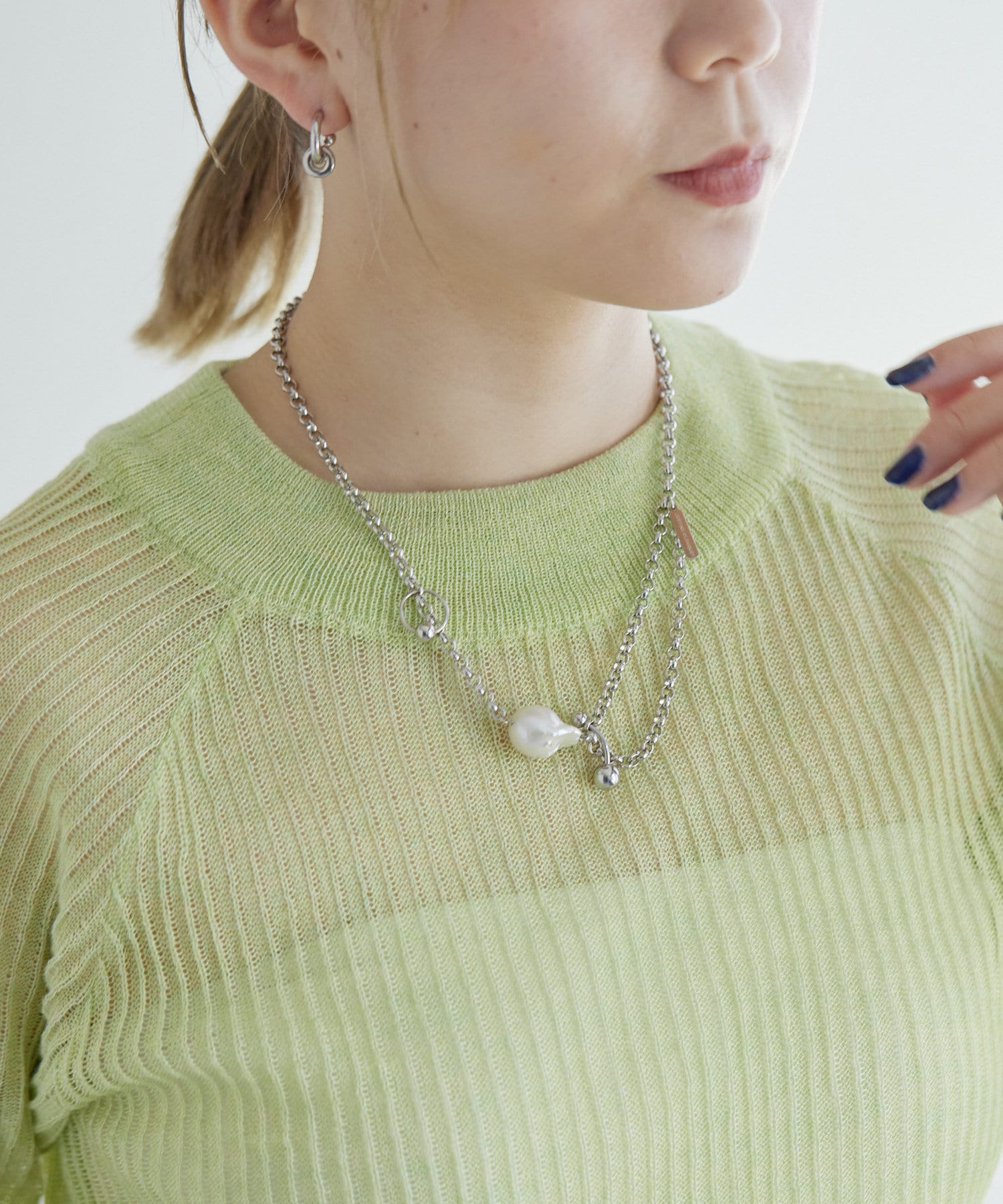 チェーン幅:0.4cm パール:約2cm サークルパーツ:1.5×1.3cm バーパーツ:2.5×0.8cm