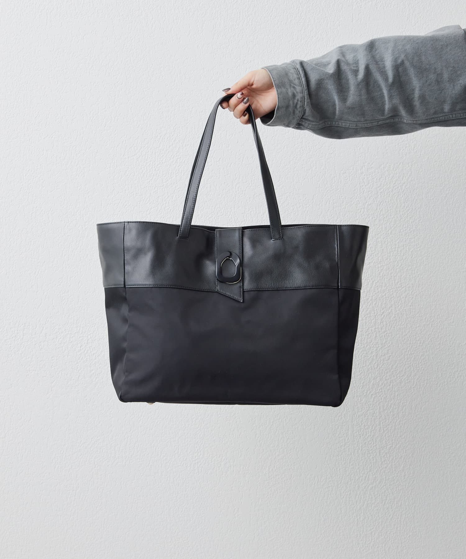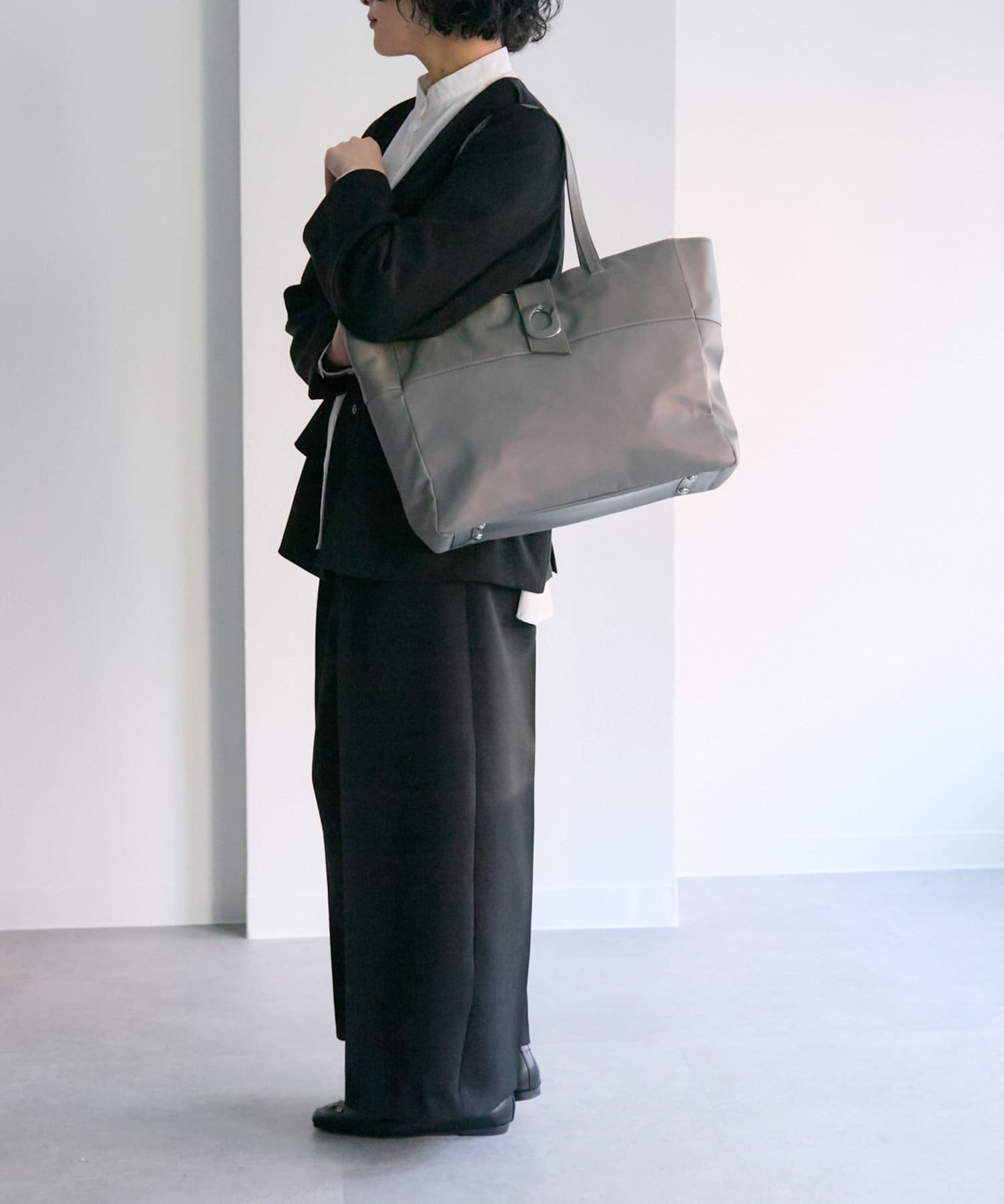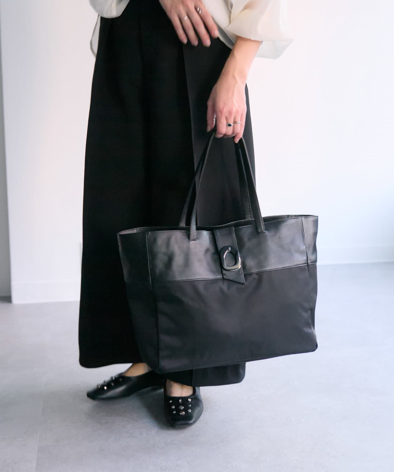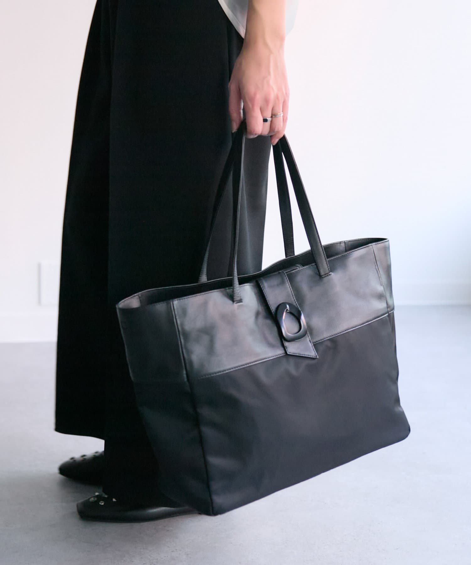 異素材を組み合わせたワントーンカラーのトートバッグ。