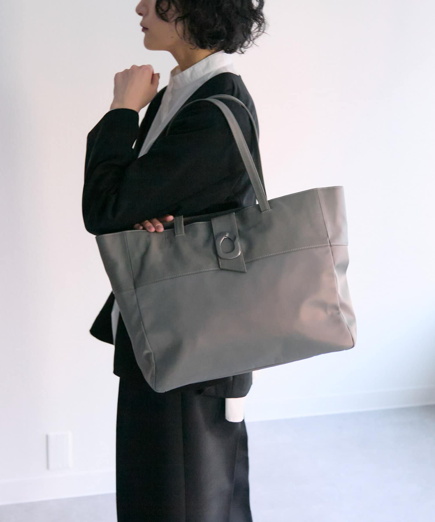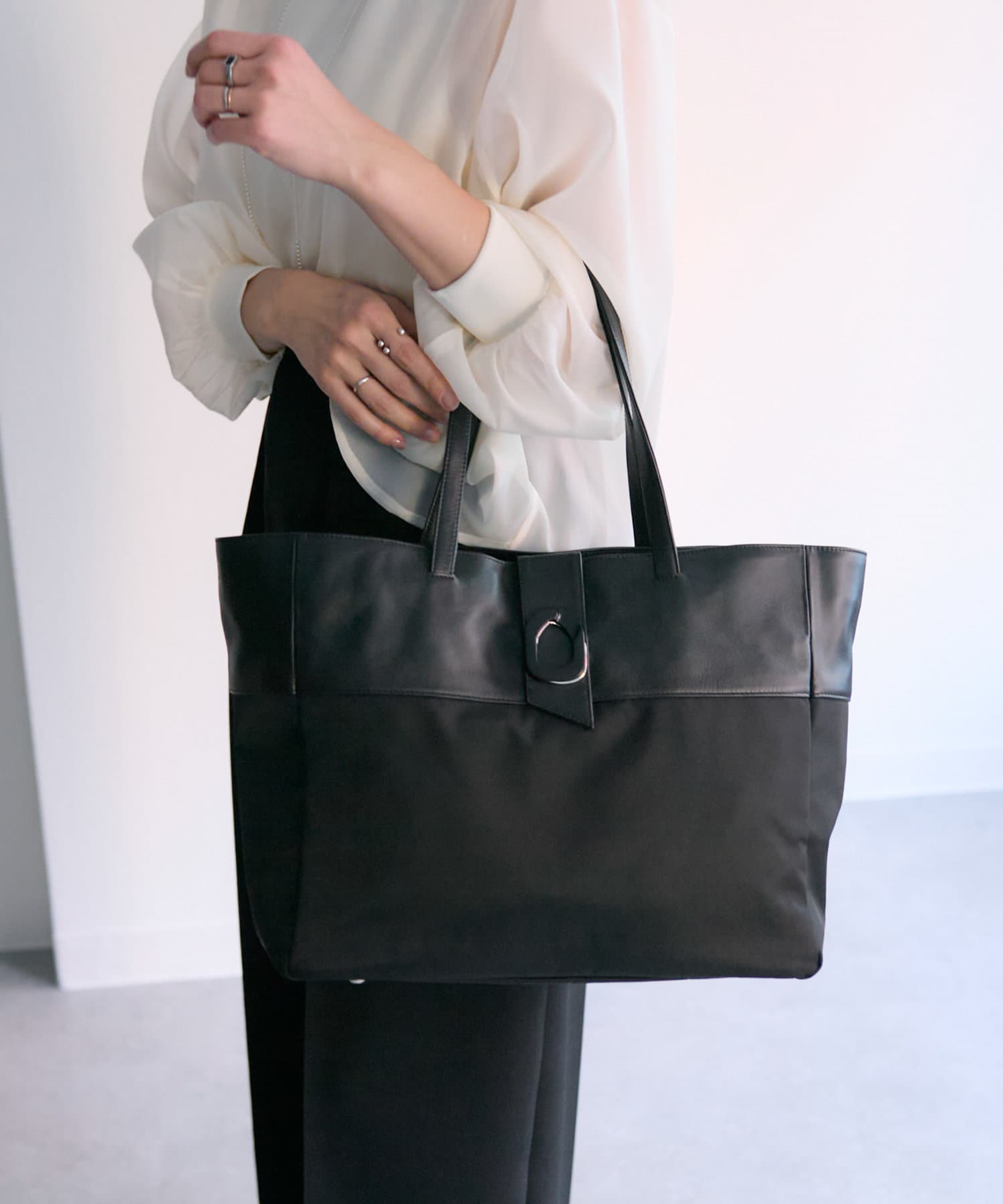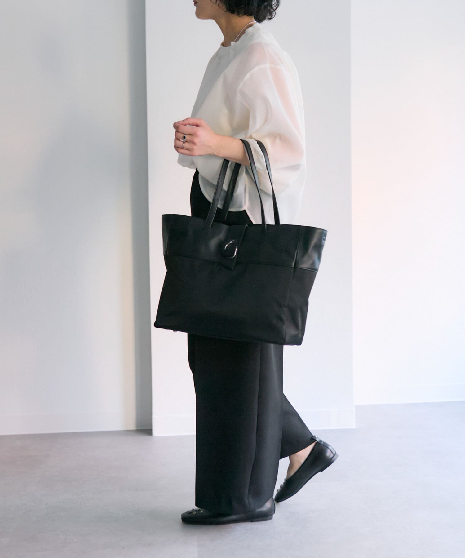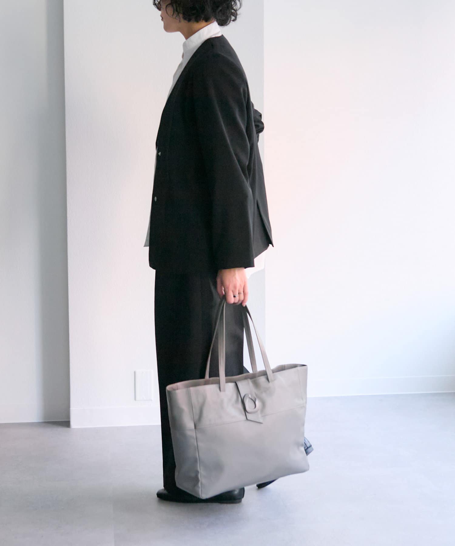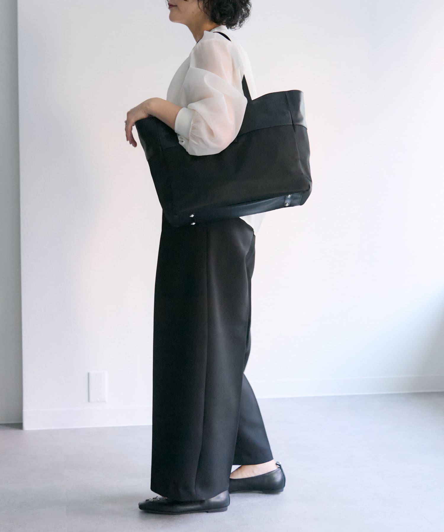 異素材を組み合わせたワントーンカラーのトートバッグ。