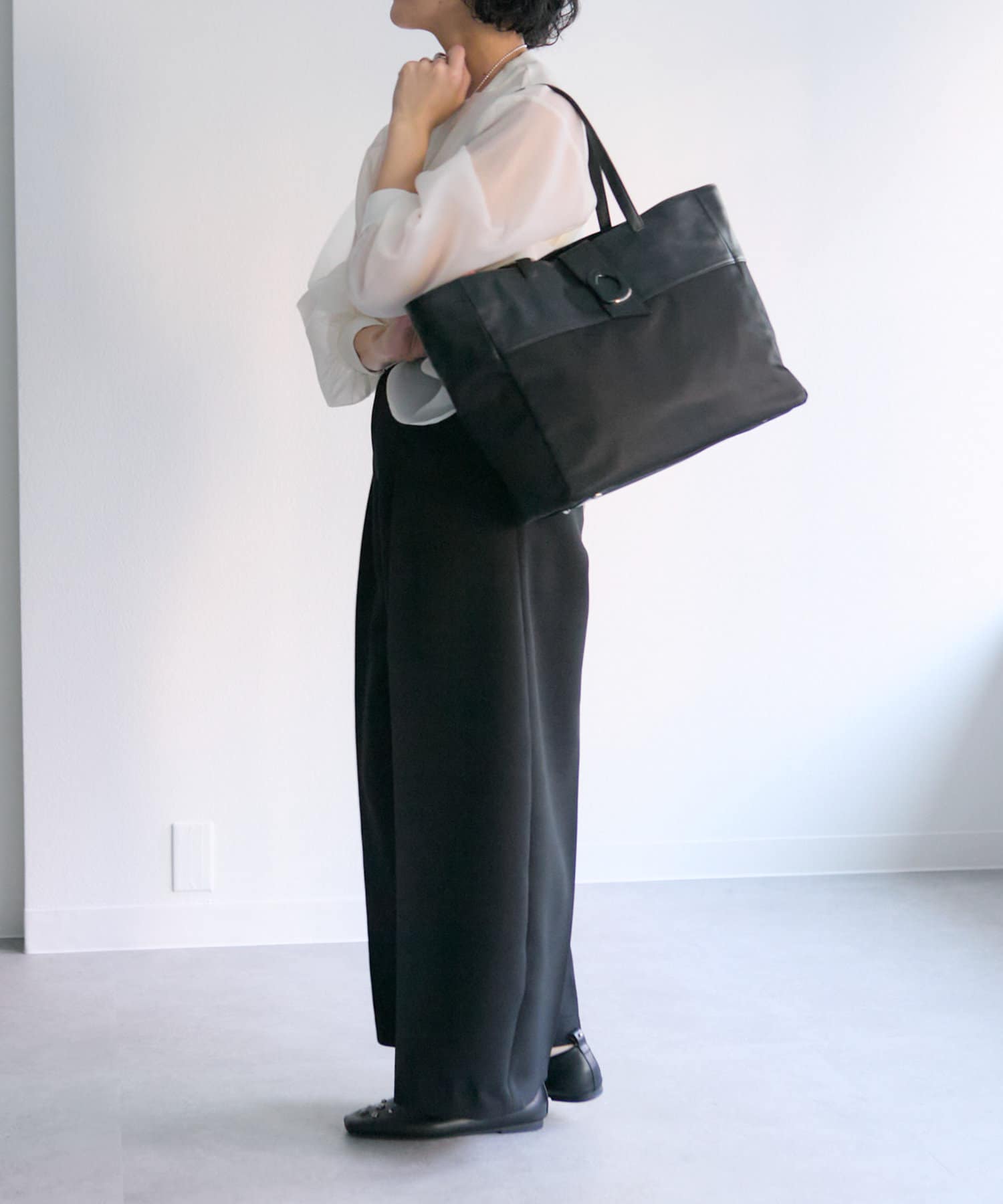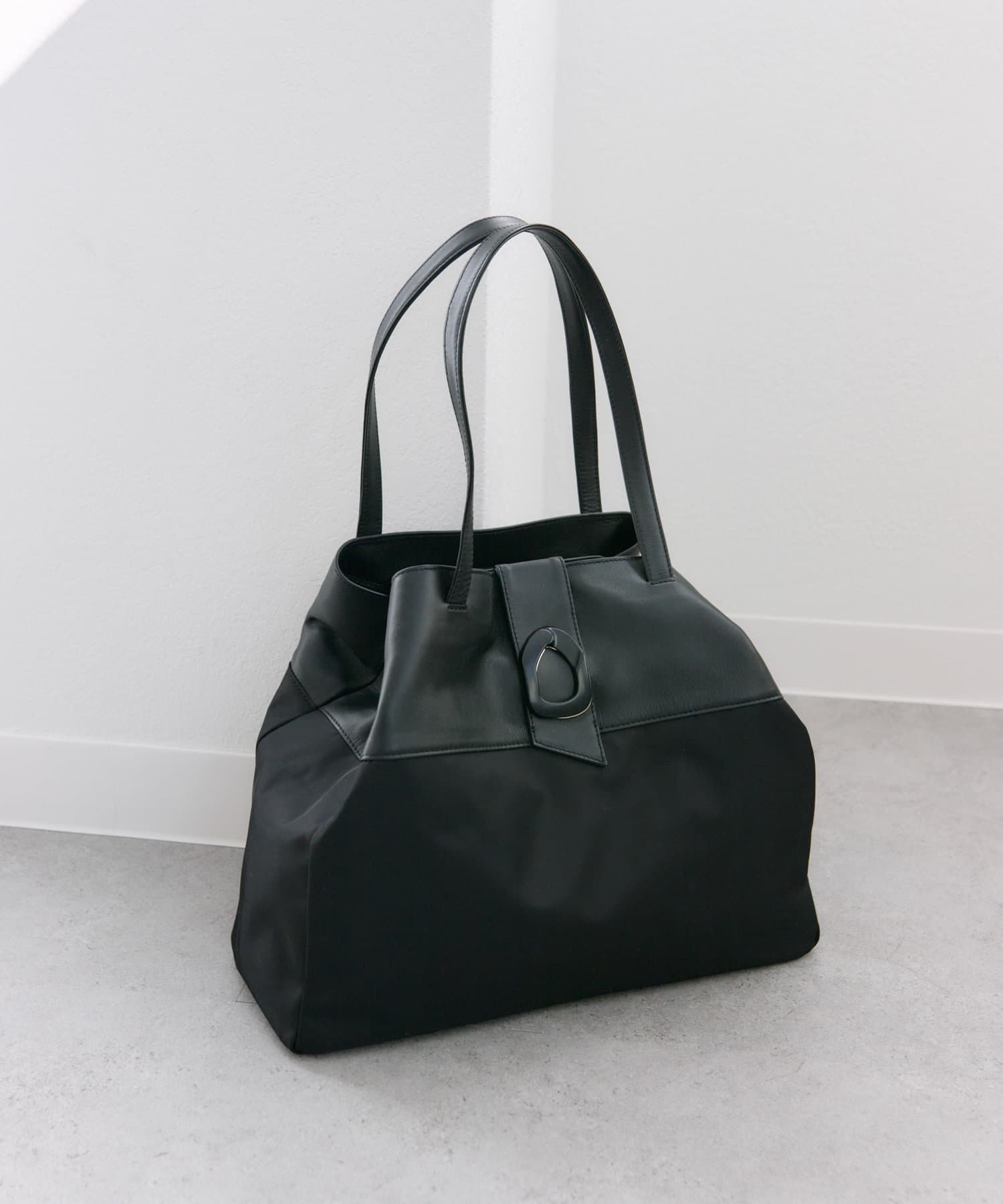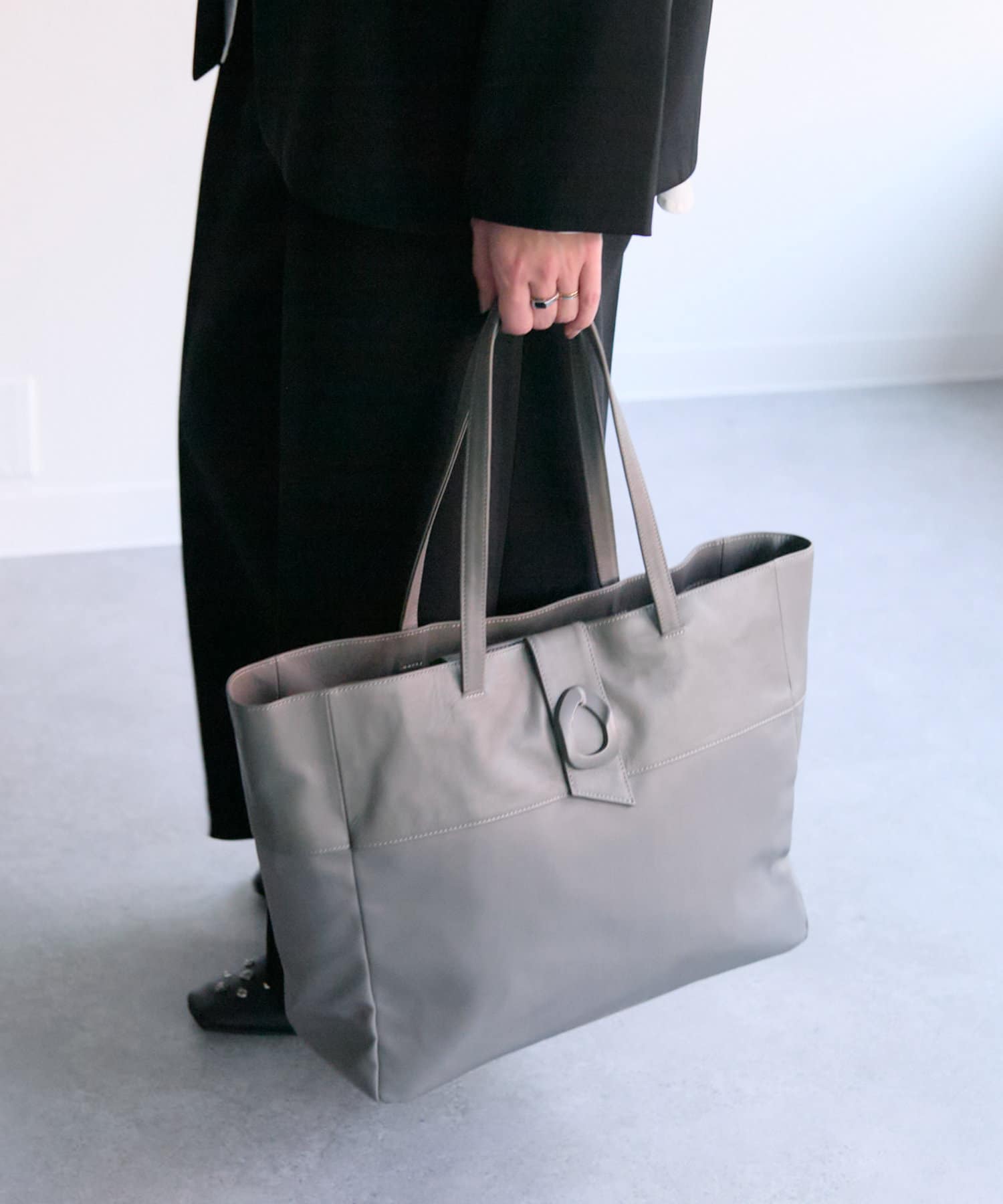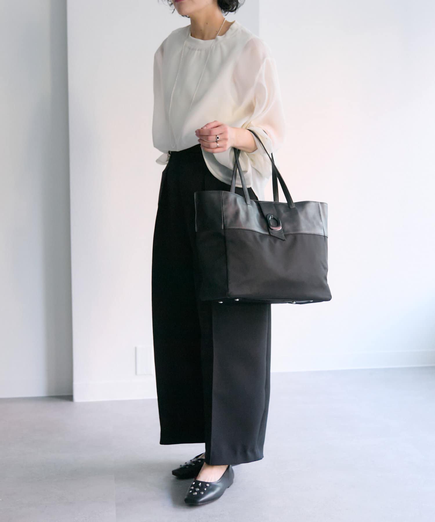 異素材を組み合わせたワントーンカラーのトートバッグ。