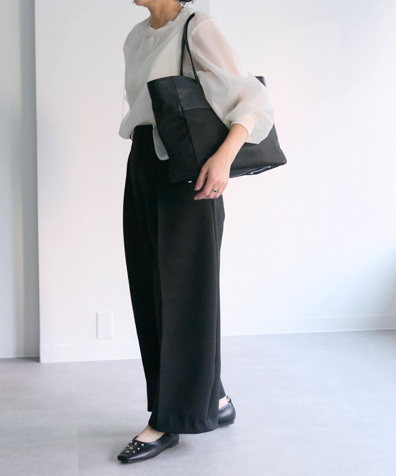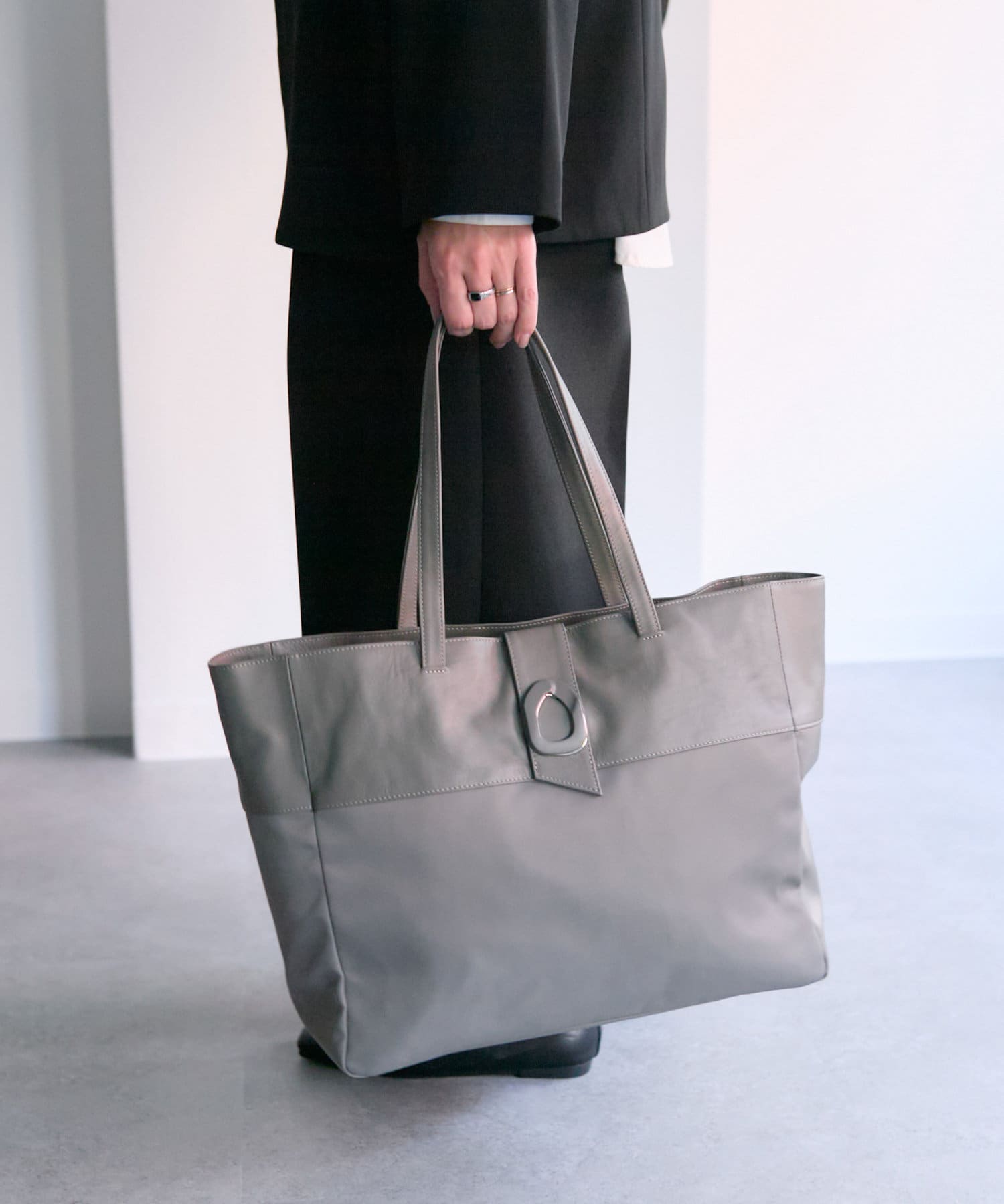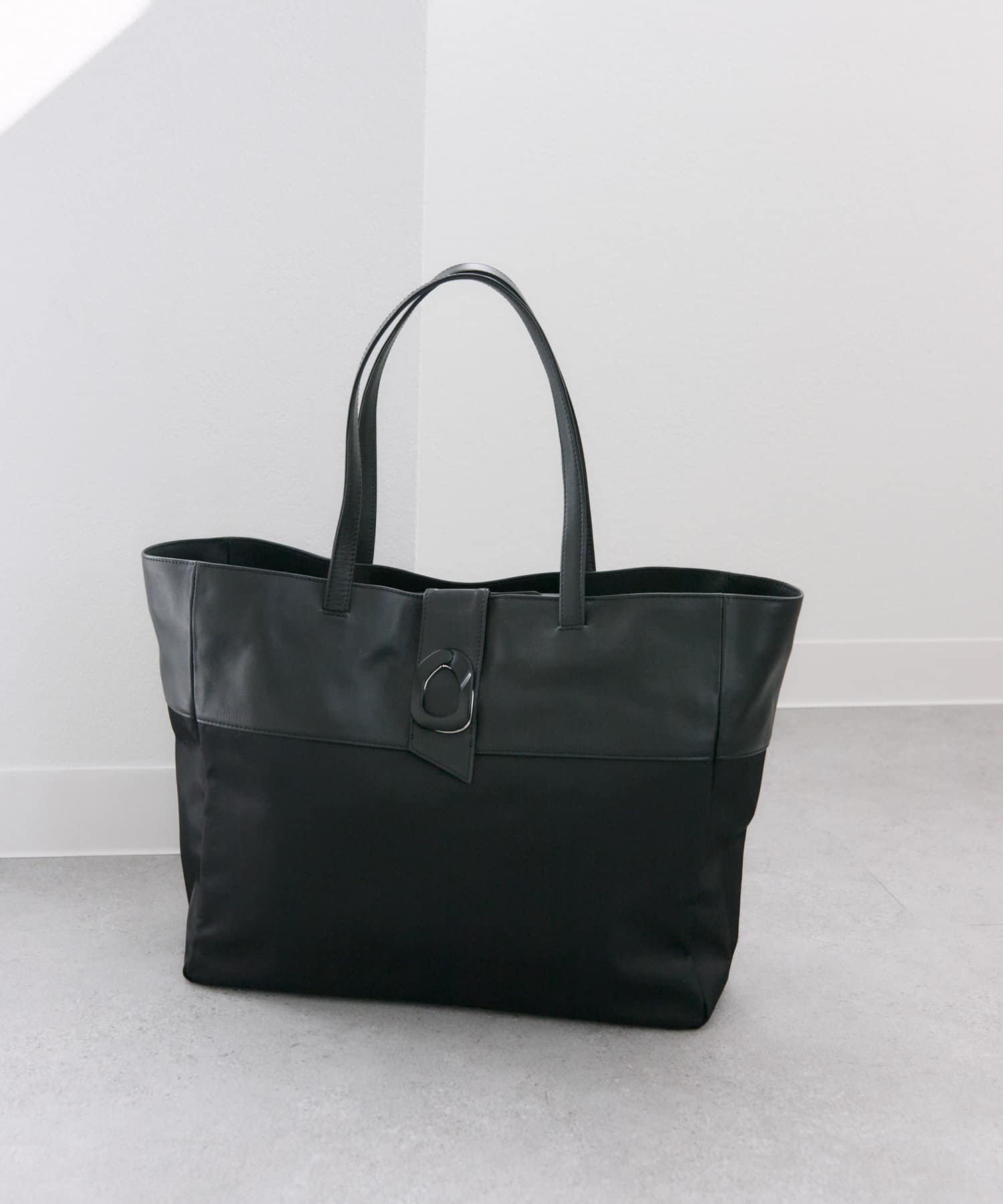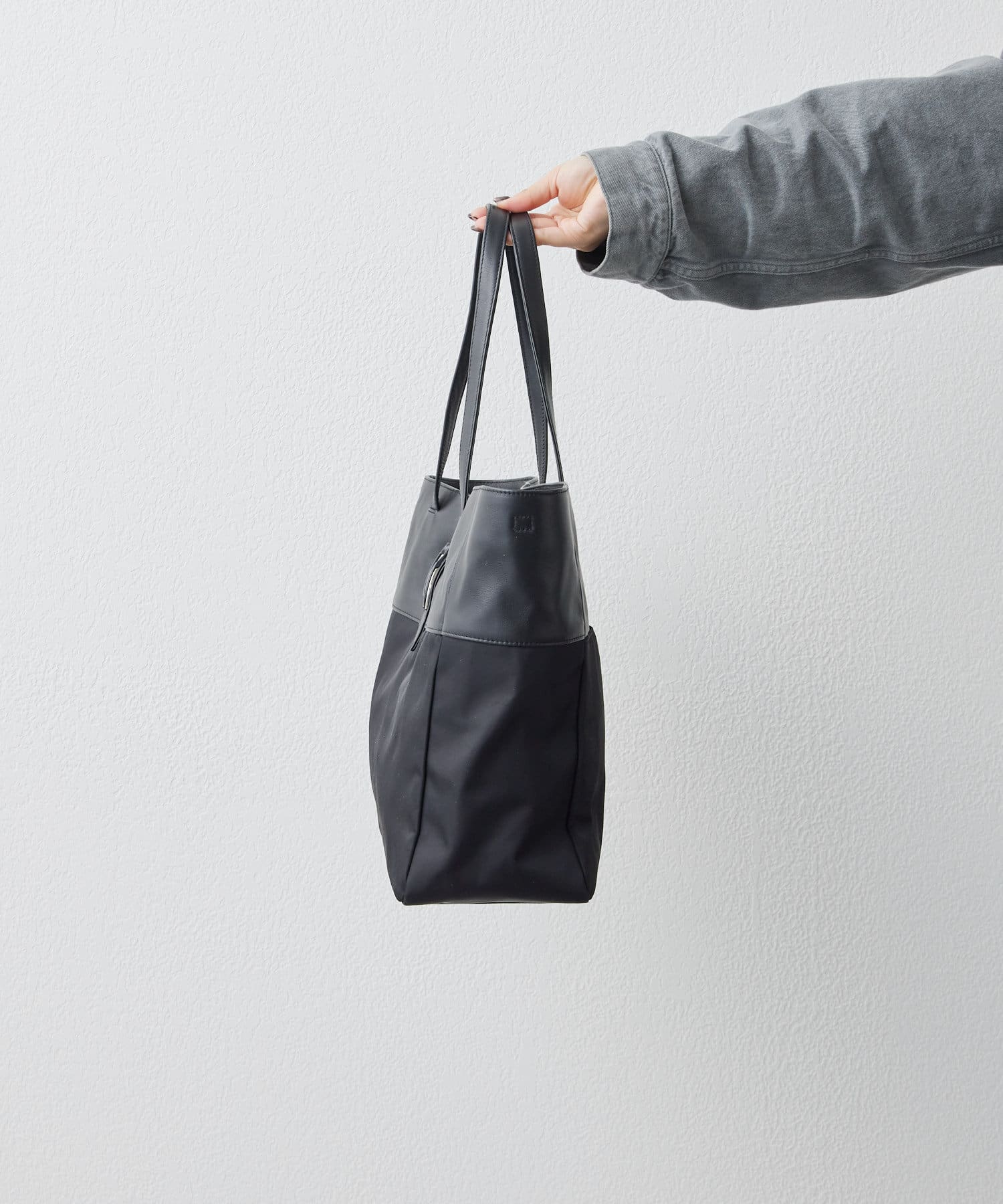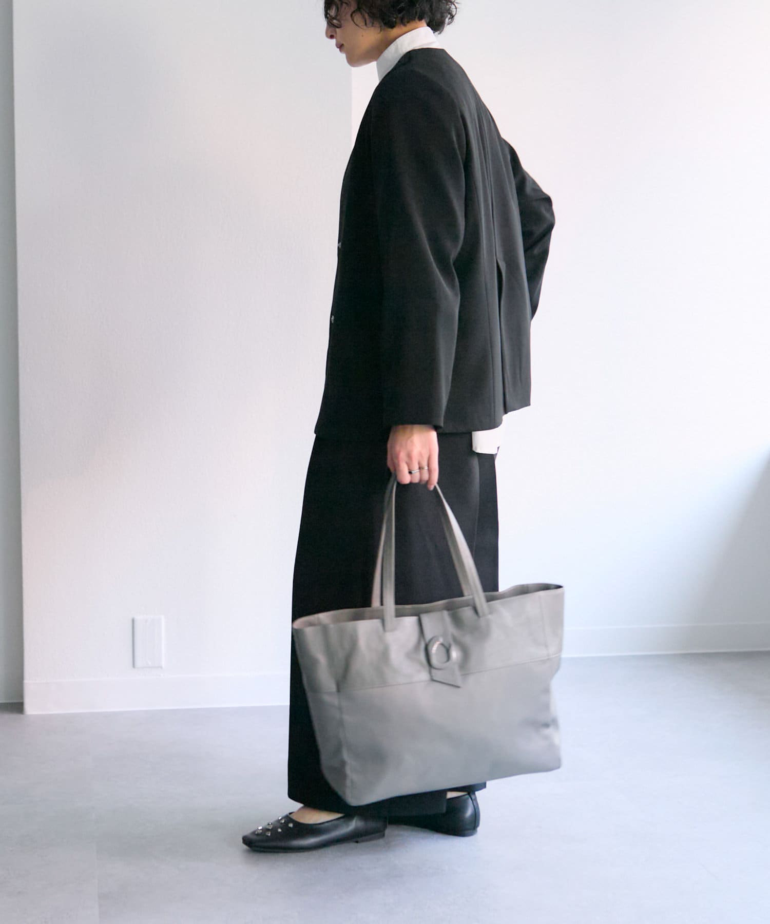 異素材を組み合わせたワントーンカラーのトートバッグ。