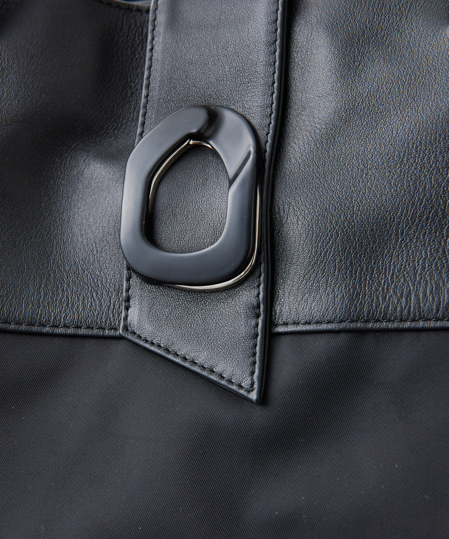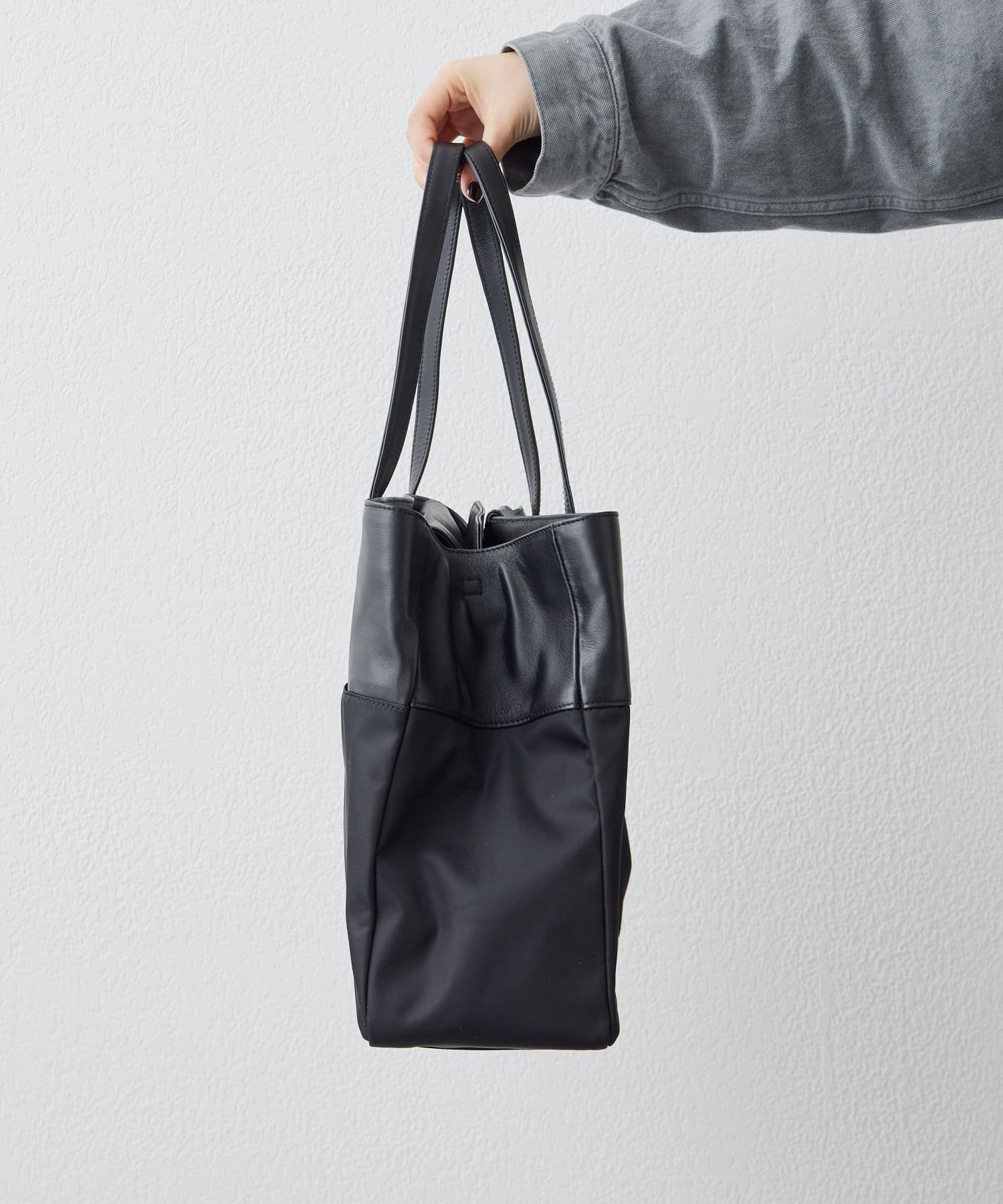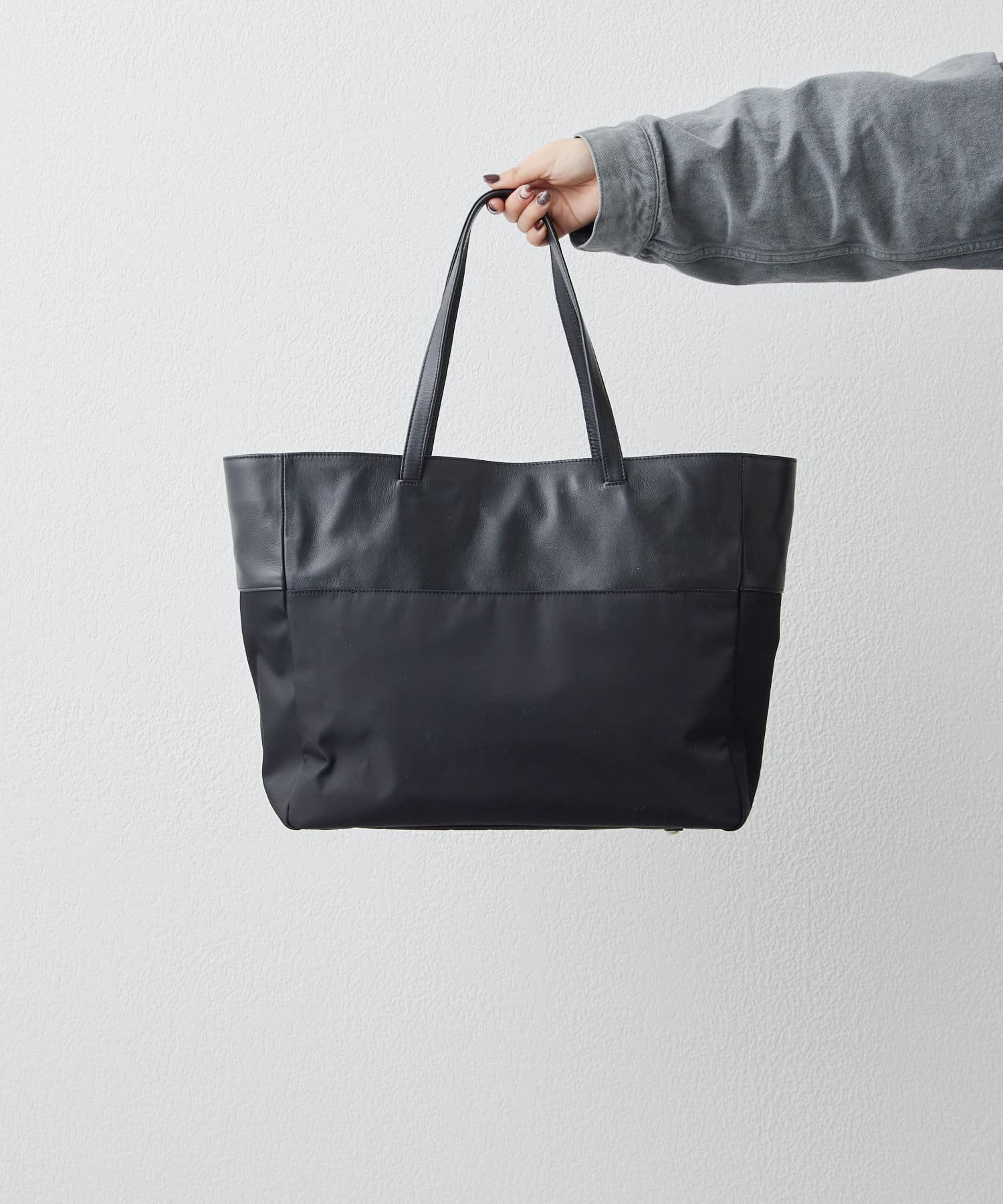 牛革×ポリエステルの異素材MIXでカジュアルすぎず