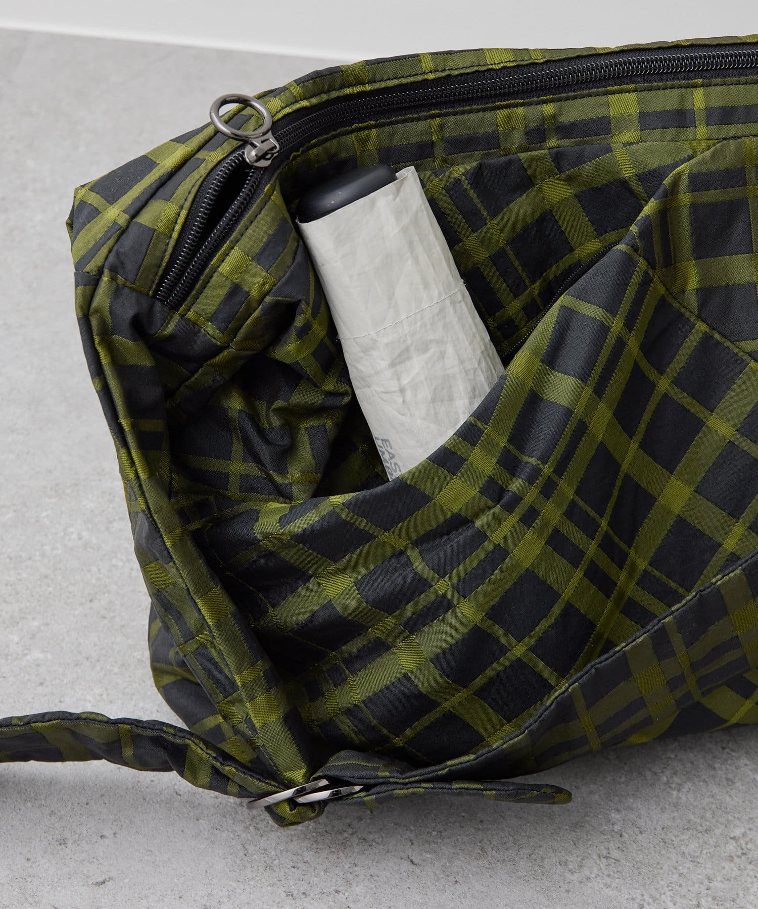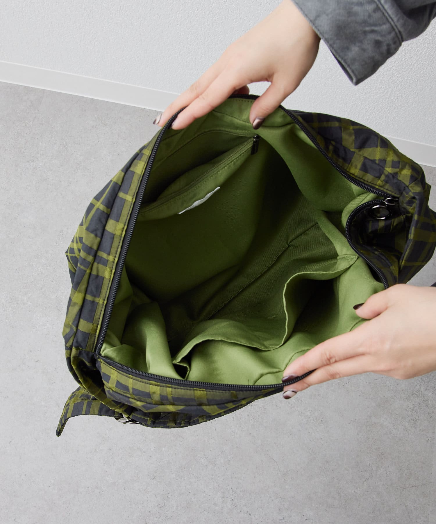 《軽量/A4サイズ対応/旅行におすすめ》切り替えチェックショルダーバッグ