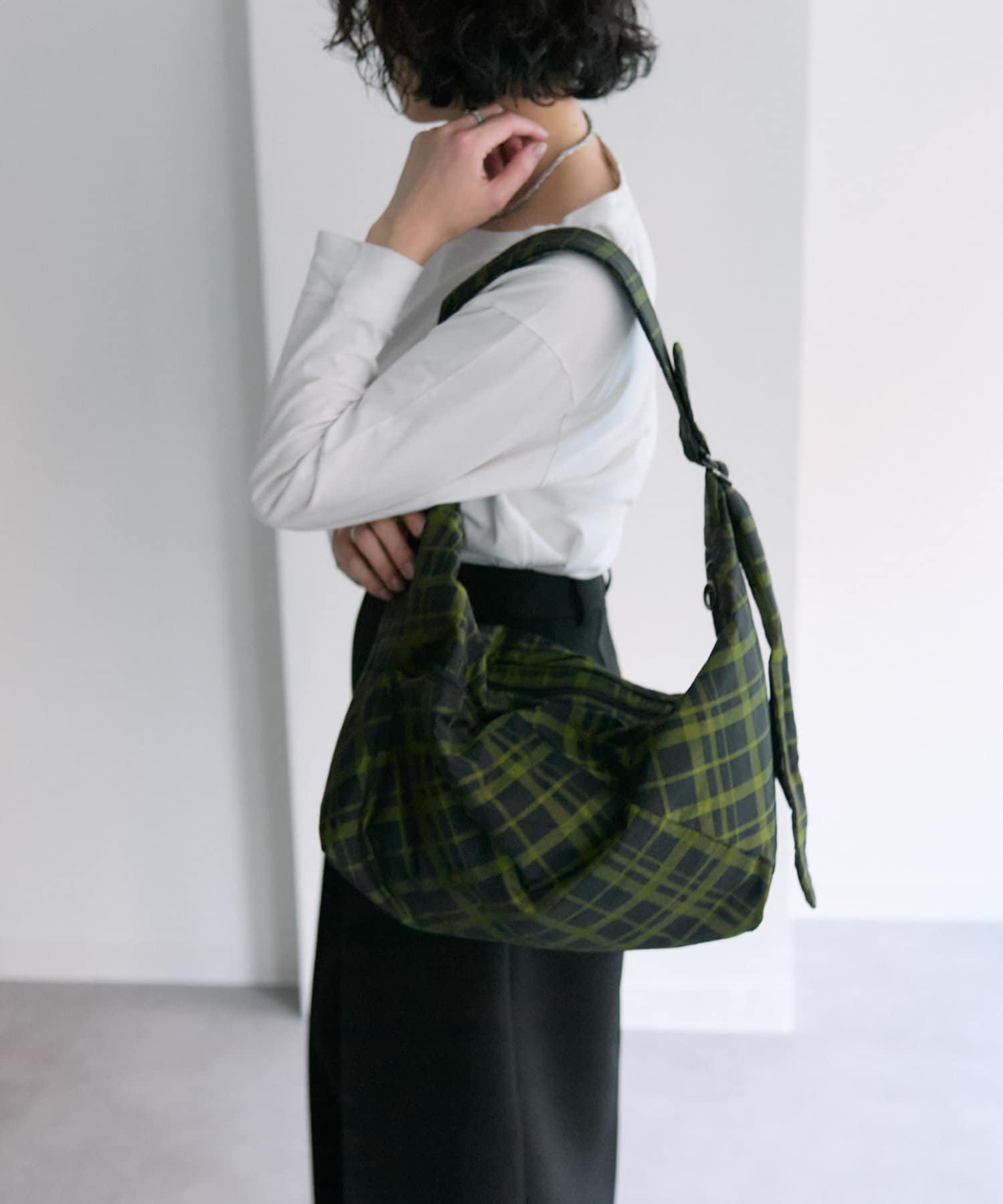 ざっくり大柄チェックがかわいいショルダーバッグ。