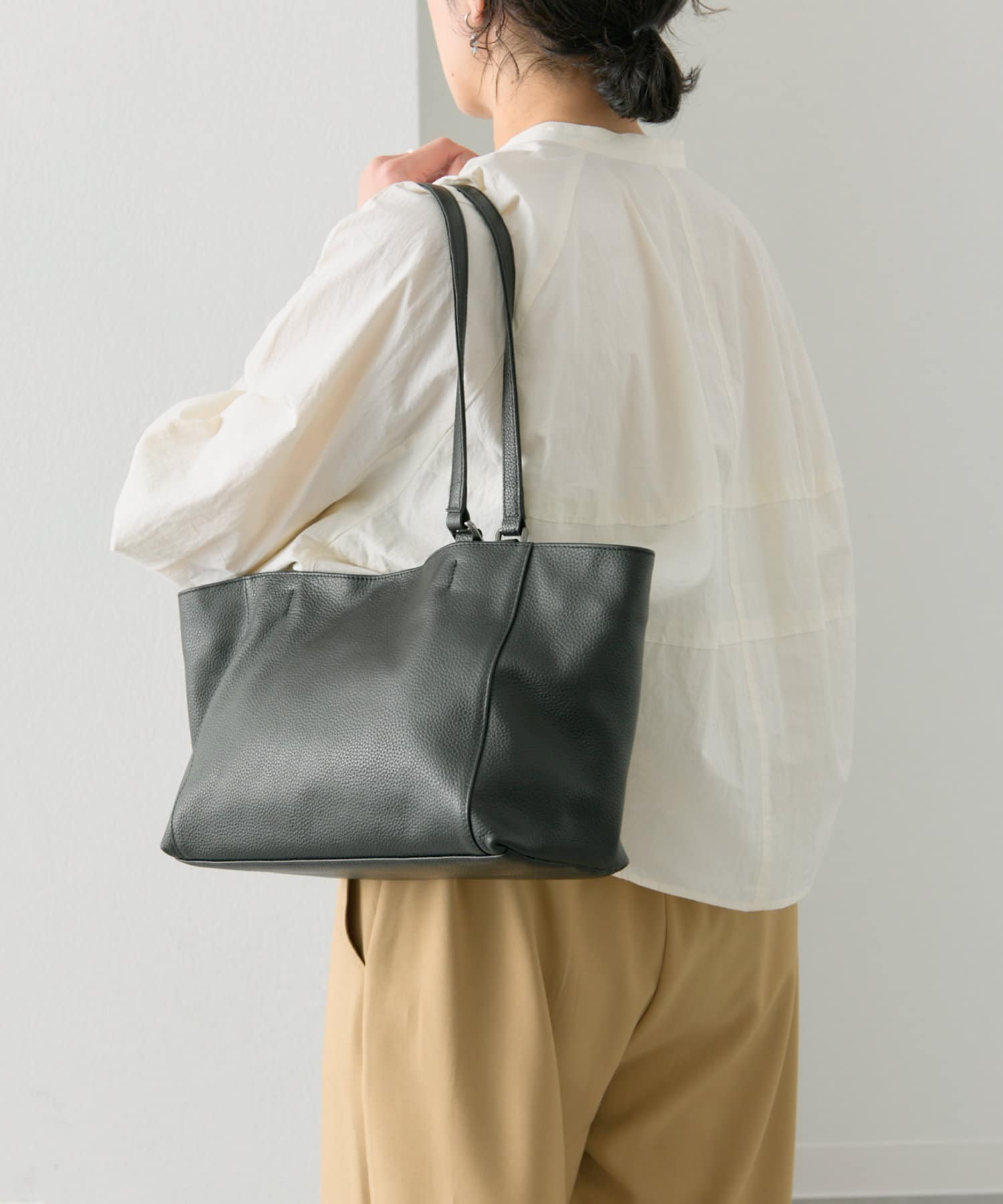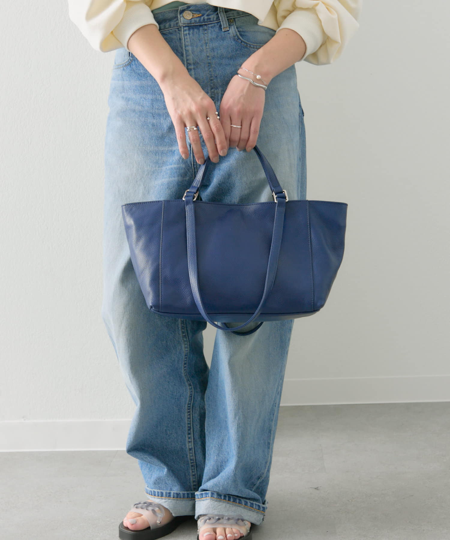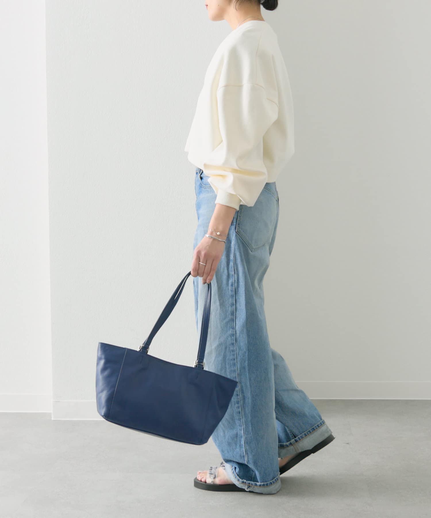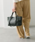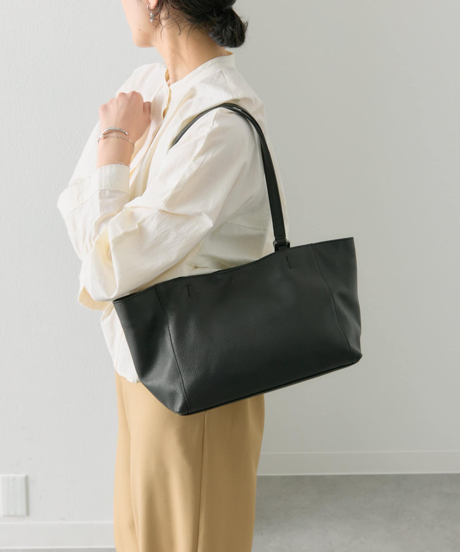 トレンド感のある横長シルエットが特徴のトートバッグ。