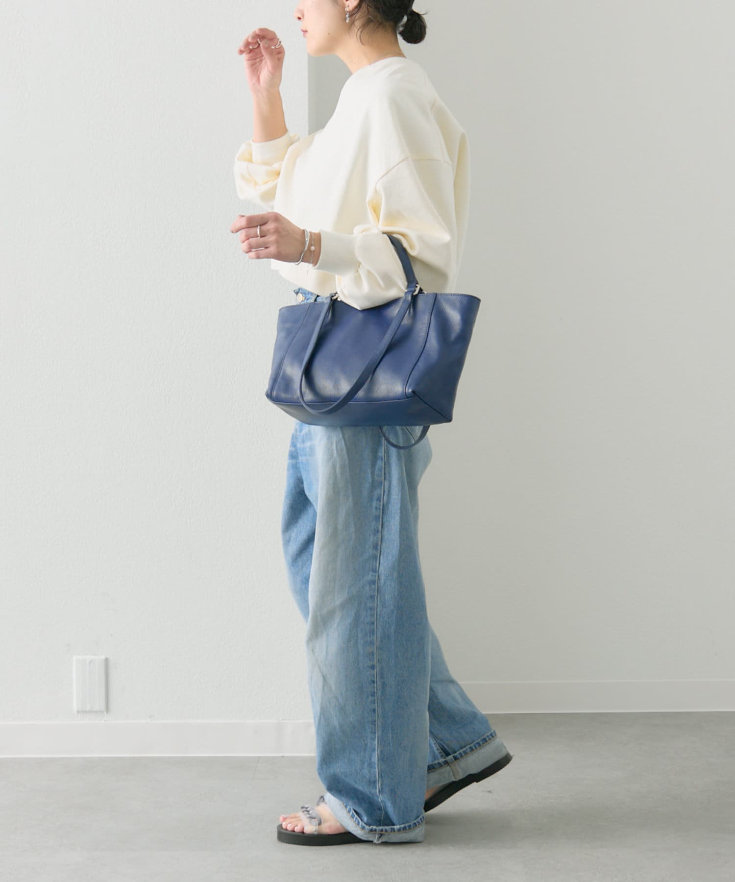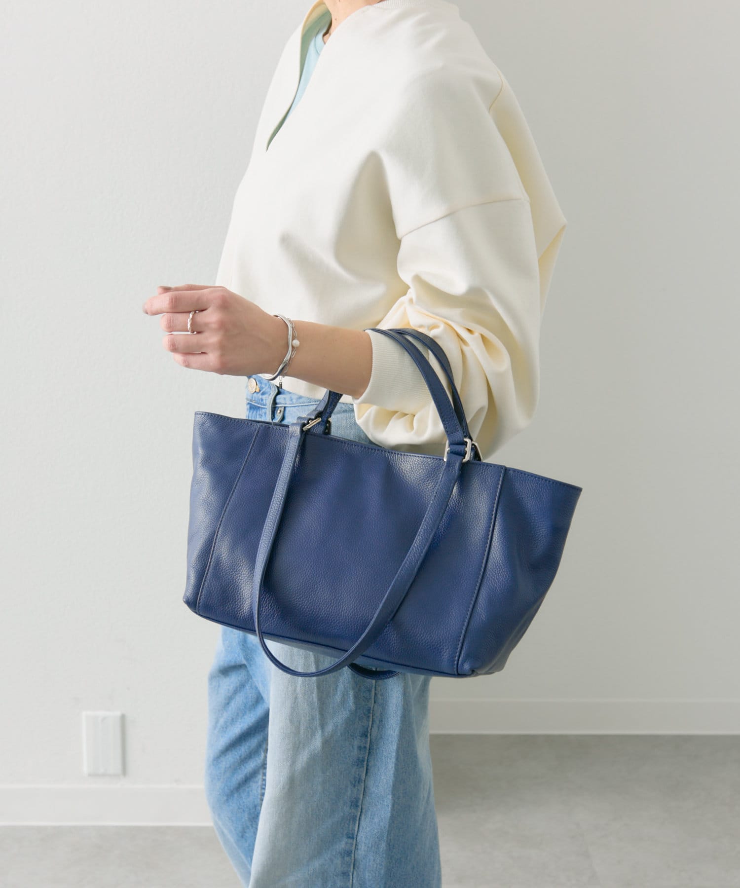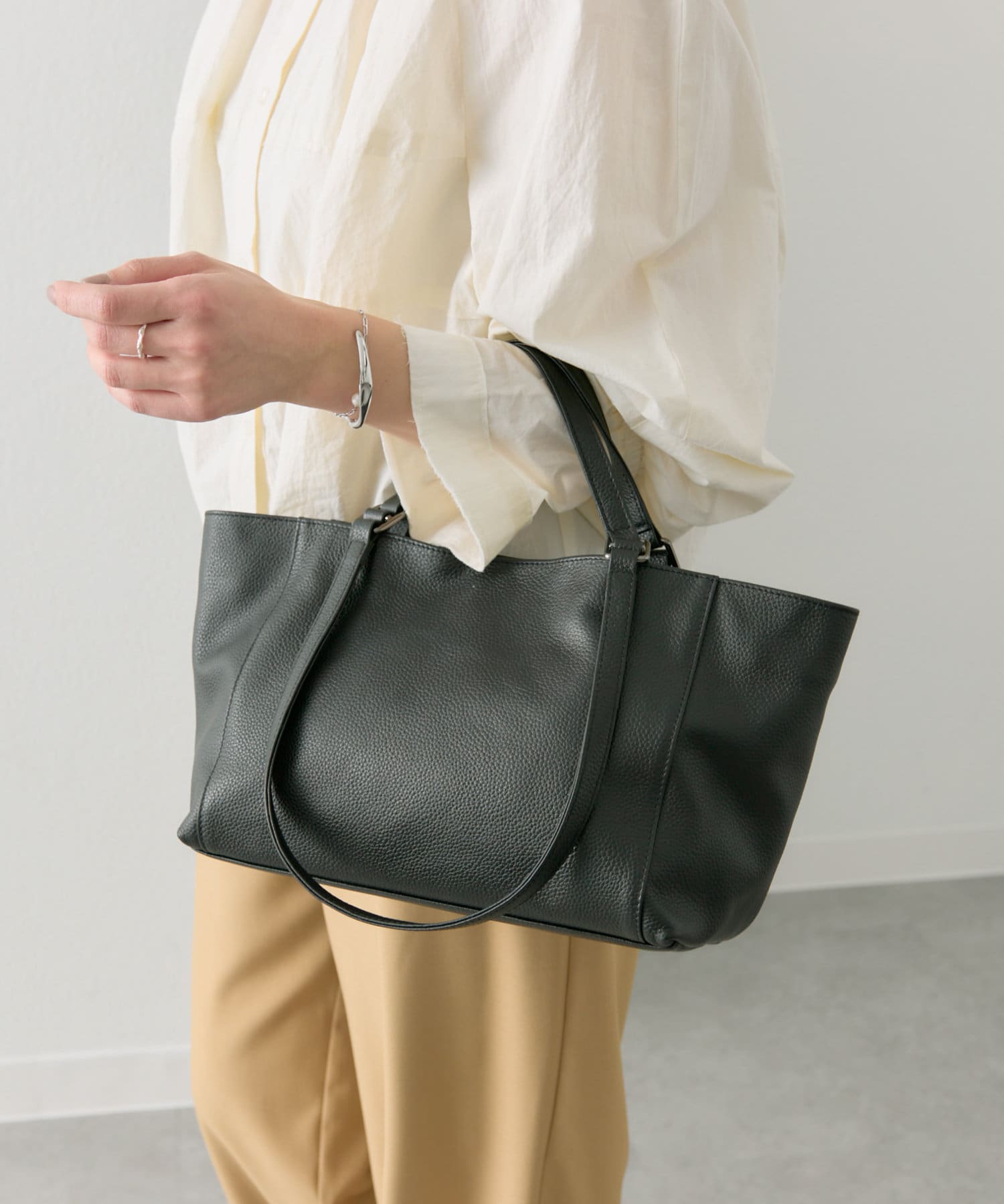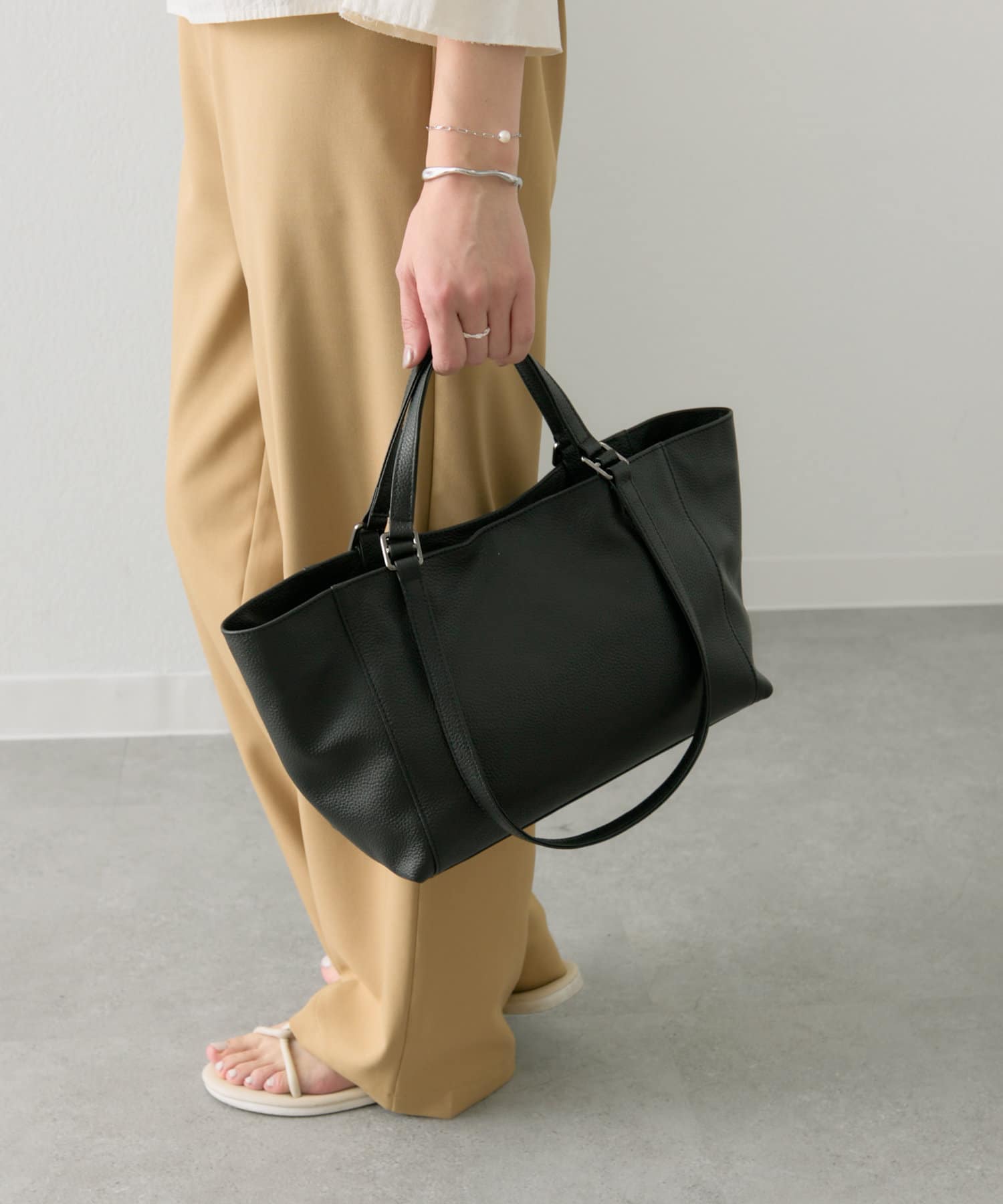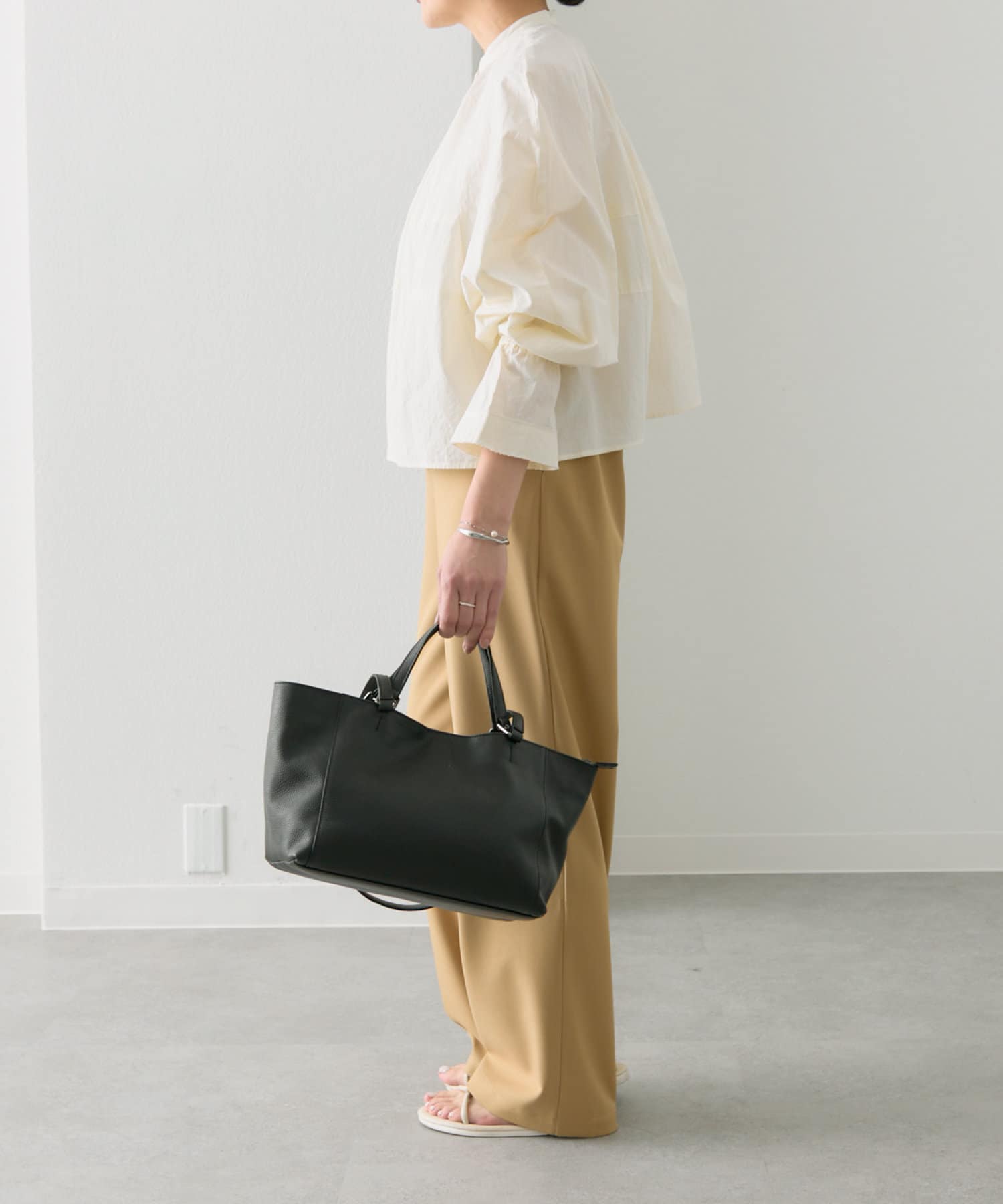 トレンド感のある横長シルエットが特徴のトートバッグ。