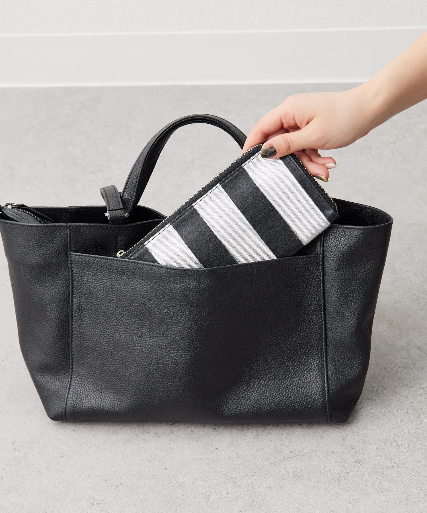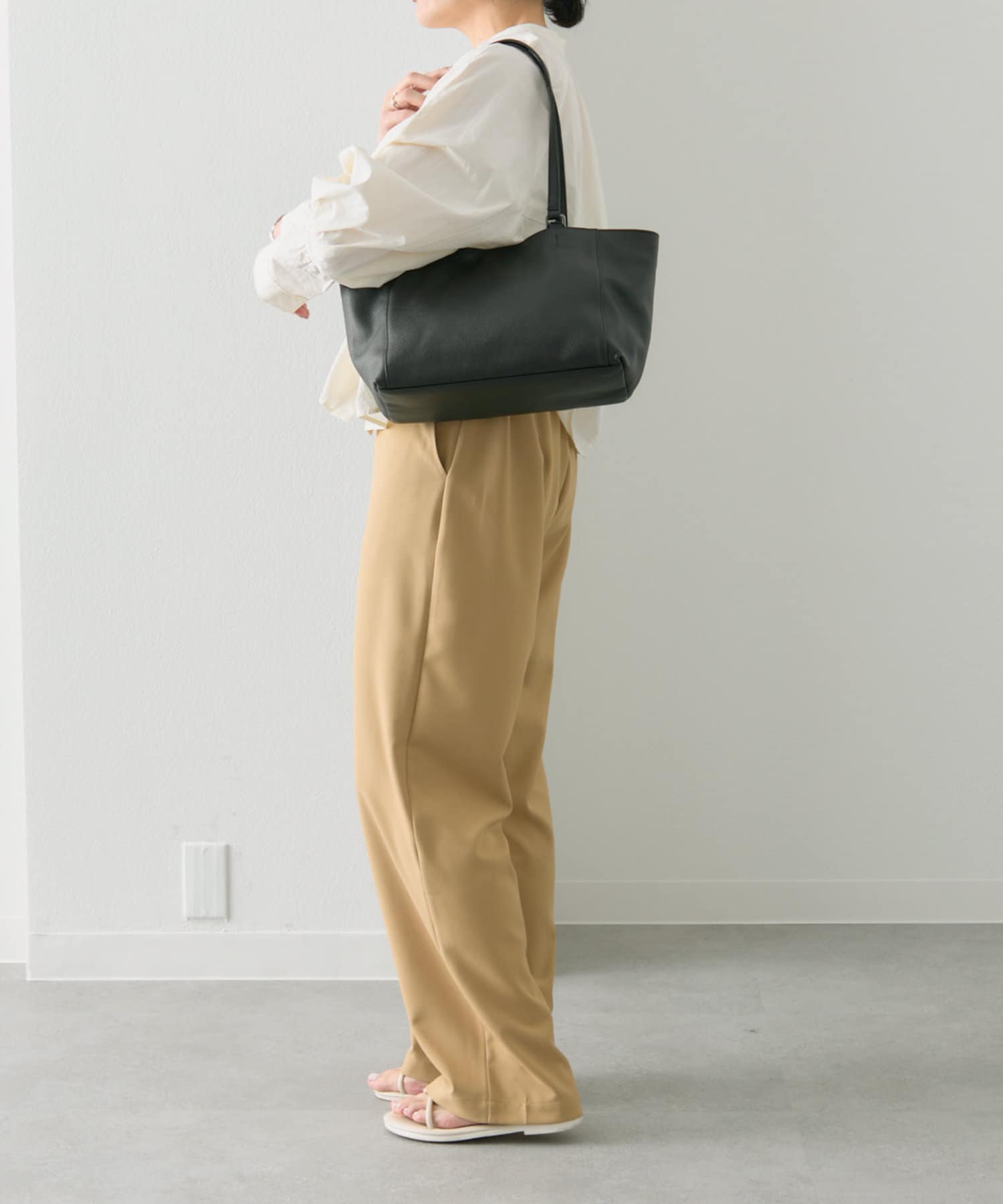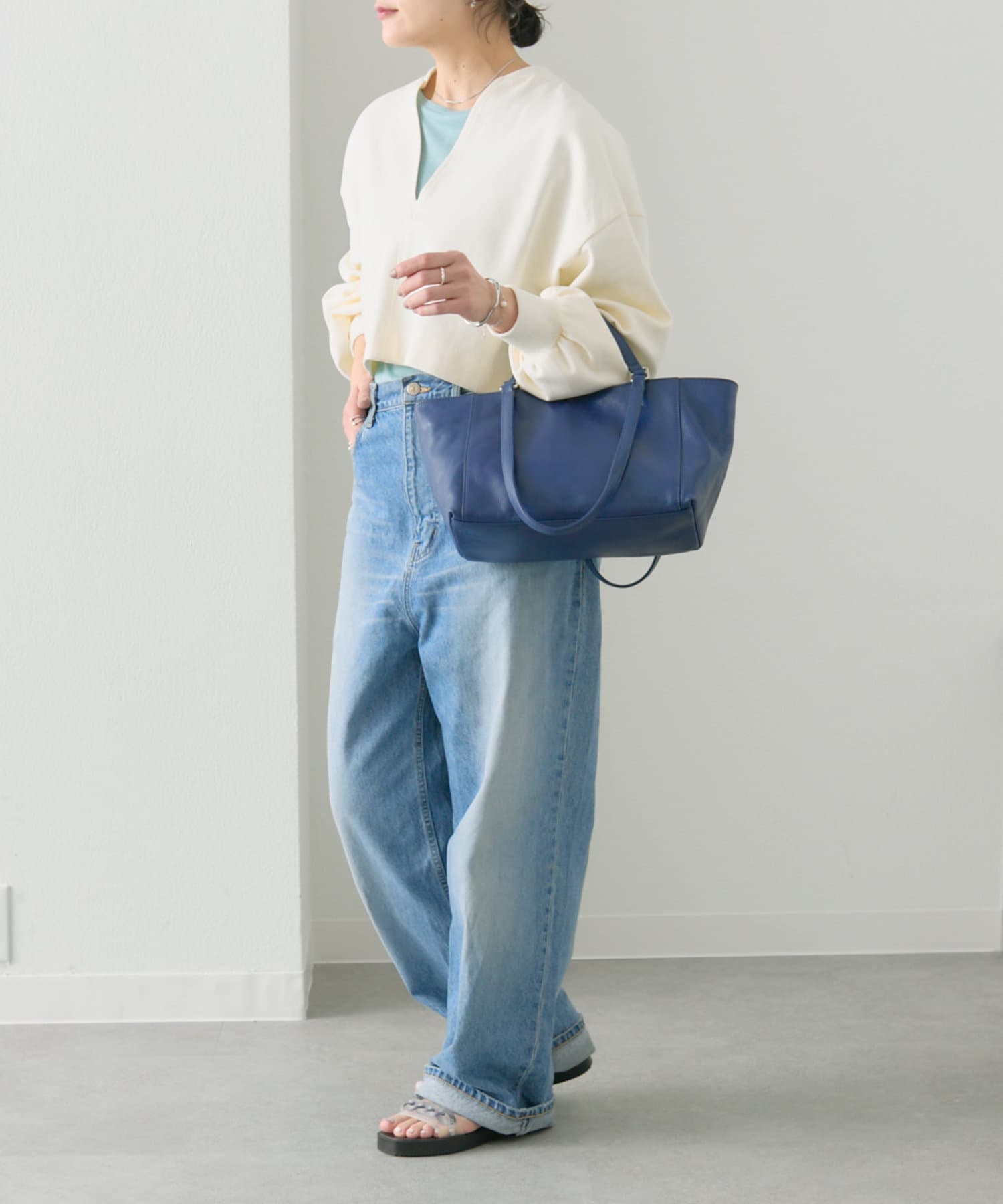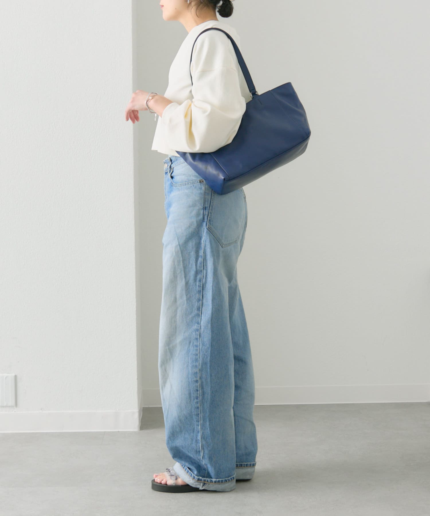 トレンド感のある横長シルエットが特徴のトートバッグ。