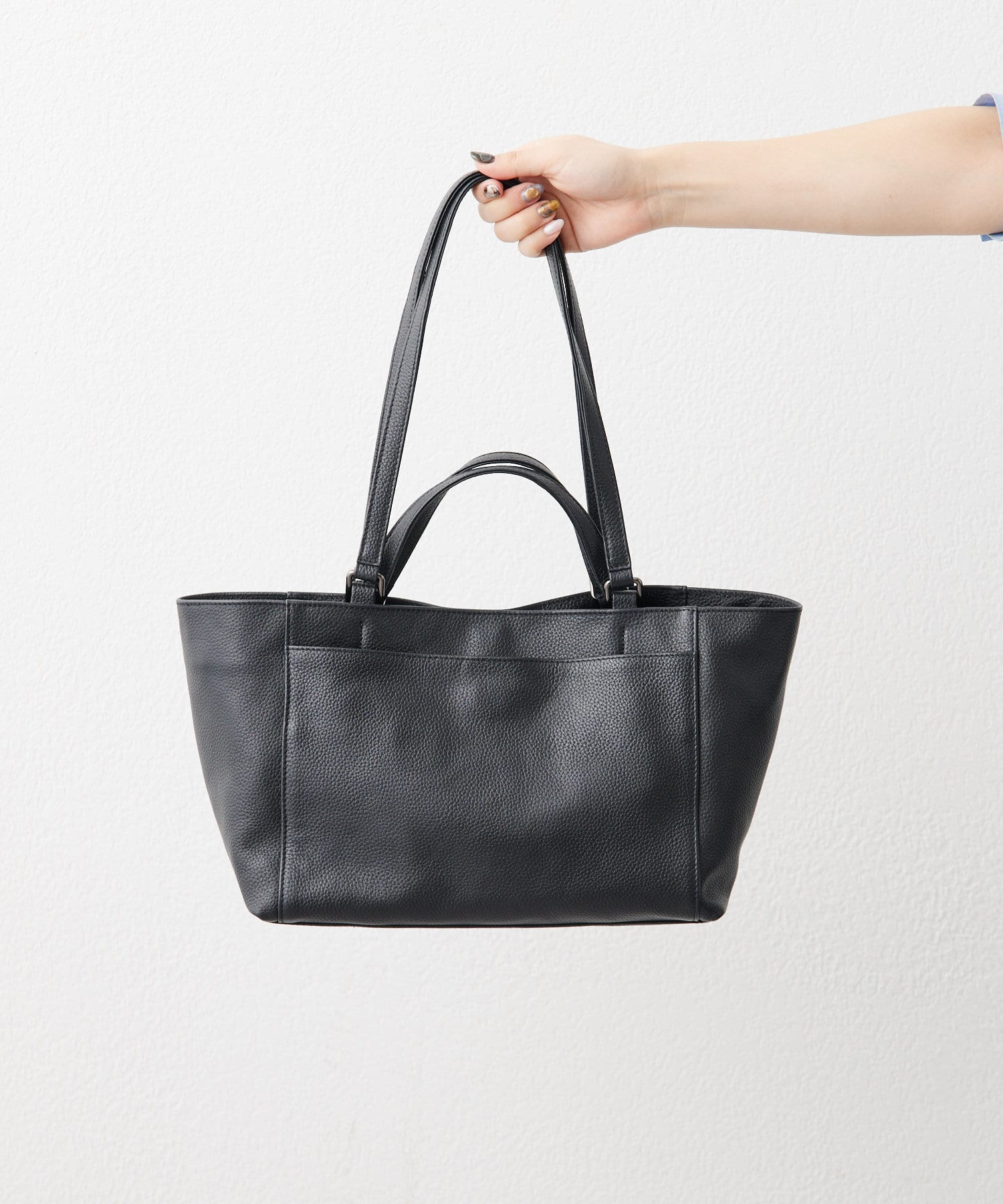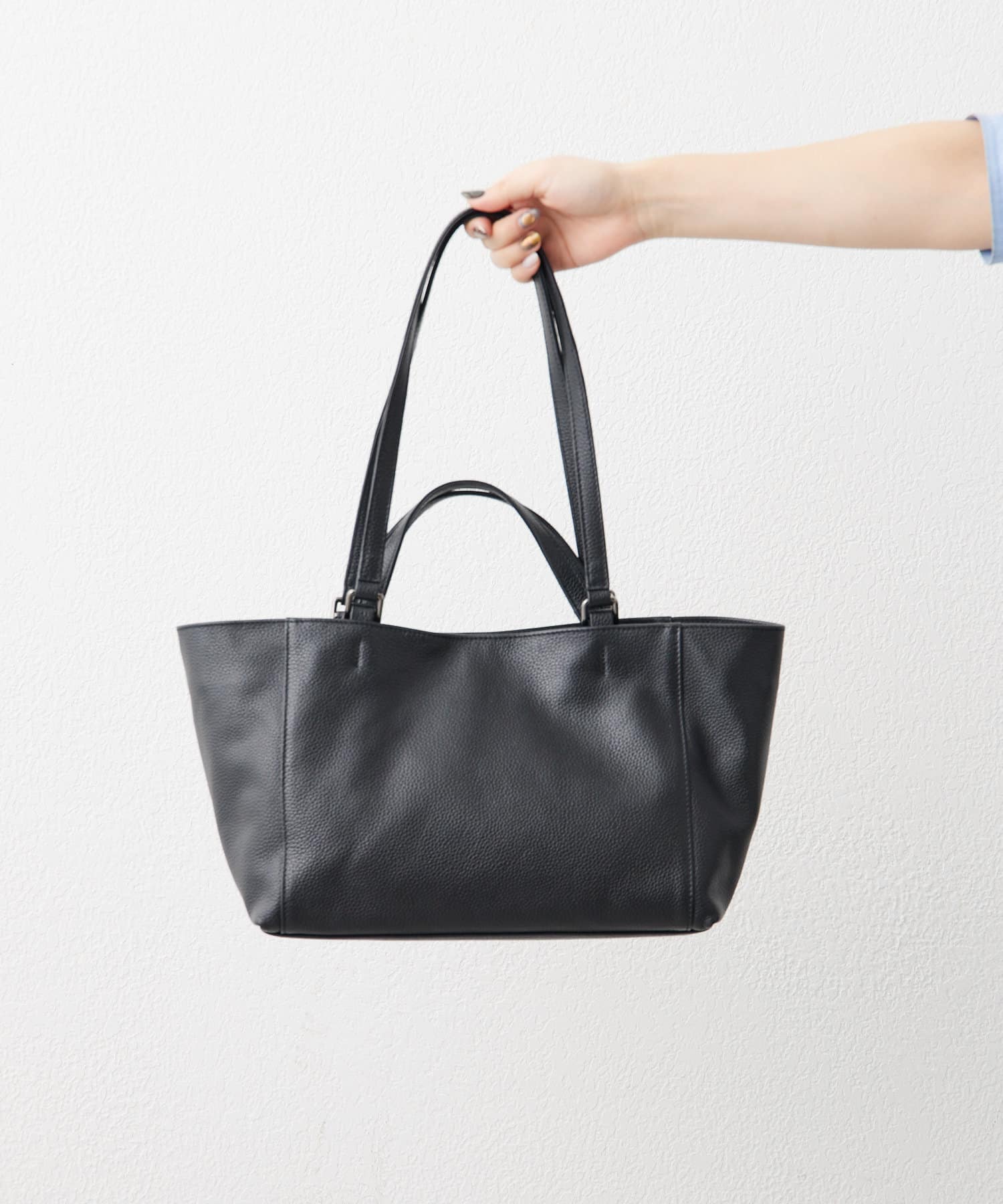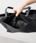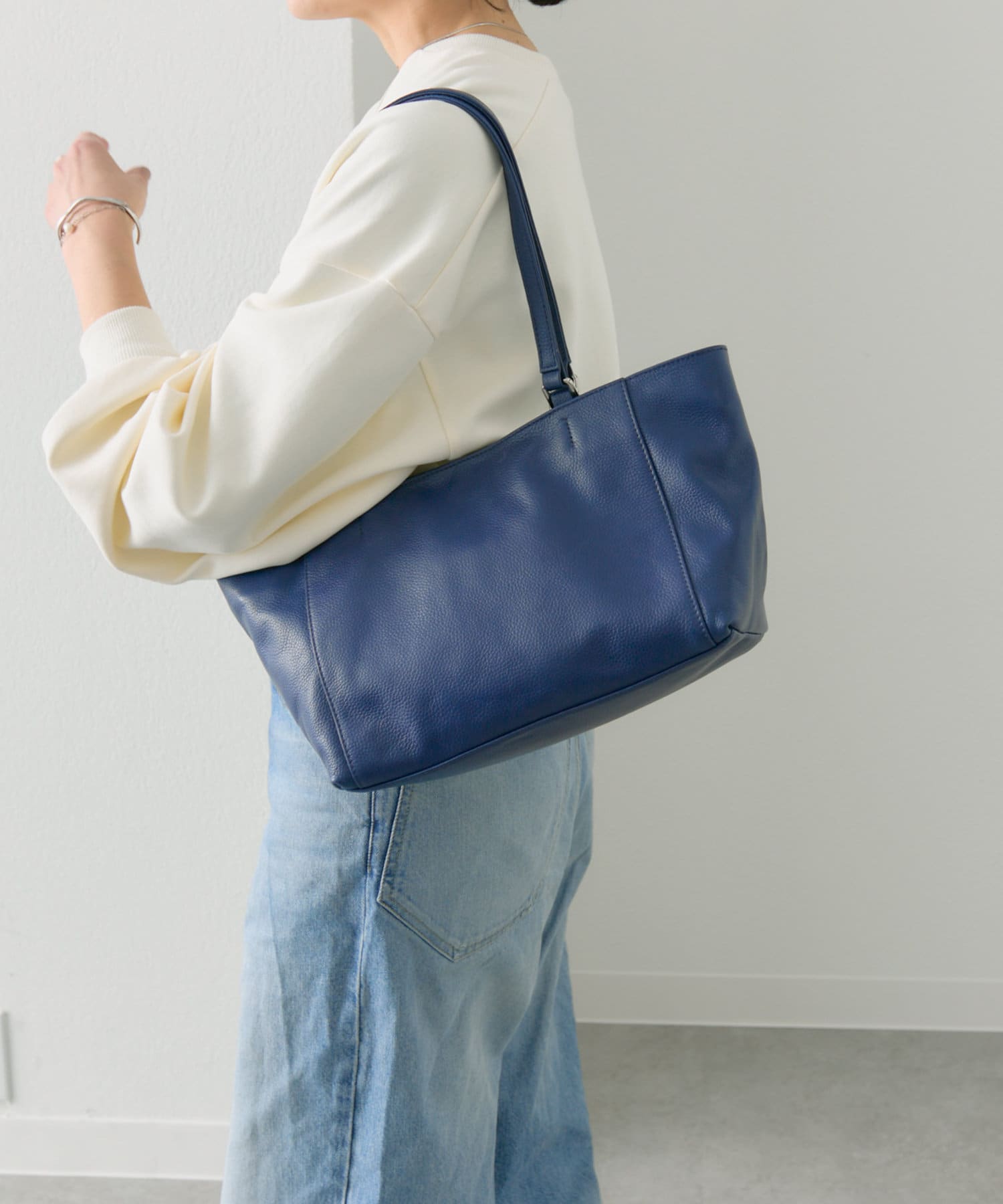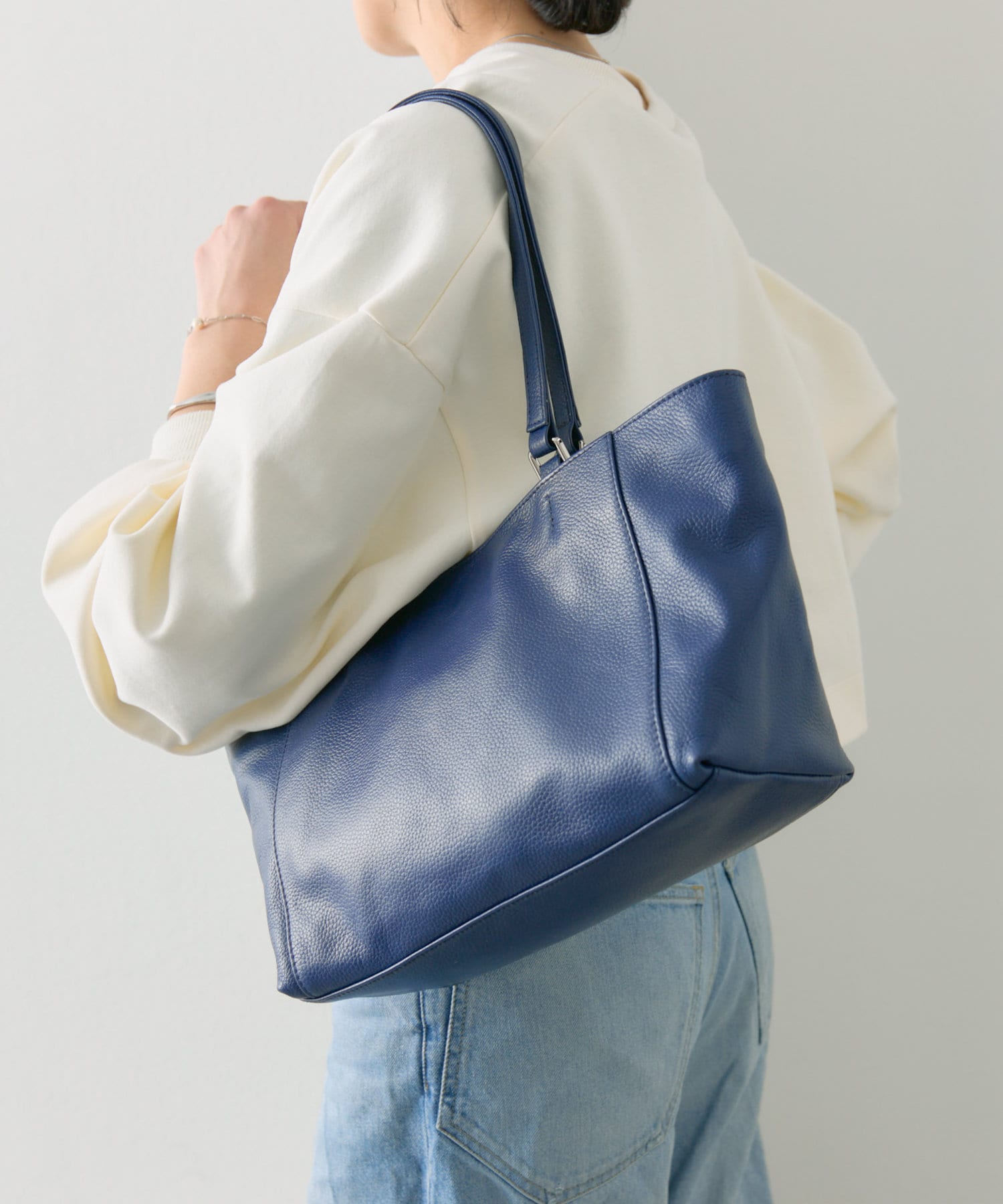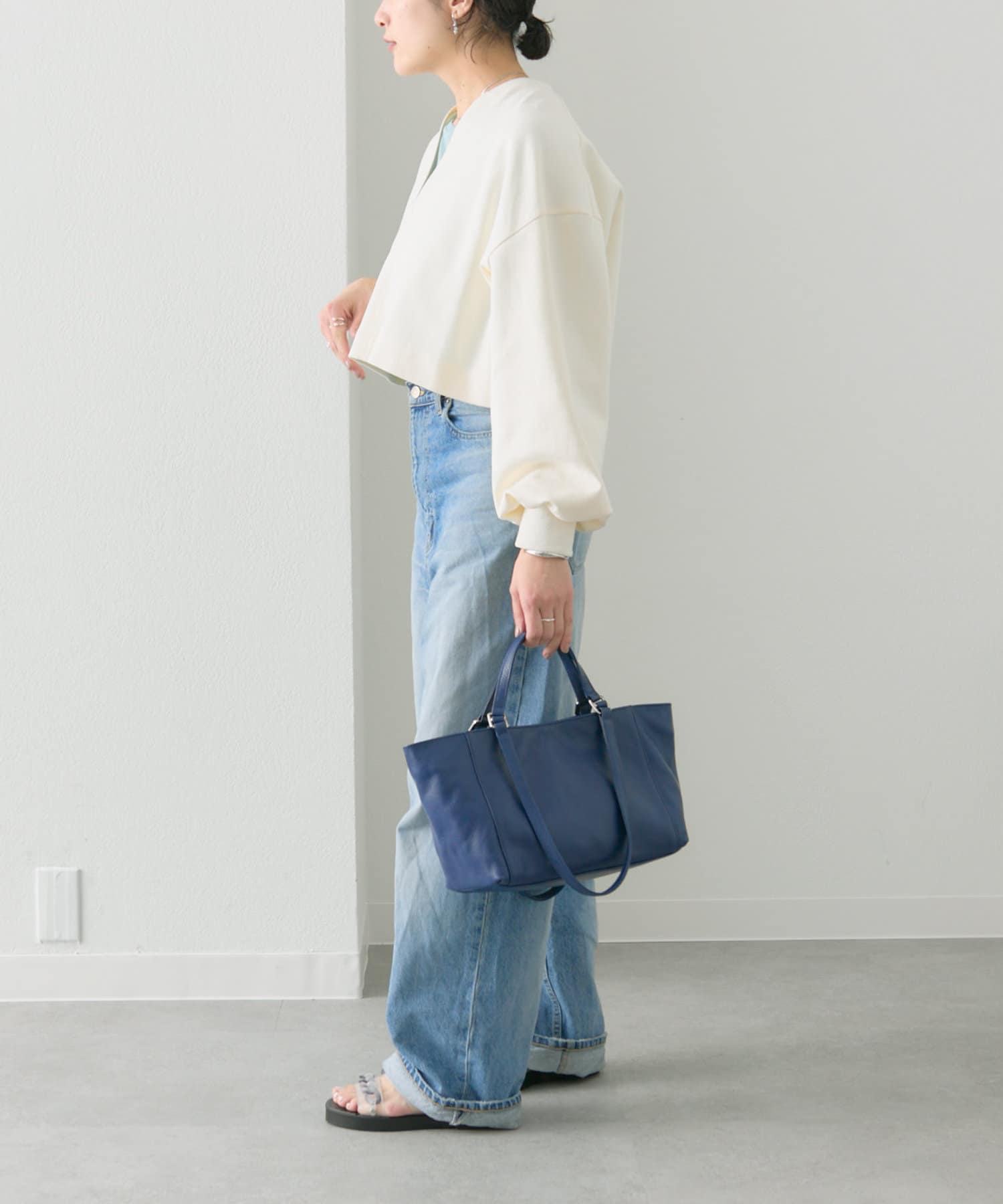 トレンド感のある横長シルエットが特徴のトートバッグ。