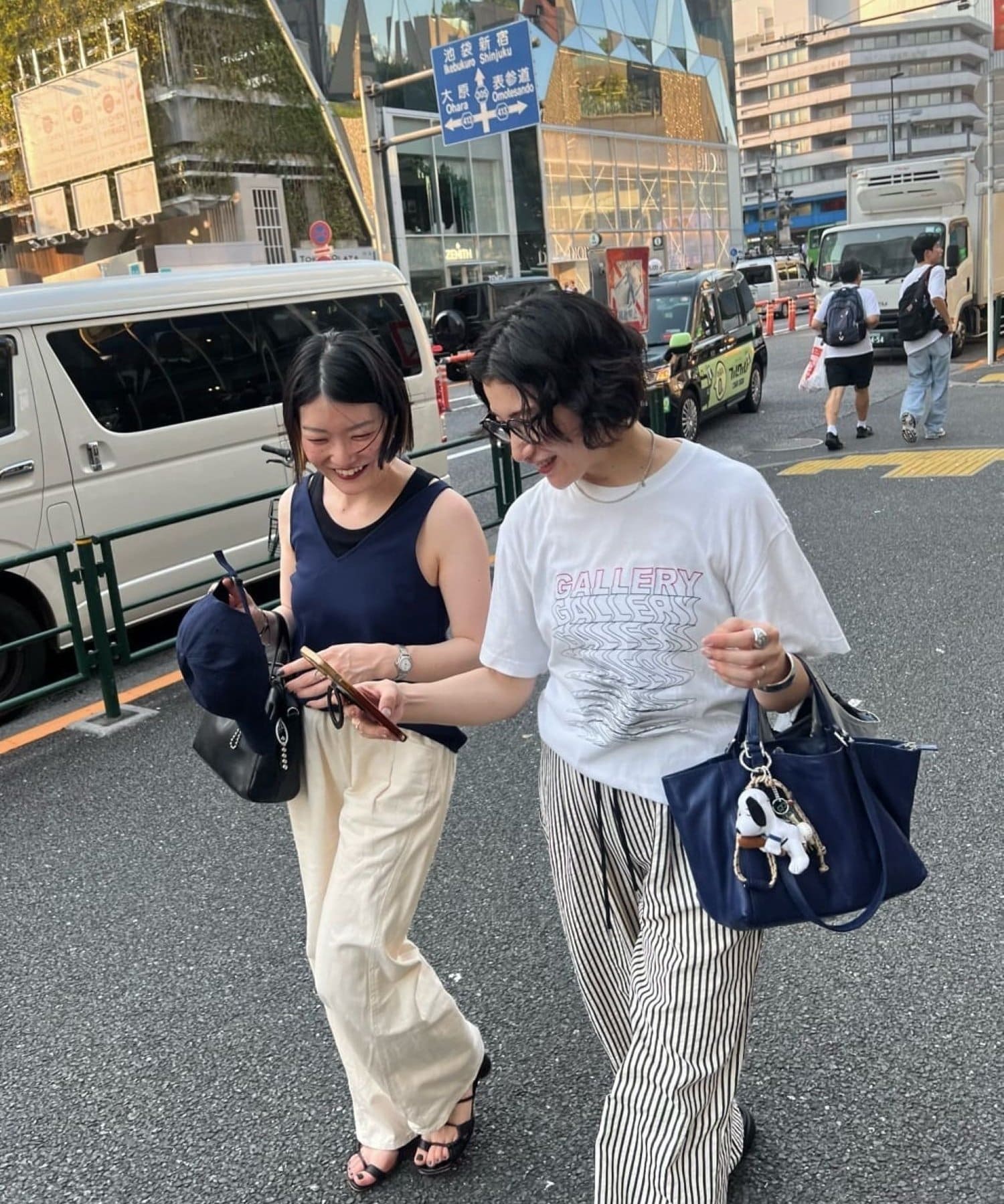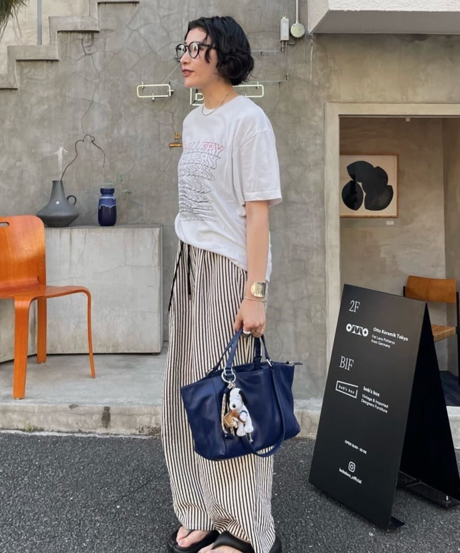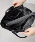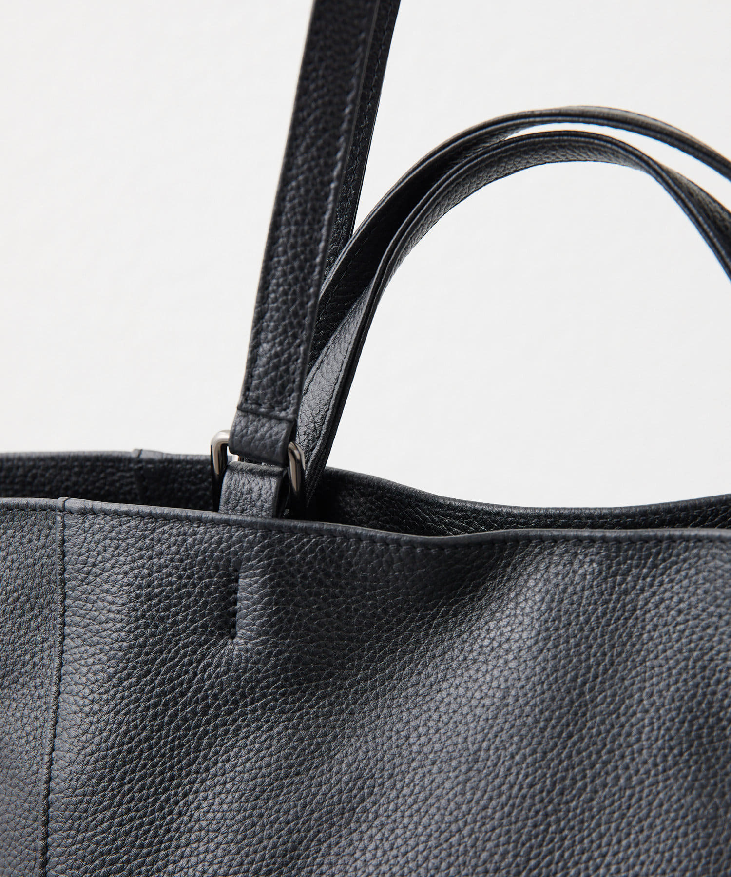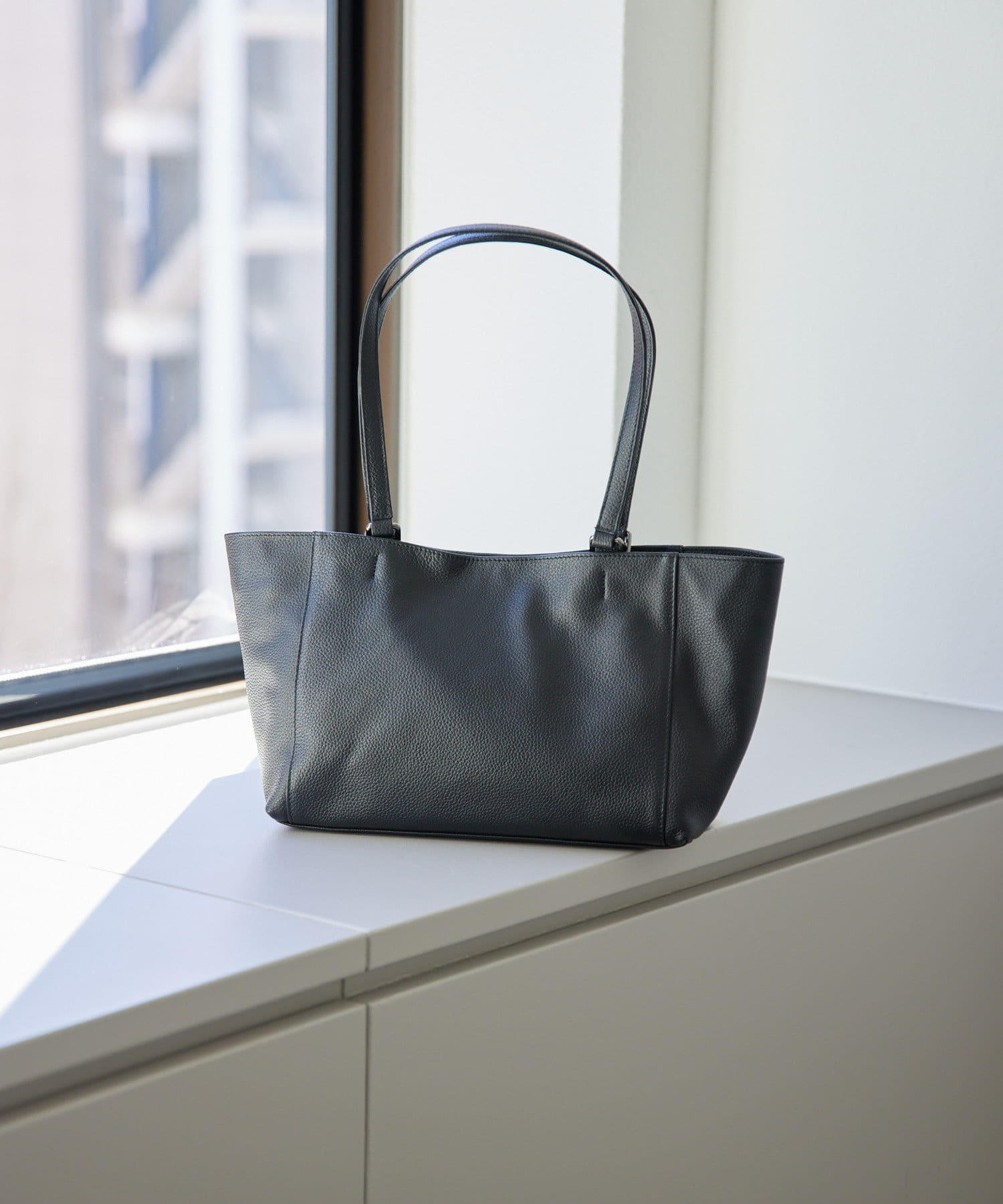 トレンド感のある横長シルエットが特徴のトートバッグ。