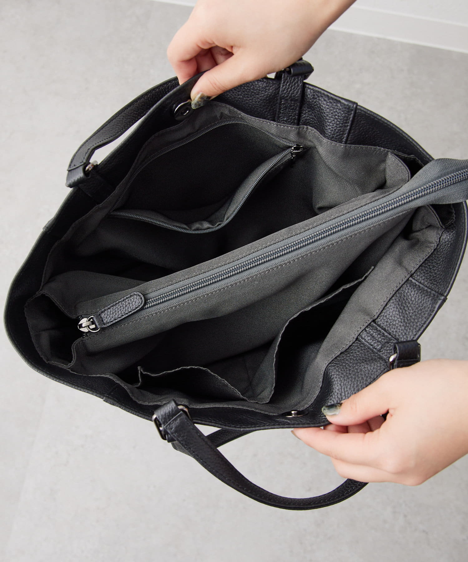 ・中を開けると3か所に仕切られた収納で荷物の整理がしやすい