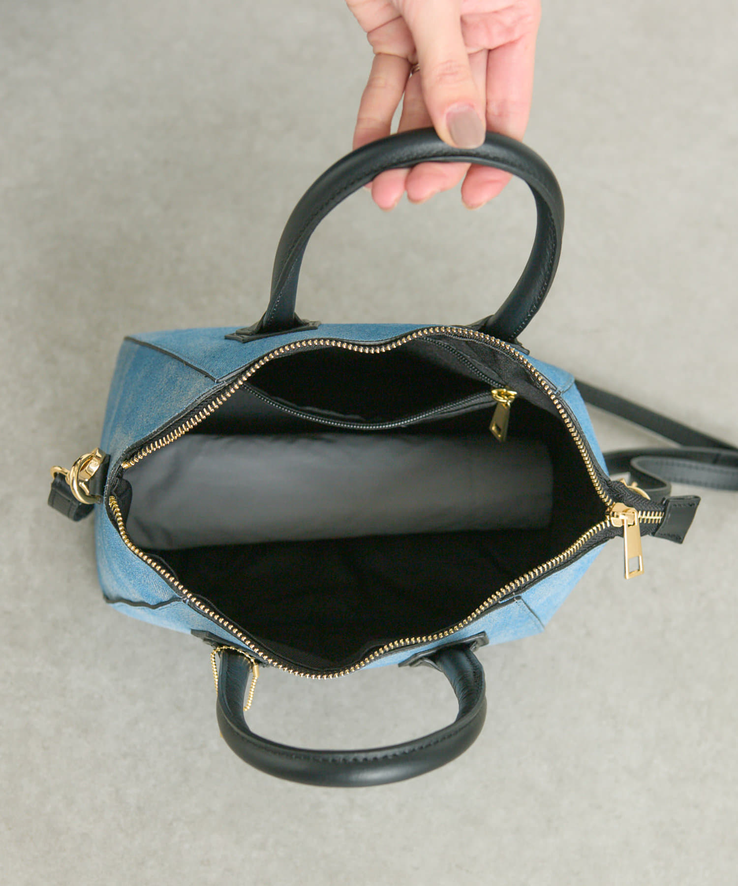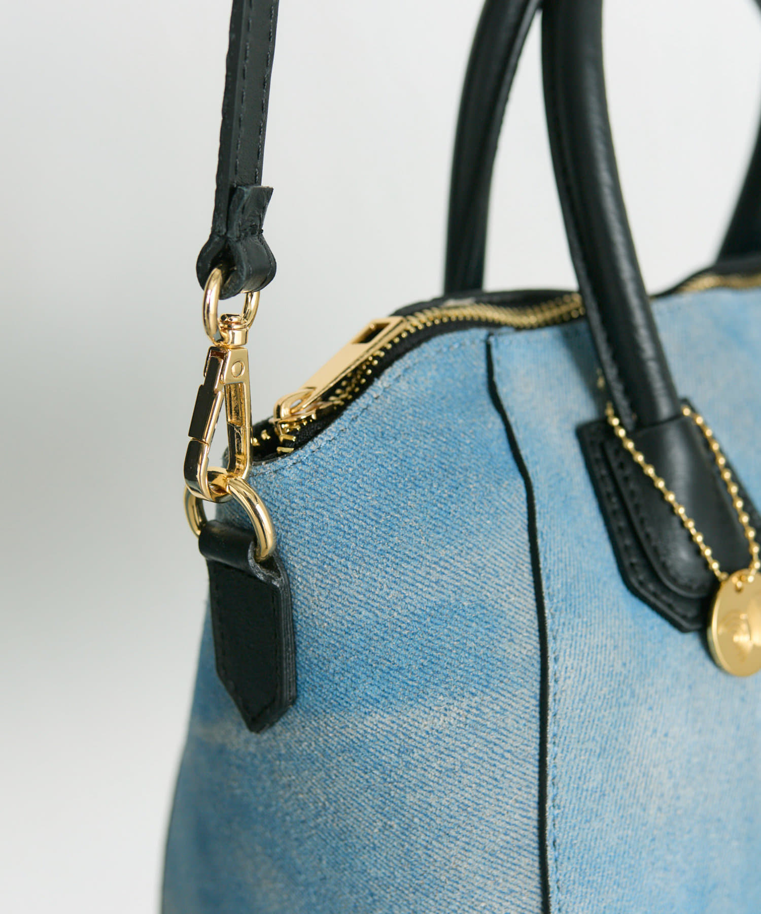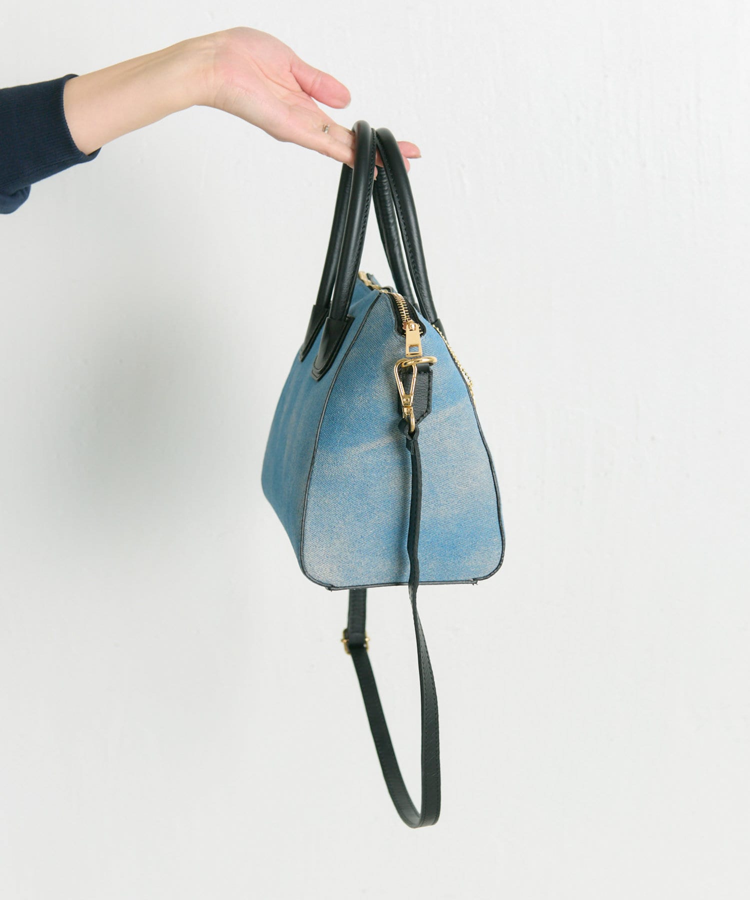 【LAURA DI MAGGIO(ラウラ ディマッジオ)】《牛革》JEANS LEATHER BOSTON/ジーンズレザーボストンバッグ