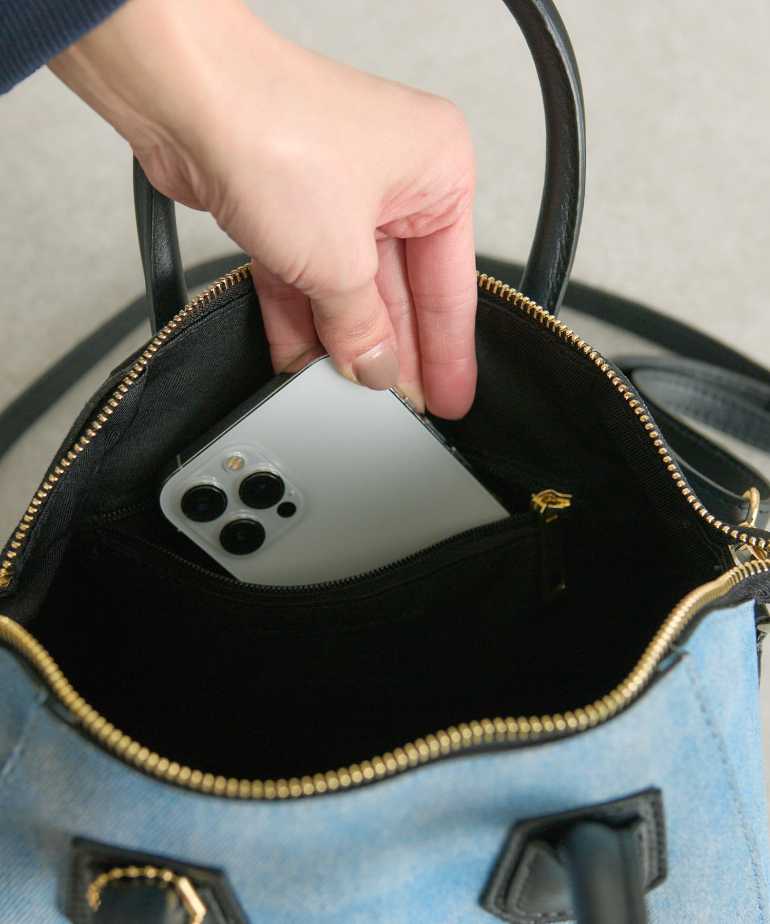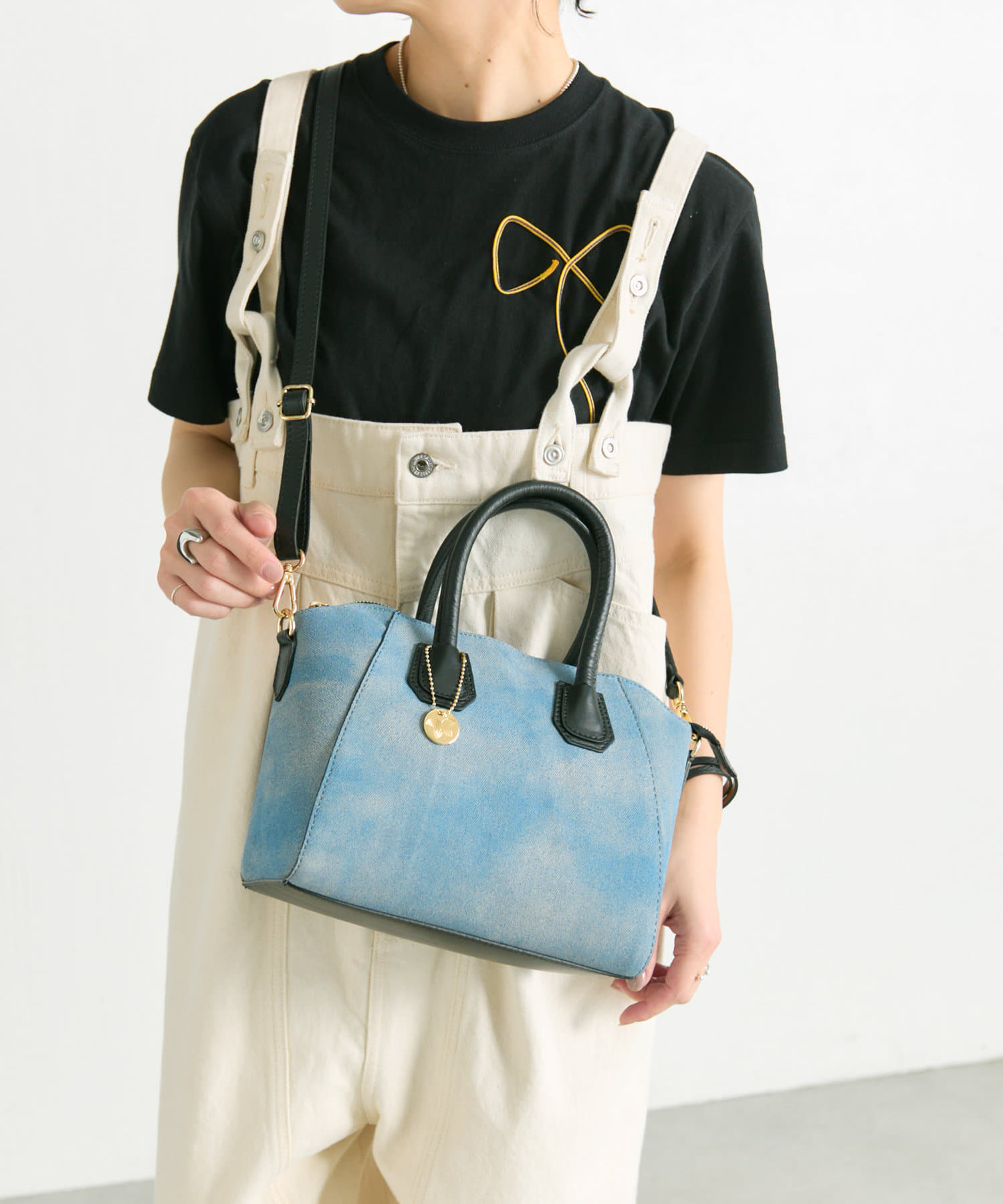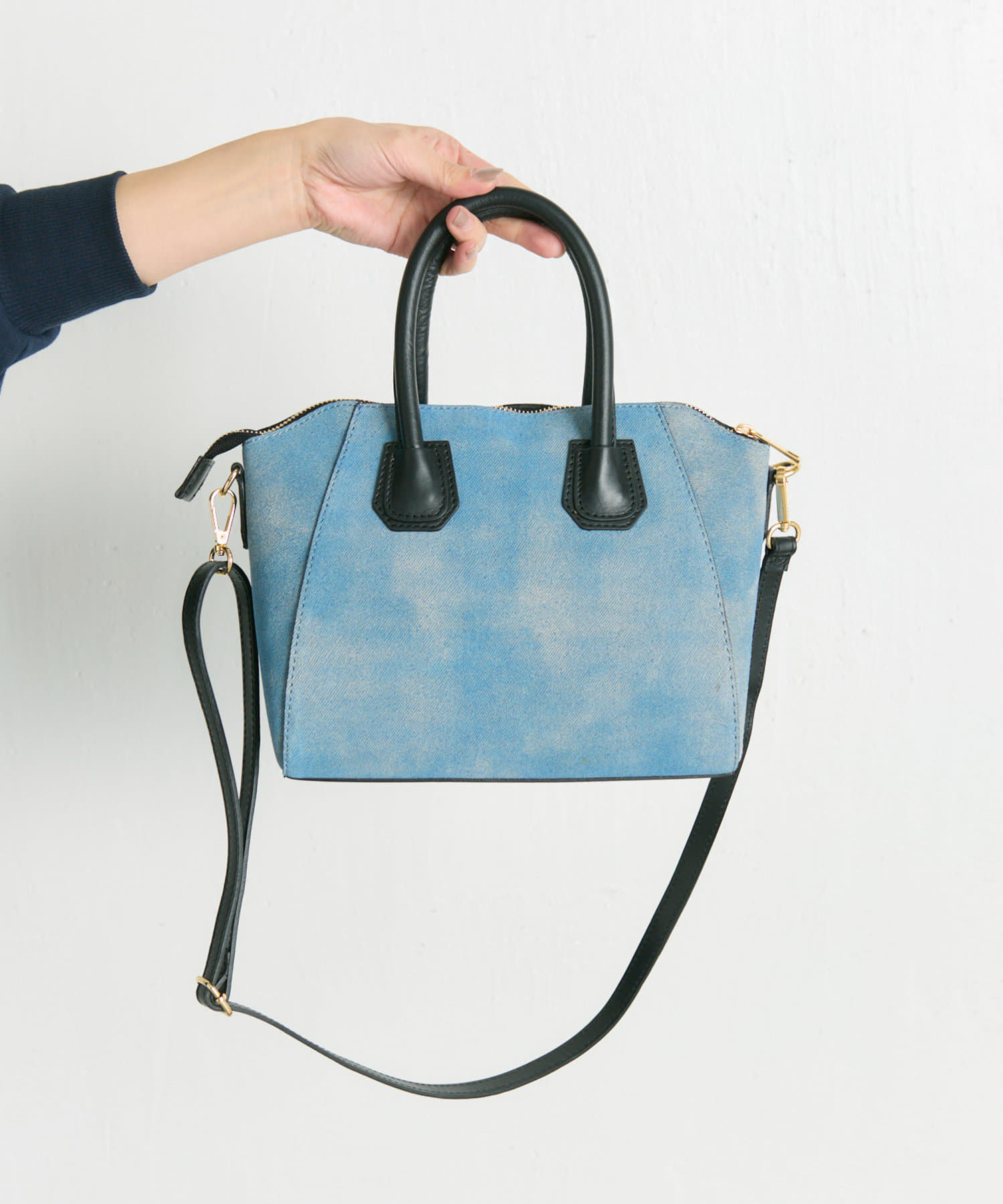 【LAURA DI MAGGIO(ラウラ ディマッジオ)】《牛革》JEANS LEATHER BOSTON/ジーンズレザーボストンバッグ