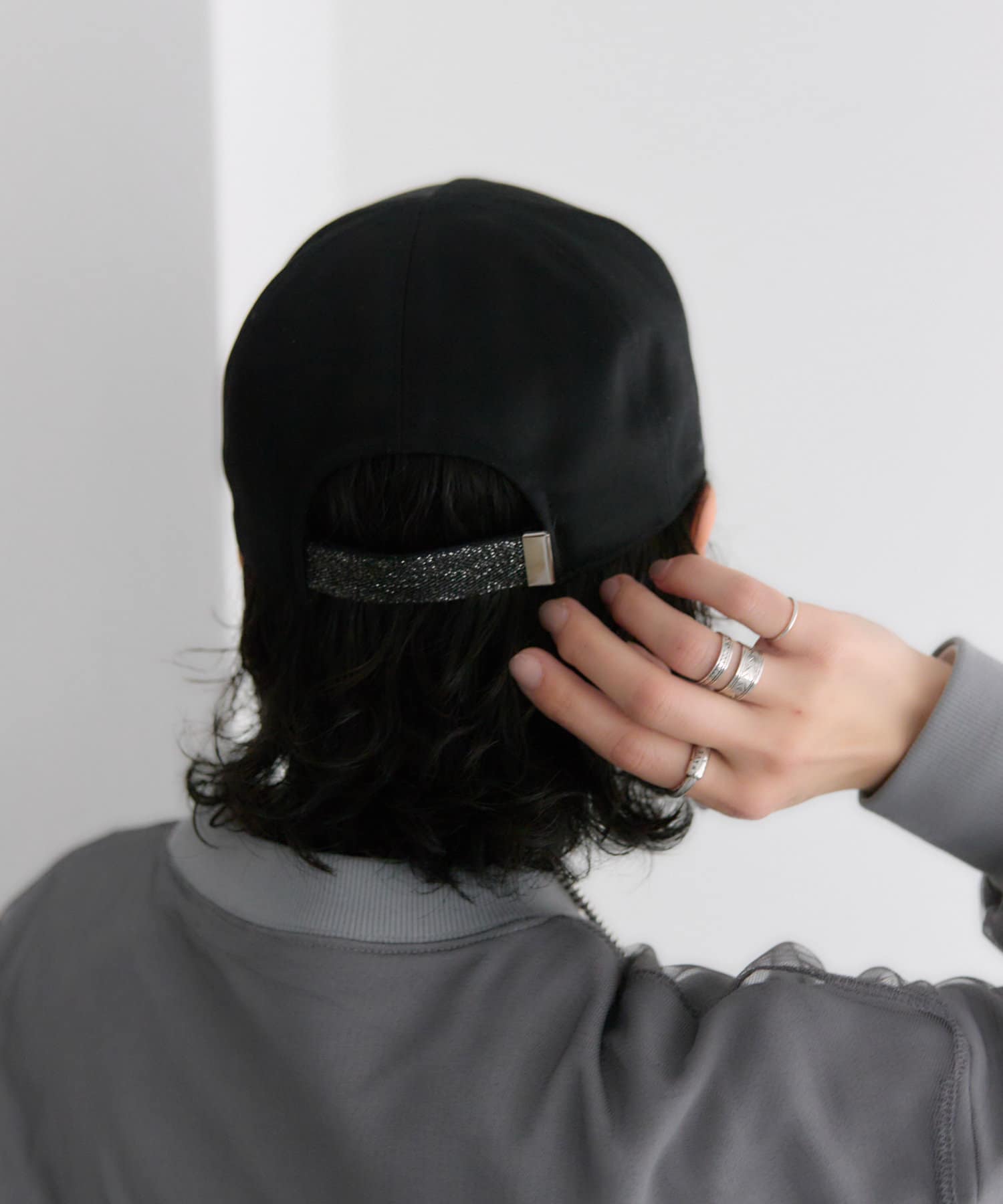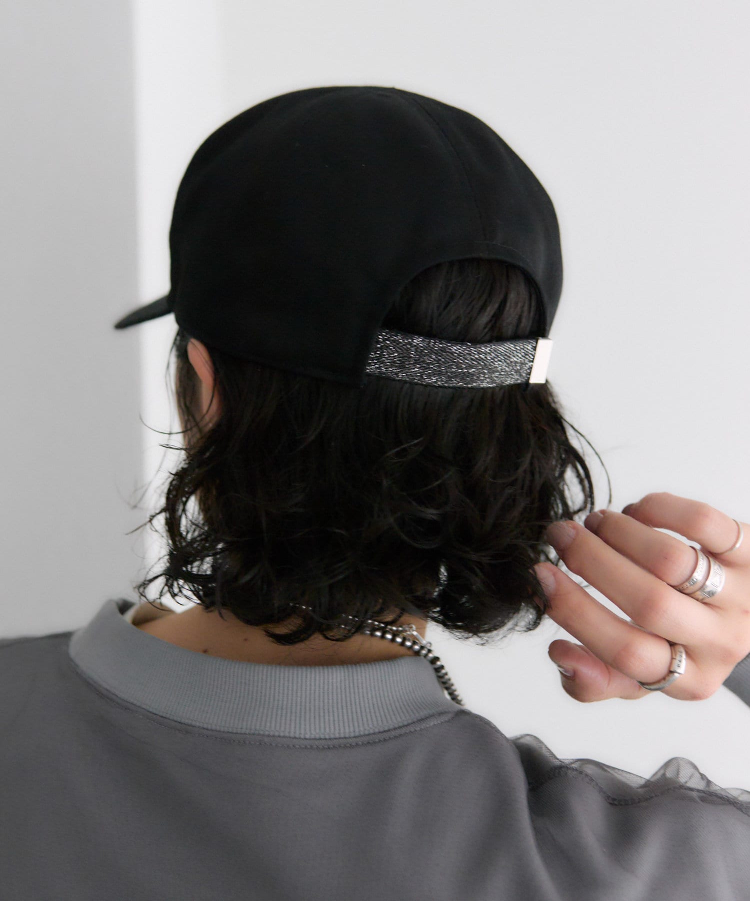 クラウン部分のデザインとサイズ調整ベルトもear別注で女性らしい仕上がりになっています。