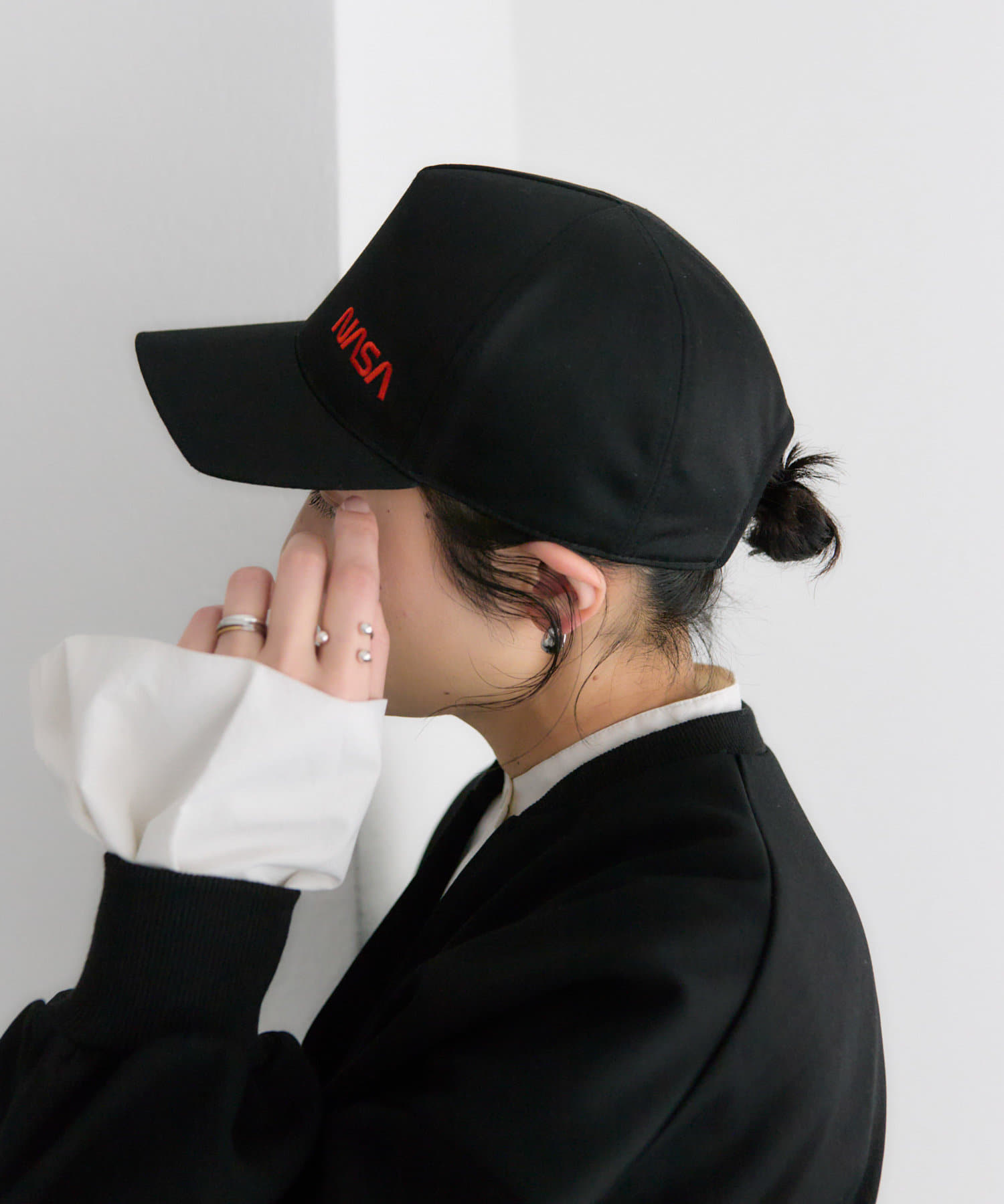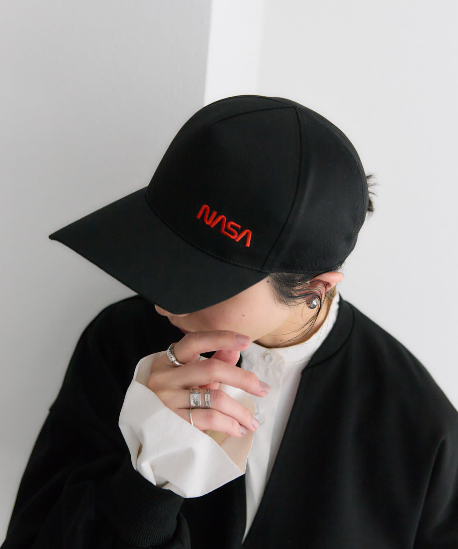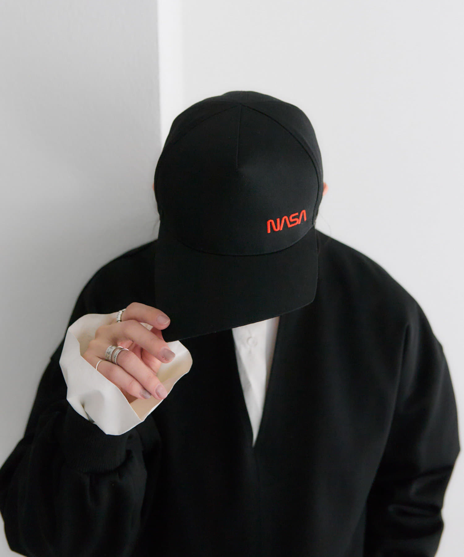 キャップ前パネルにはNASAのワームロゴの刺繍