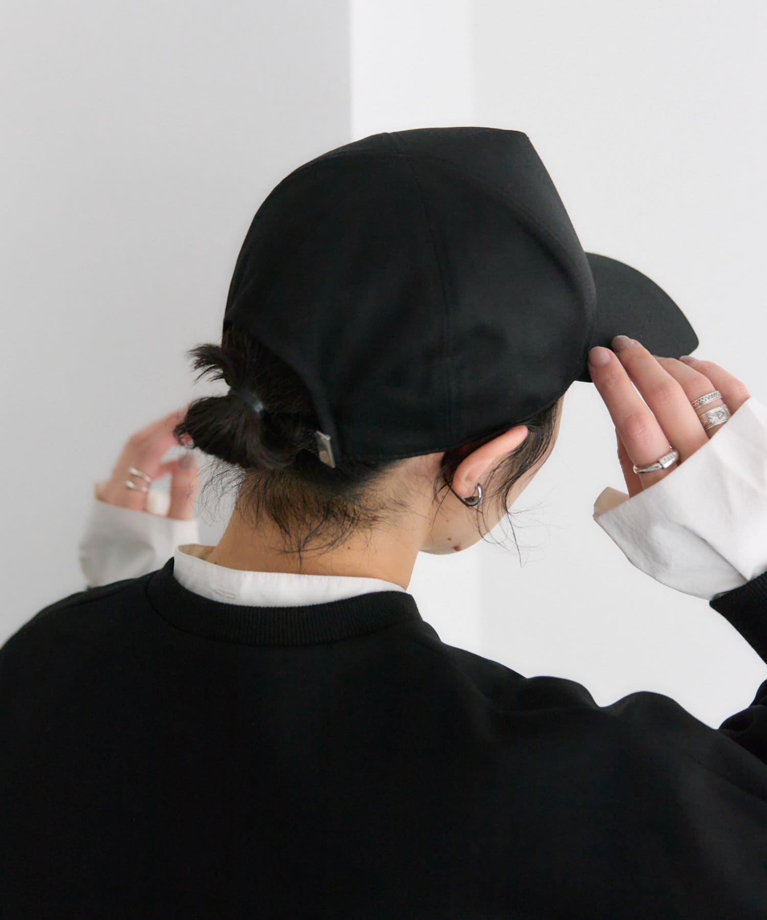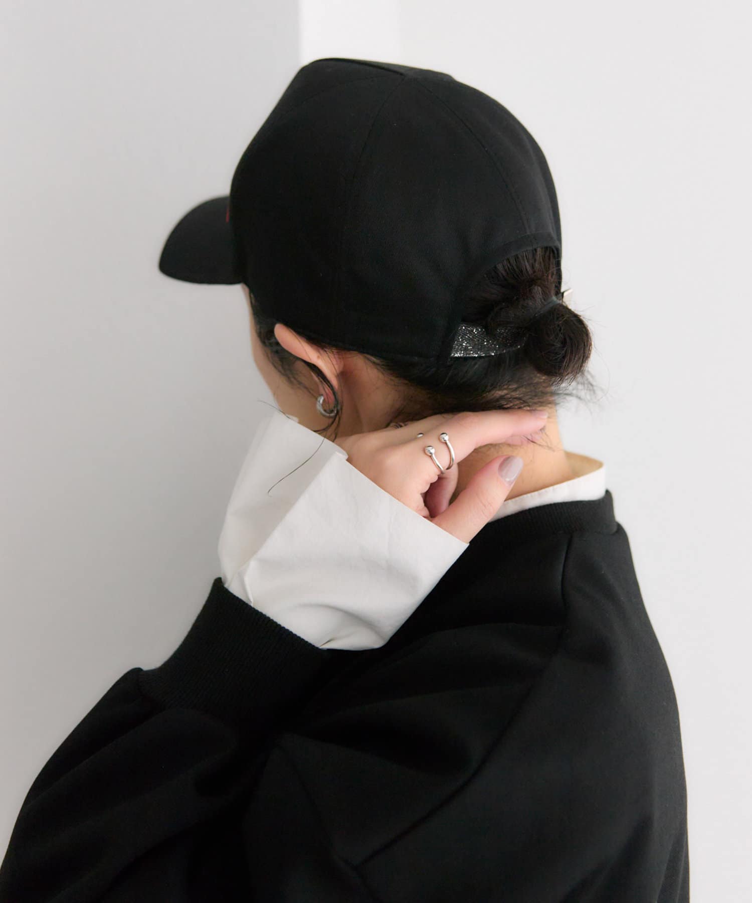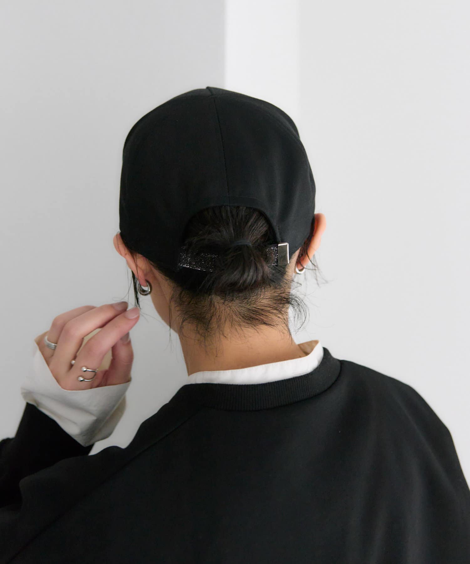 クラウン部分のデザインとサイズ調整ベルトはear別注で女性らしい仕上がりになっています。