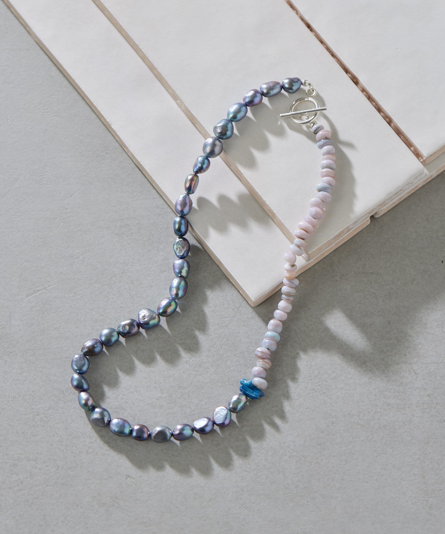 ・パール×天然石を組み合わせたネックレスは、以前よりやや長さを出しバージョンアップ
