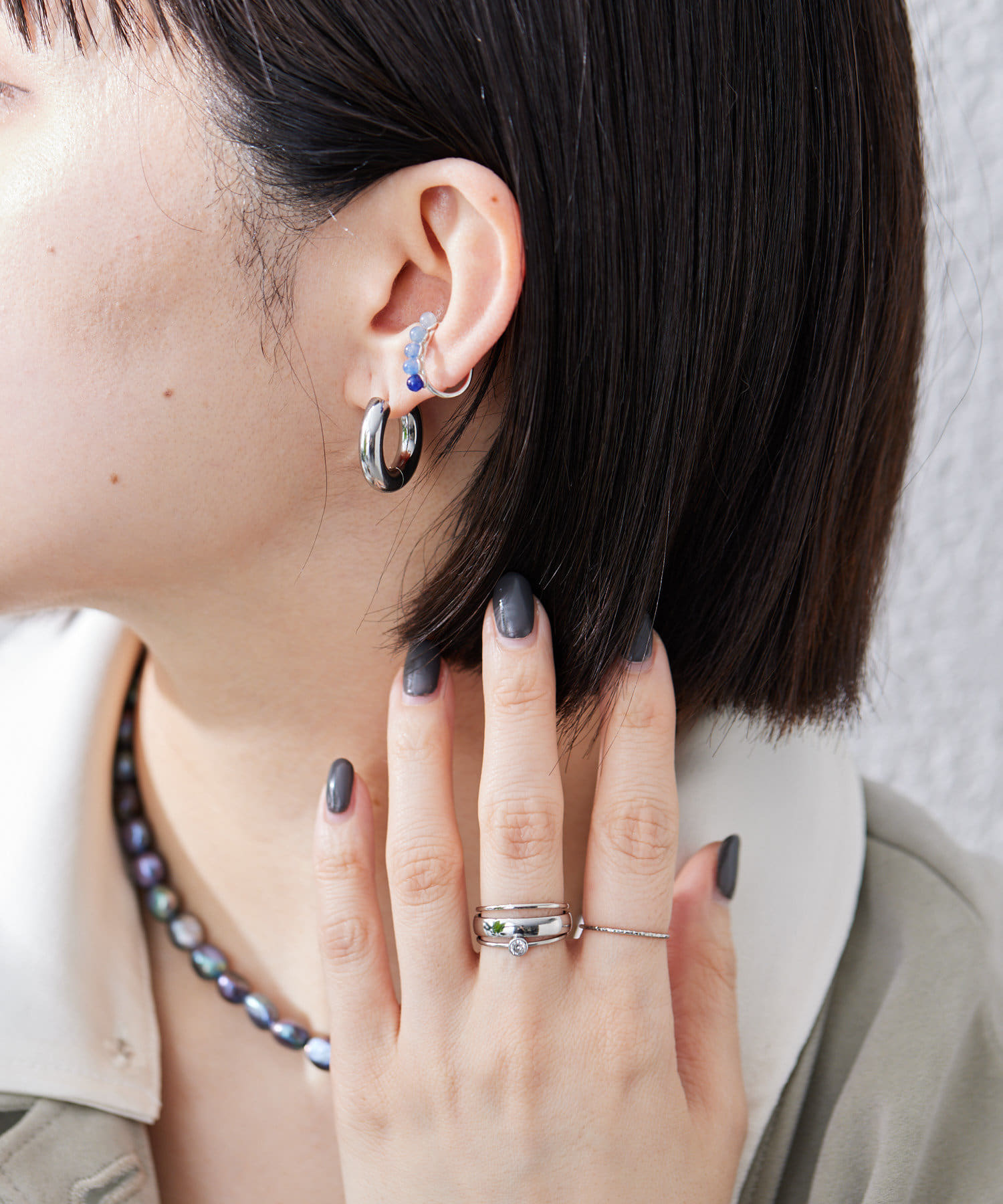 ・天然石を配置したシルバー製のイヤーカフ