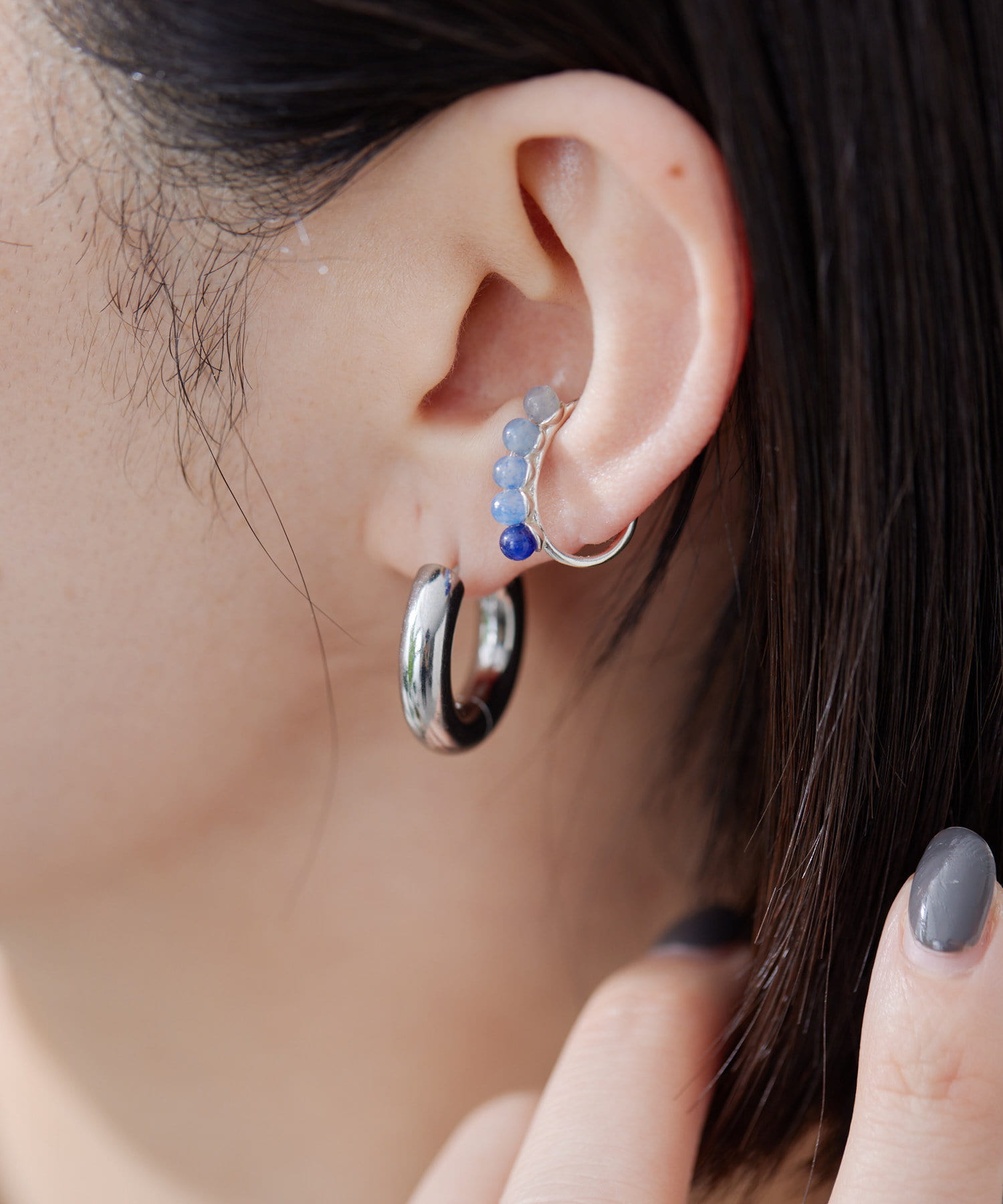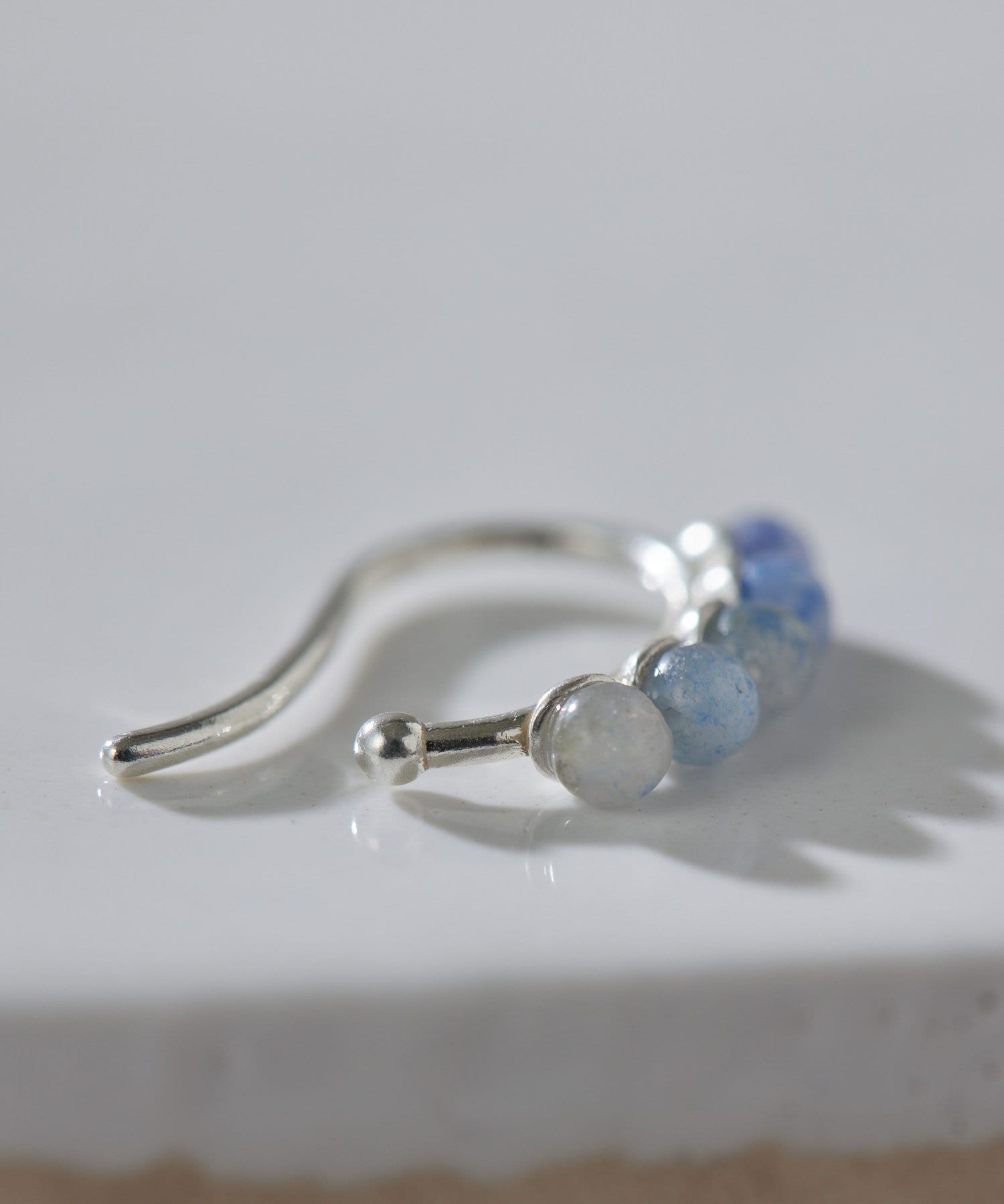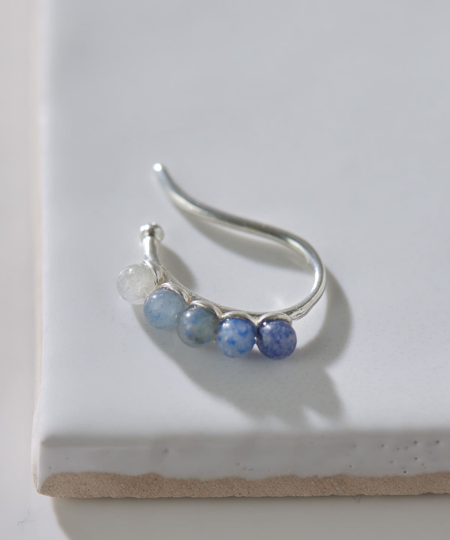上品なスターリングシルバーに、ブルーアゲートの天然石をグラデーションで配置したイヤーカフ。