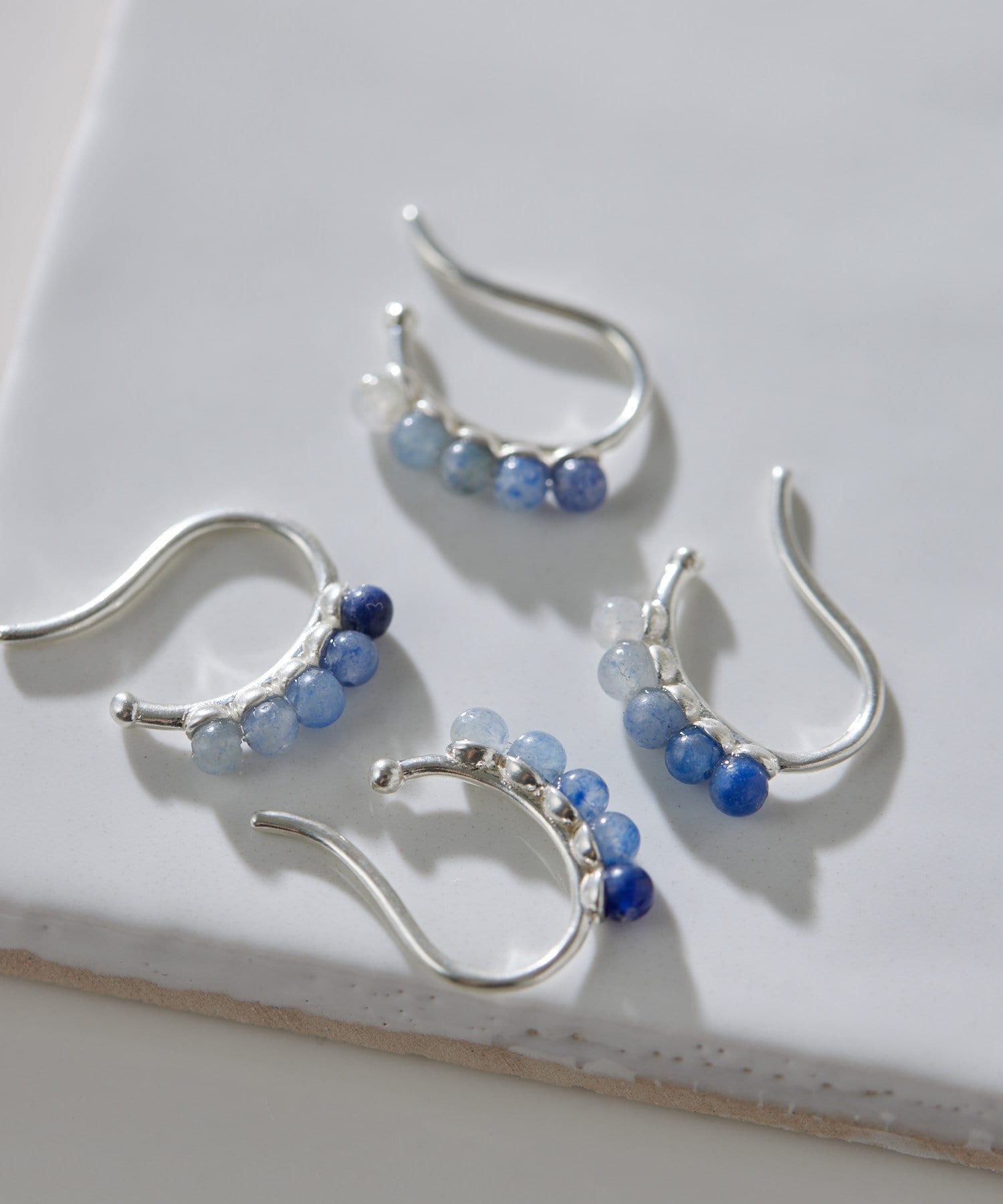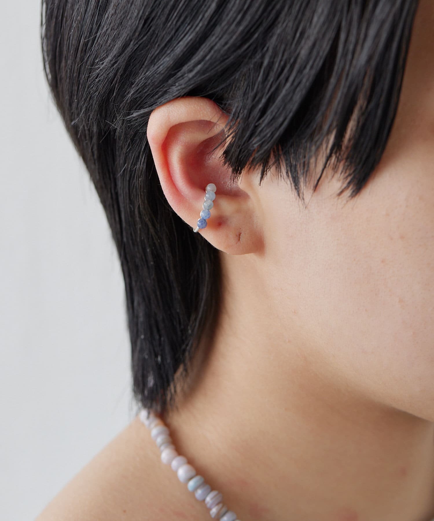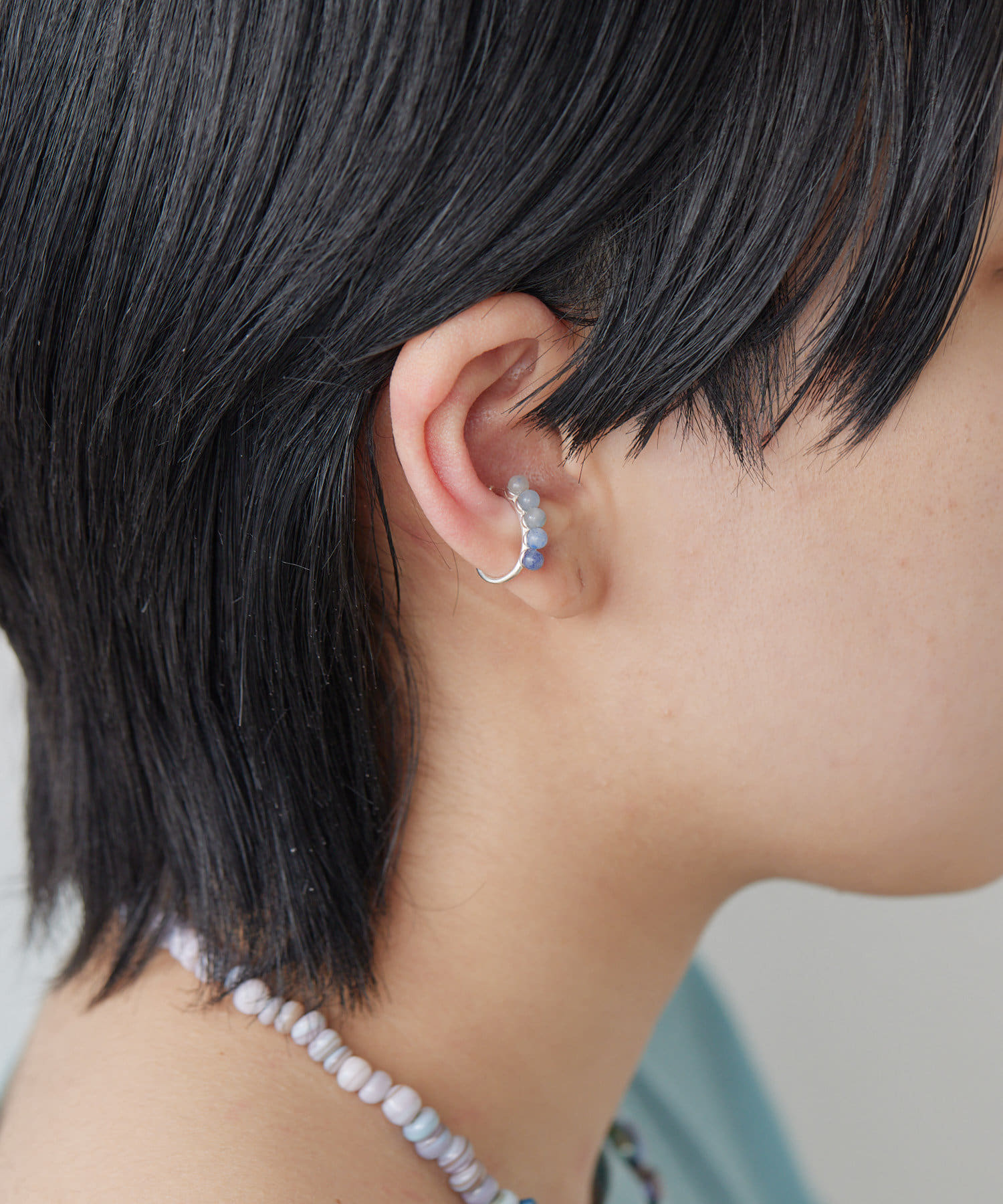 上品なスターリングシルバーに、ブルーアゲートの天然石をグラデーションで配置したイヤーカフ。