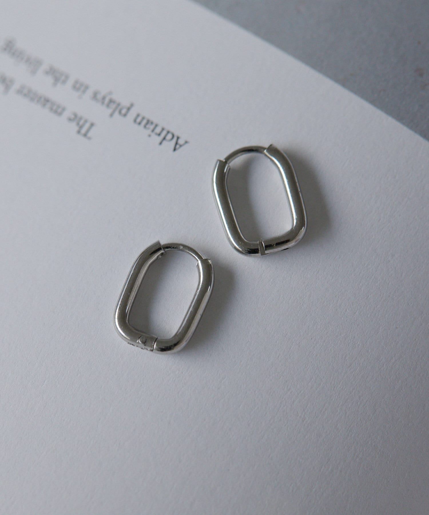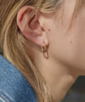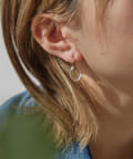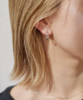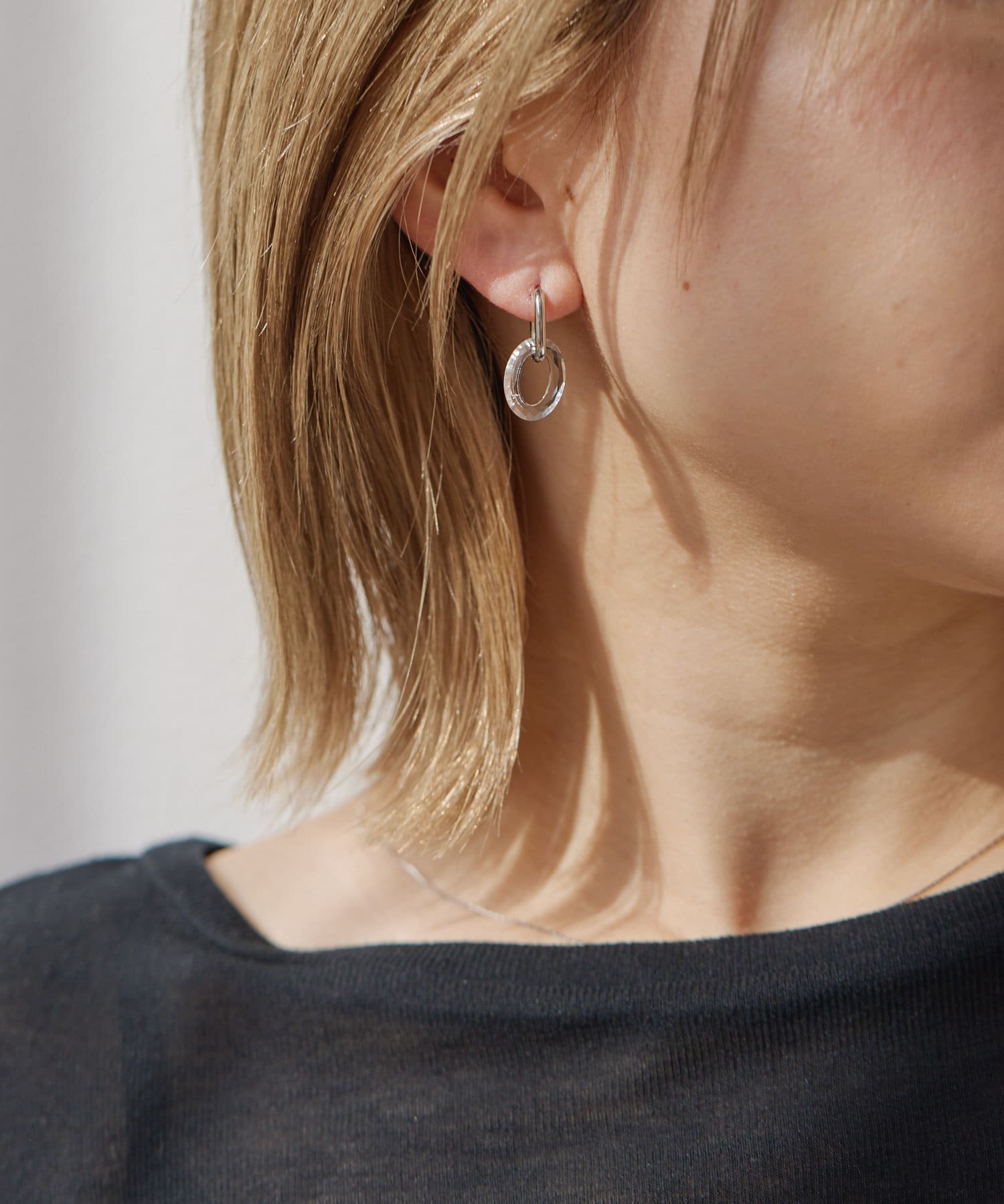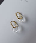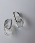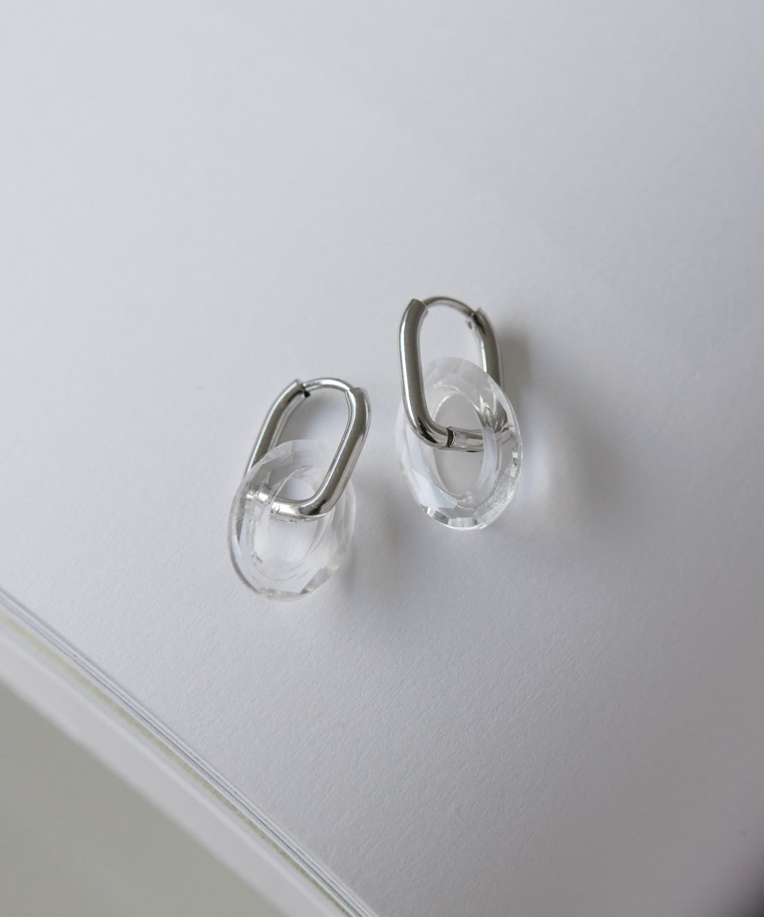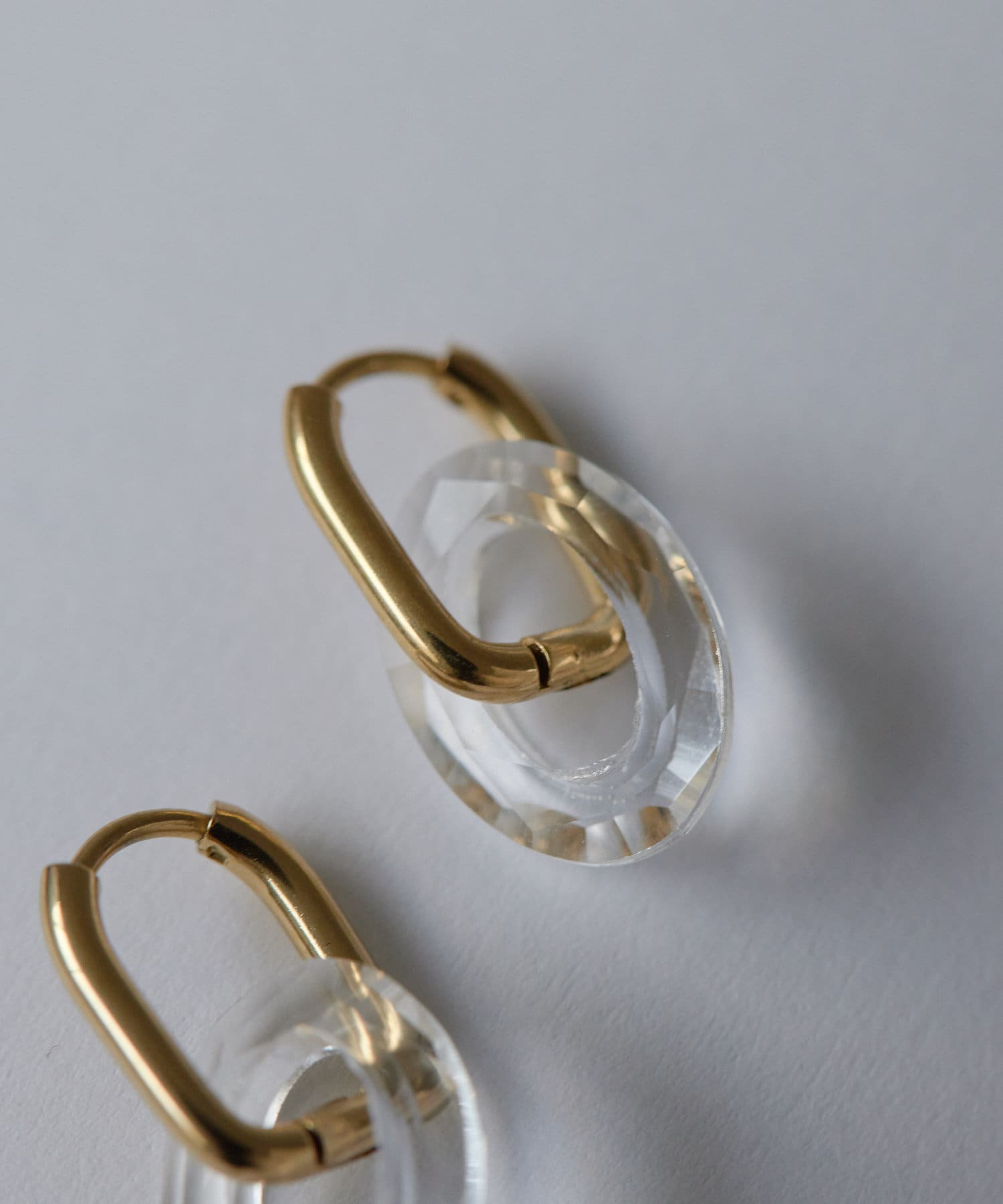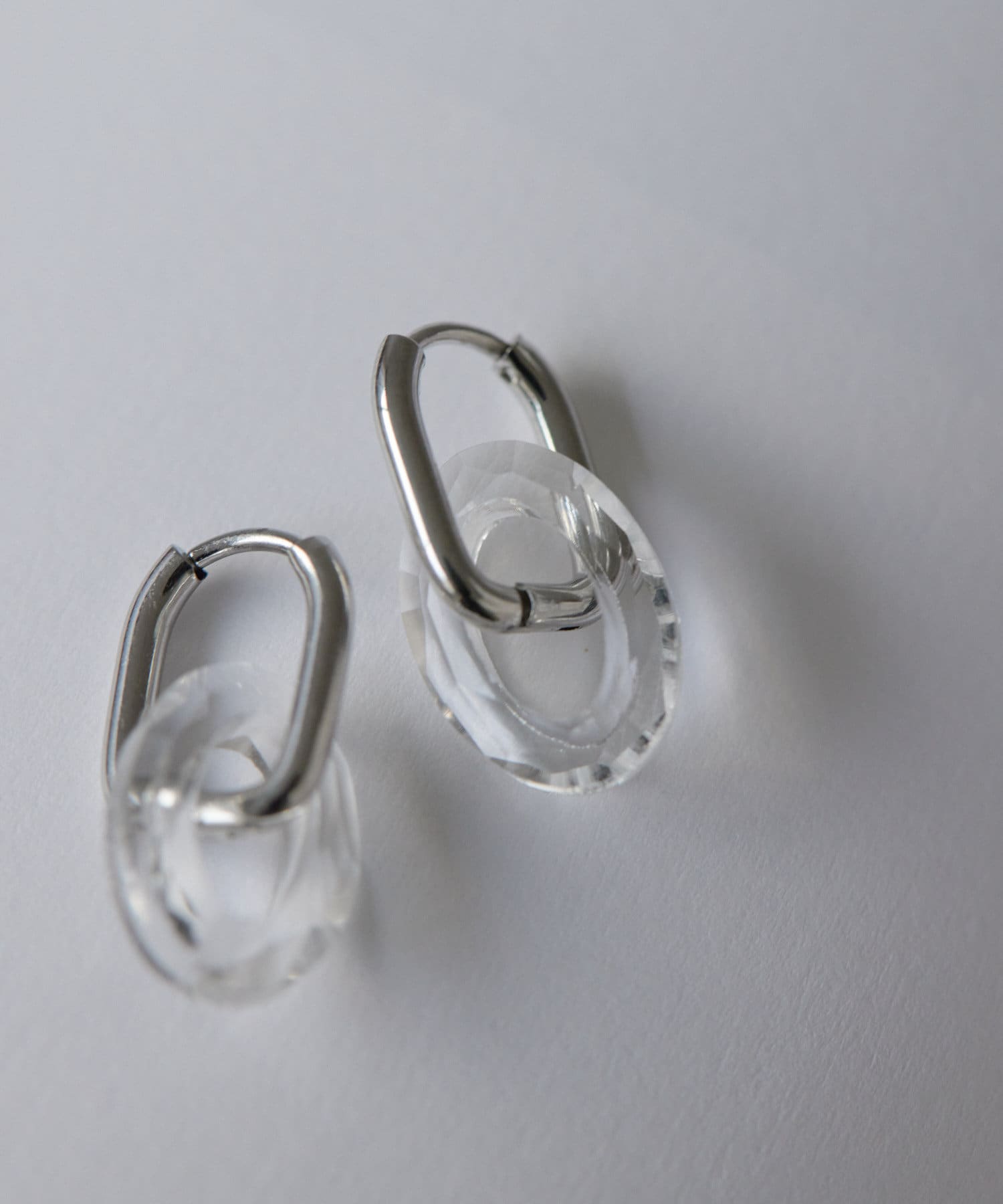 オーバル型のステンレスフープに、カットガラスのリングが揺れる繊細で美しいピアスです。