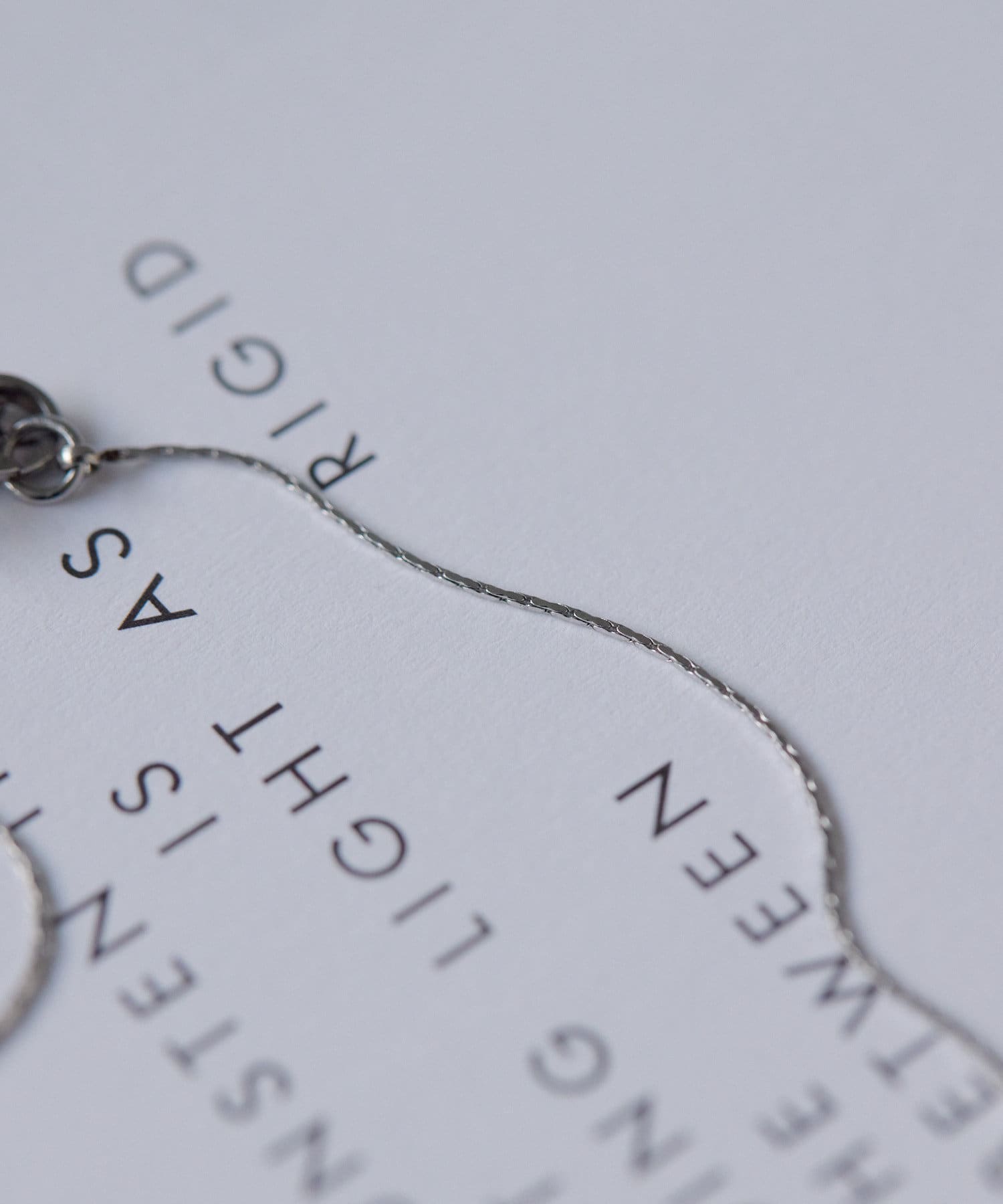 ・細く編まれたチェーンが、胸元に繊細な輝きと上品さをもたらす
