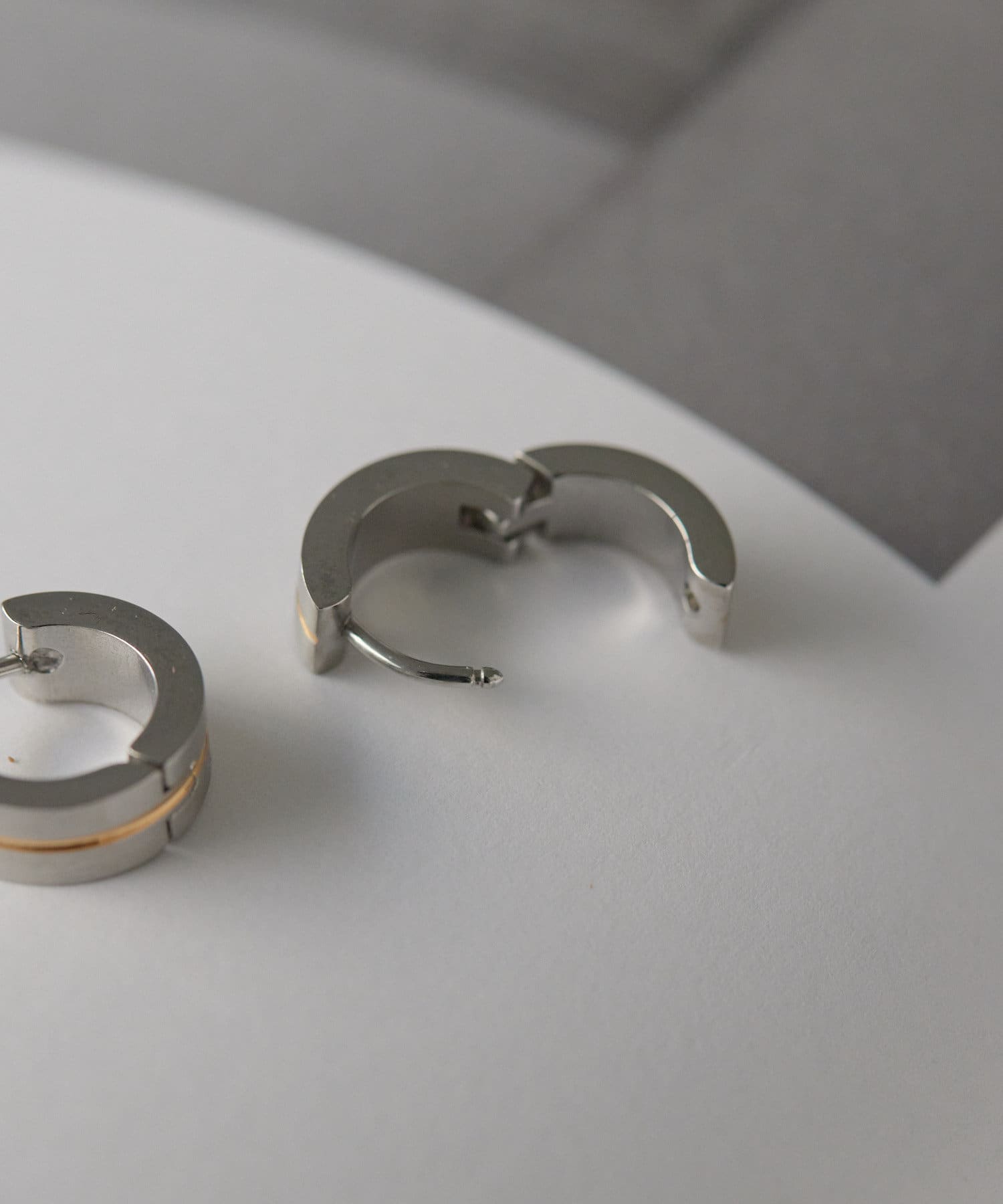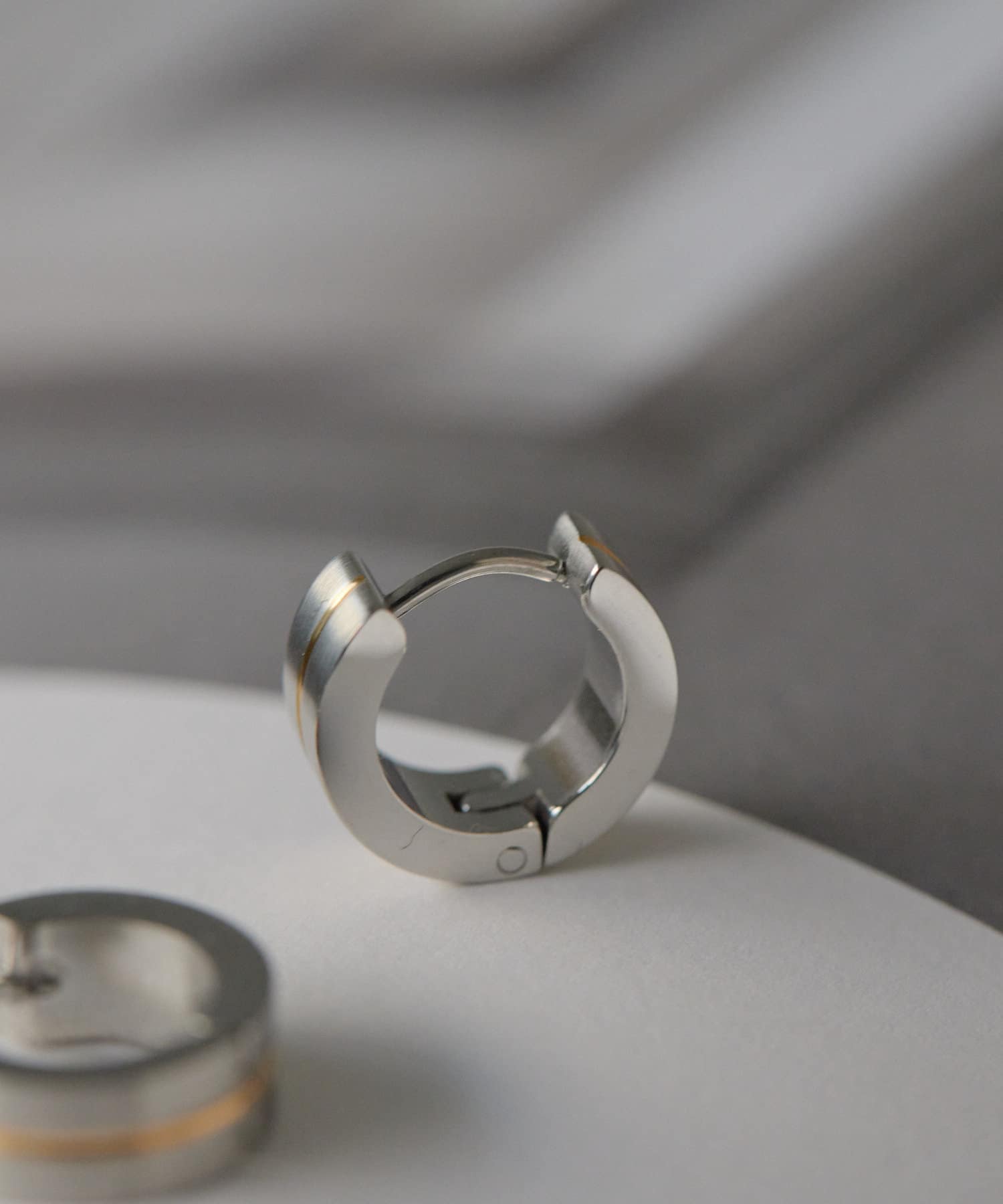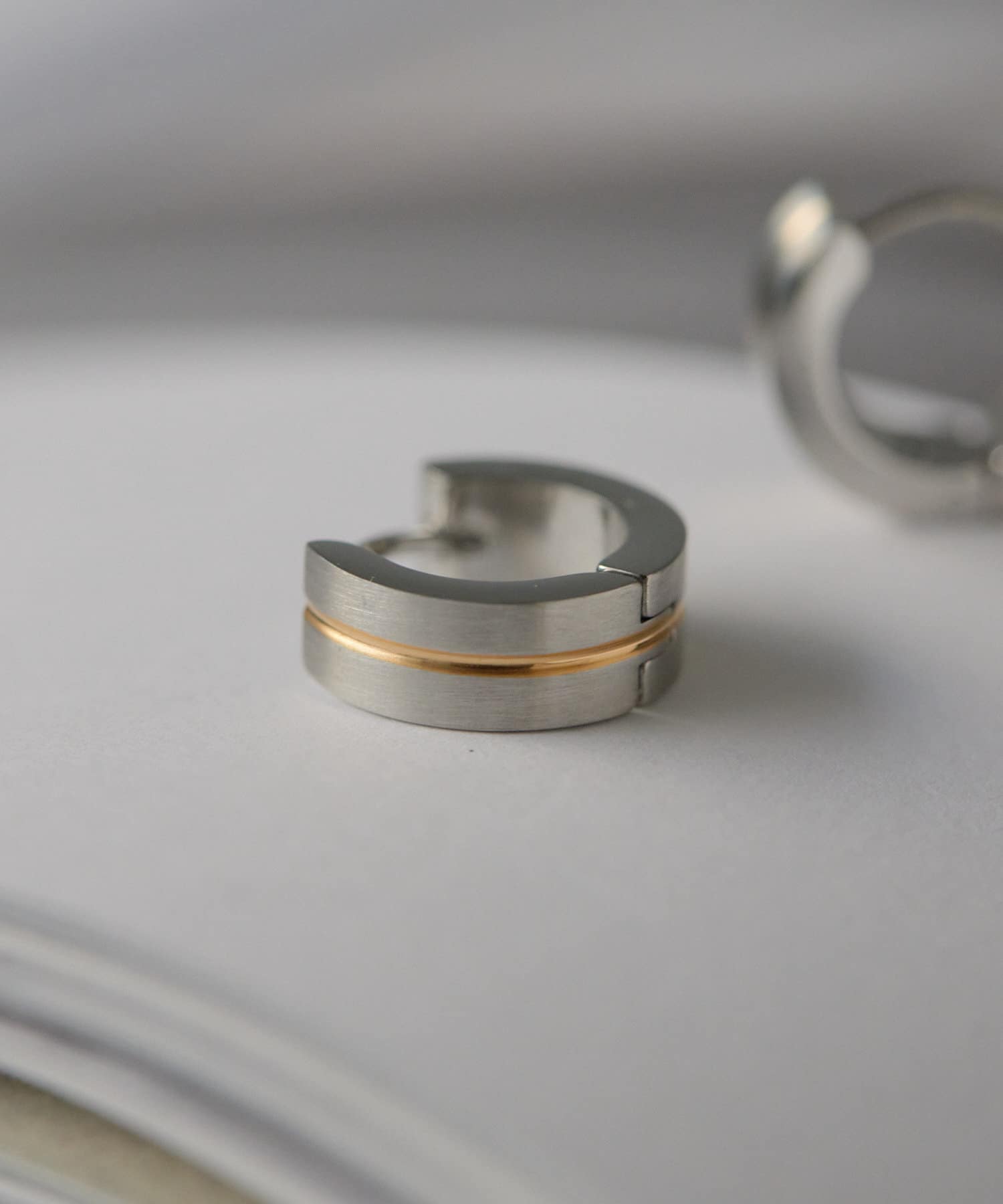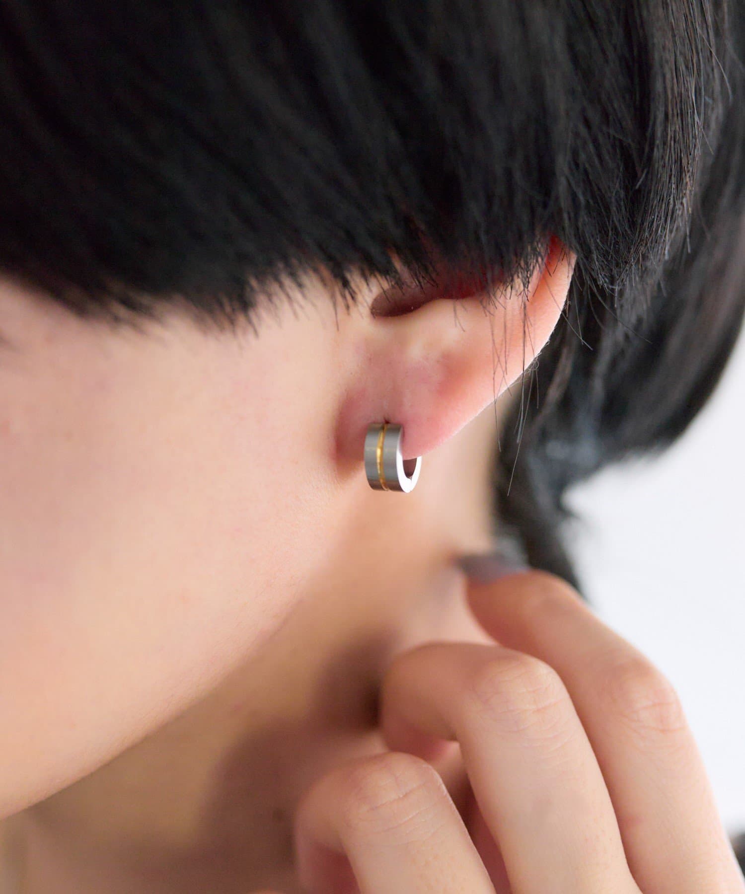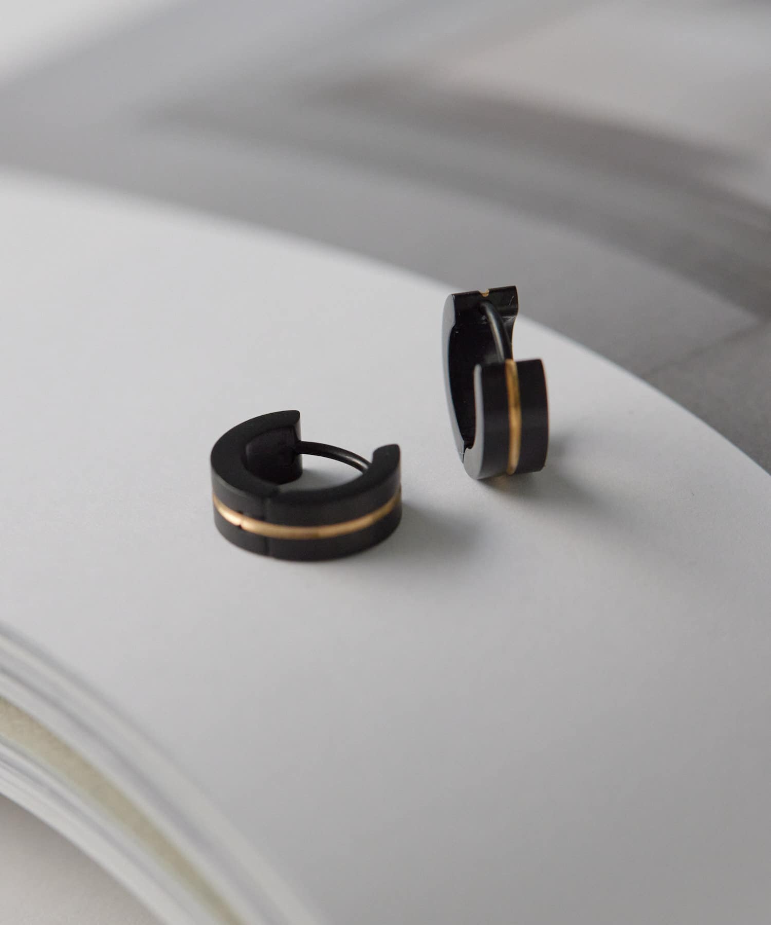 ゴールドラインがアクセントになった、シンプルながらも目を惹くピアス