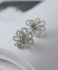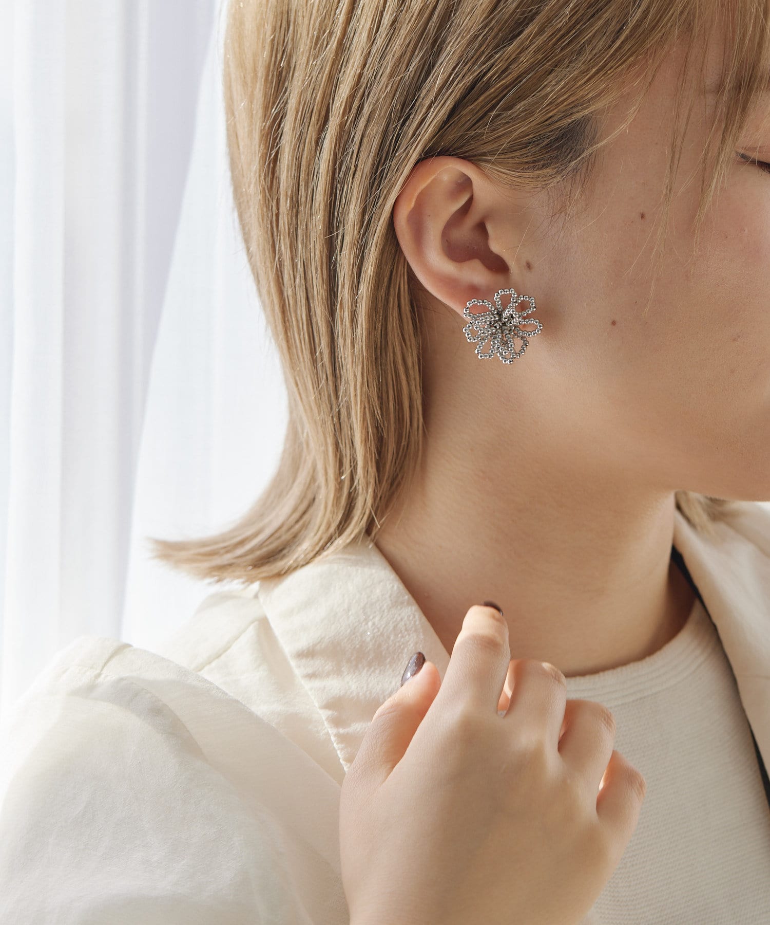 メタルビーズを繊細に編み込んだ、フラワーモチーフのピアス