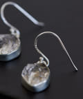 ランダムなカッティングが施された水晶は、シルバーの枠に上品にセットされ耳元でキラリと光ります。