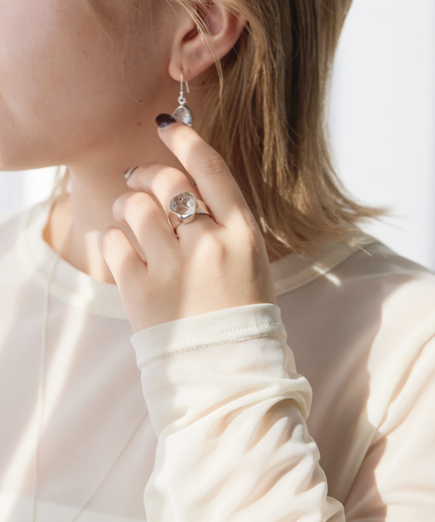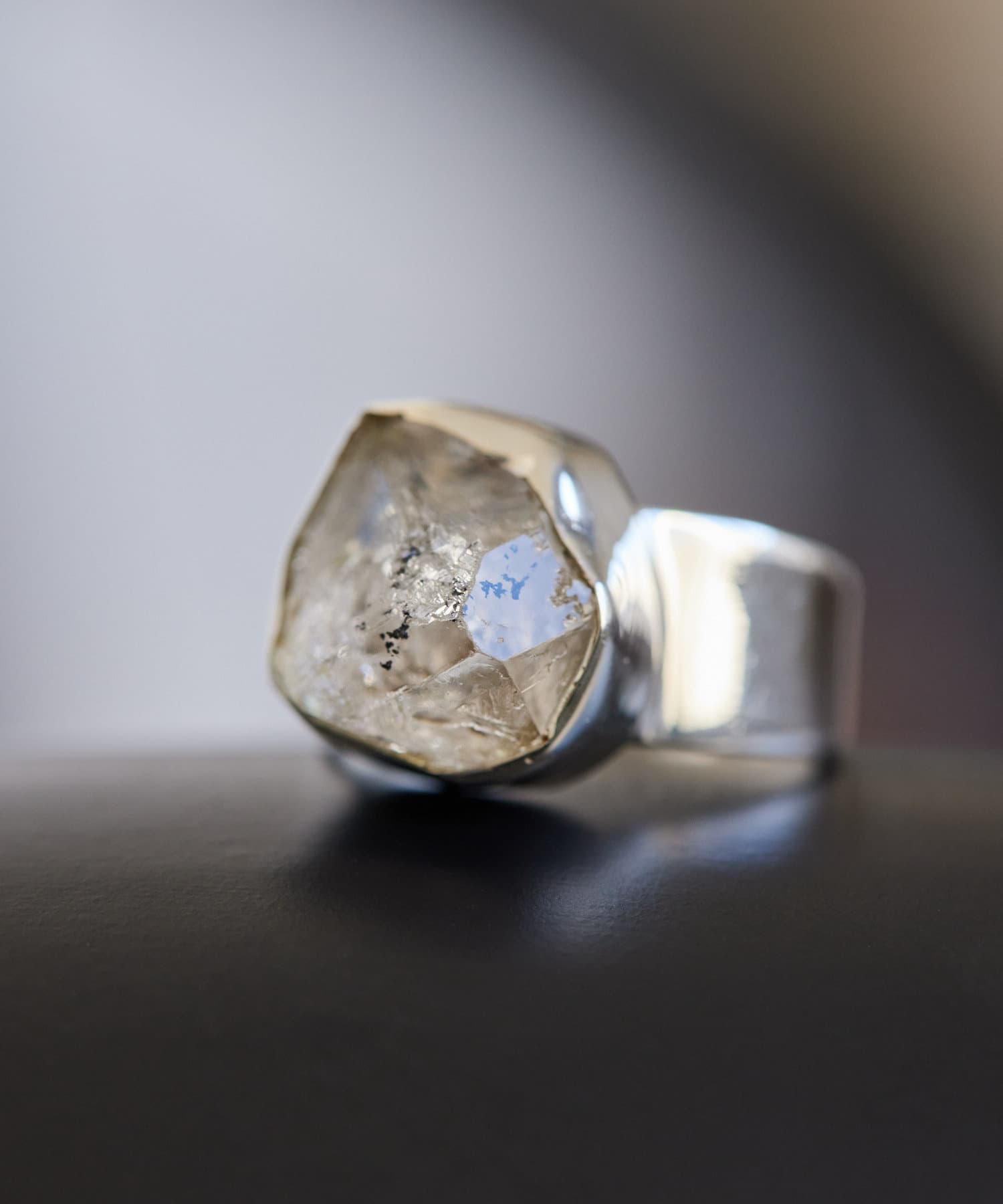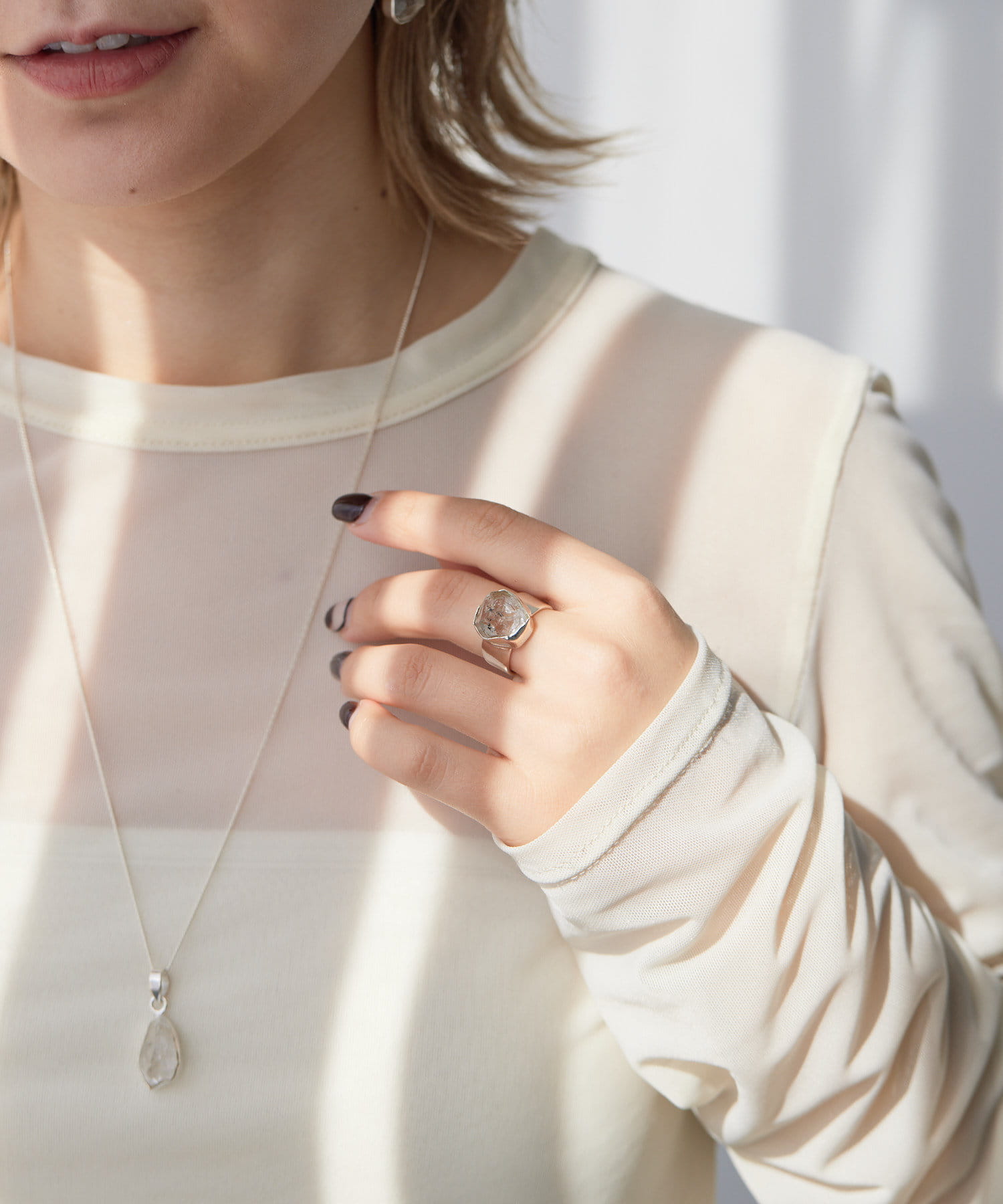 シンプルながらも存在感抜群。シルバーの枠が、ハーキマーダイヤの透明感をさらに引き立てます。
