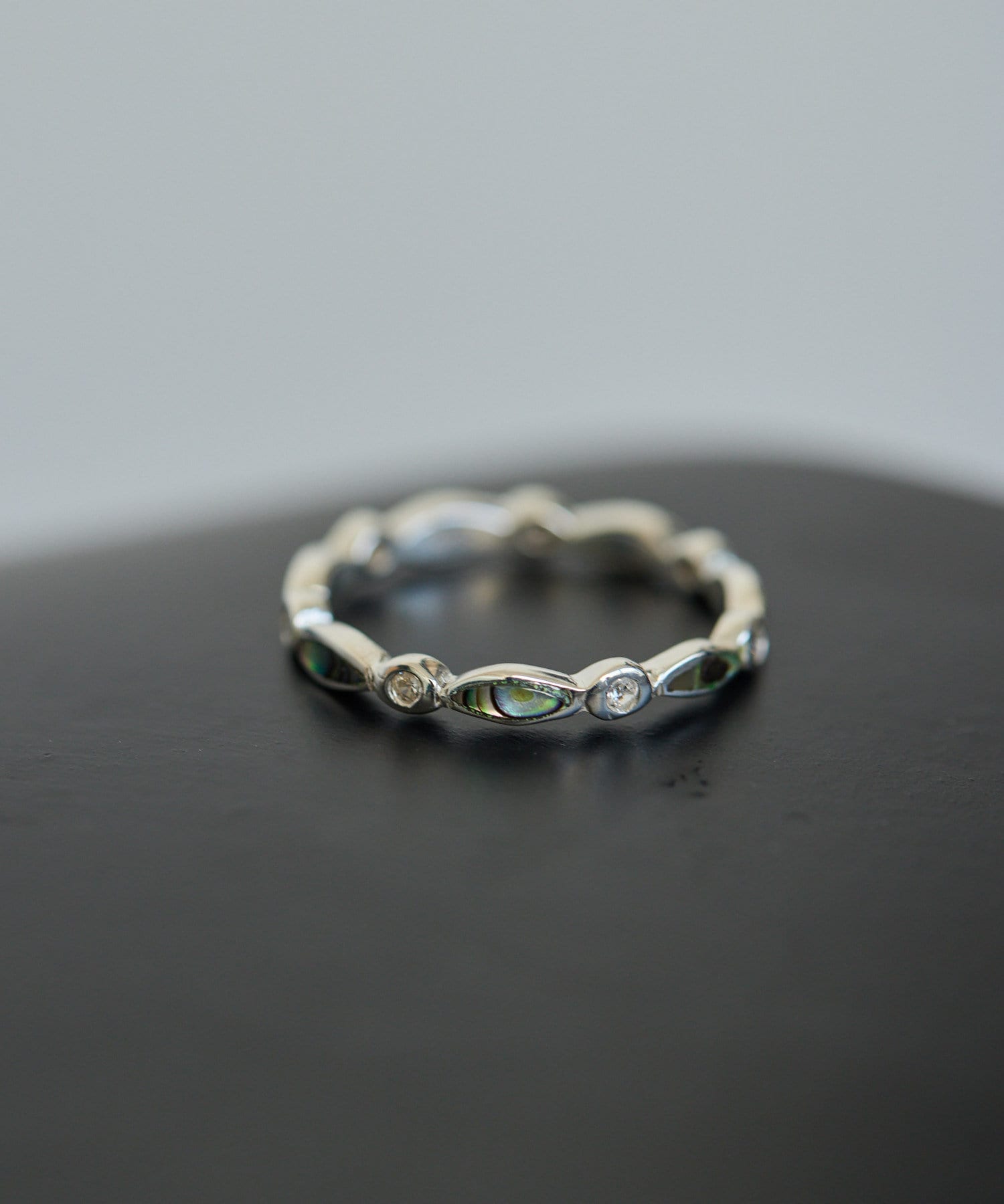 優しく光るシェルと、きらめくジルコニアの組み合わせが、女性らしい手元を演出します。