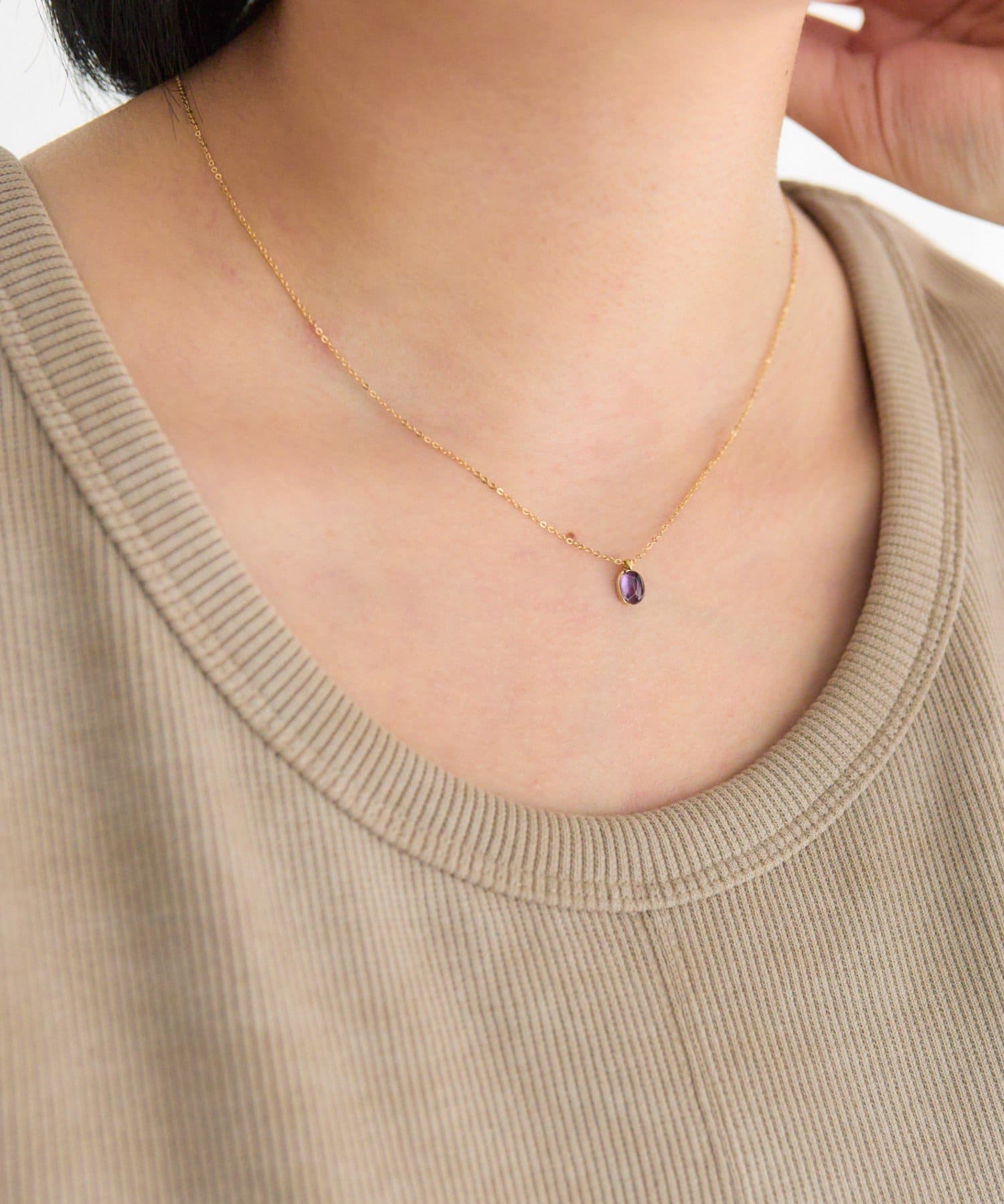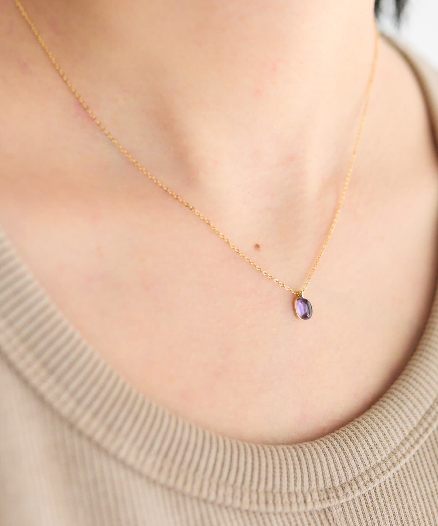 さりげない輝きが魅力のプチカボション天然石ネックレス。