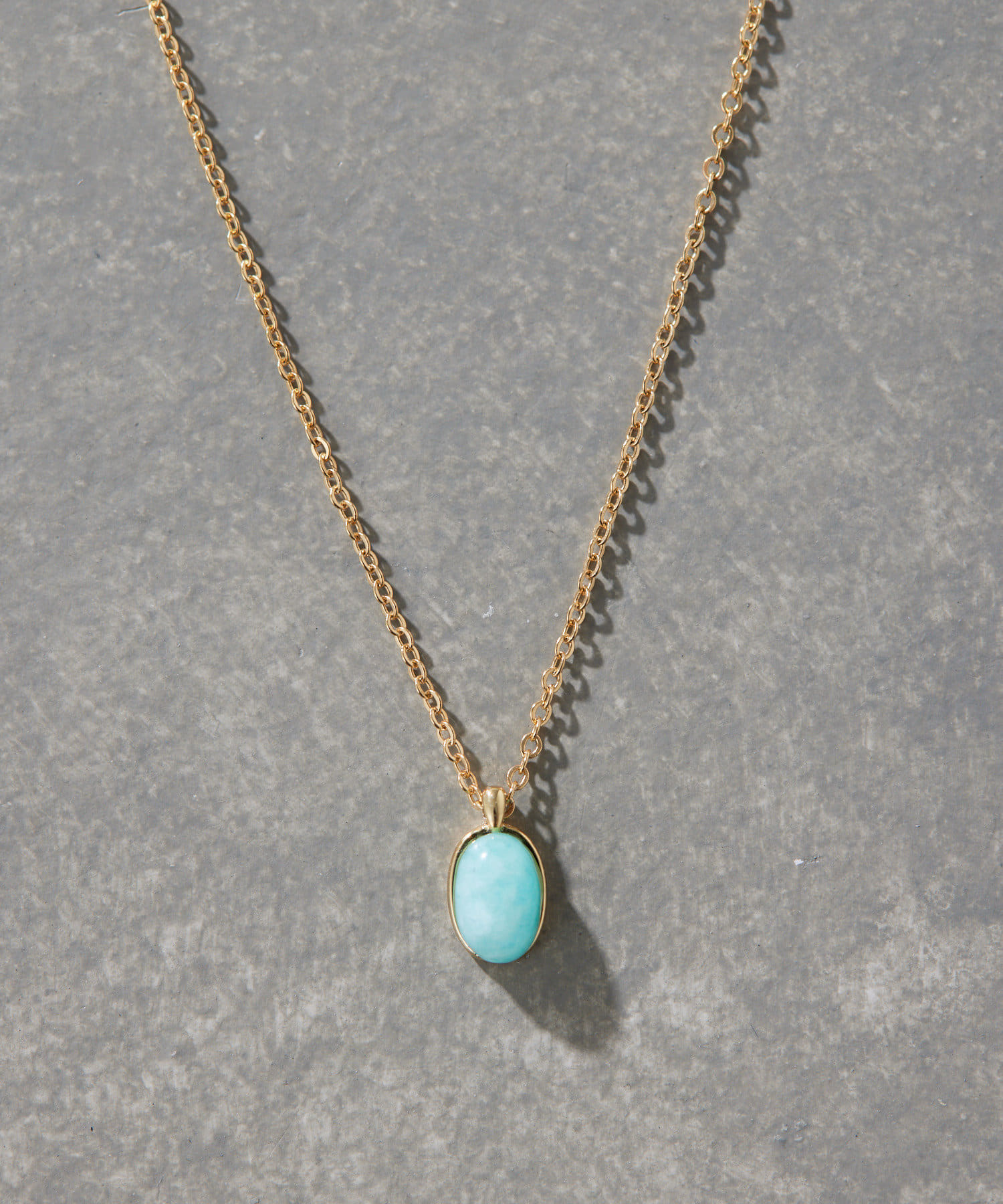 天然石の優しい色合いが、胸元に上品なアクセントをプラス。