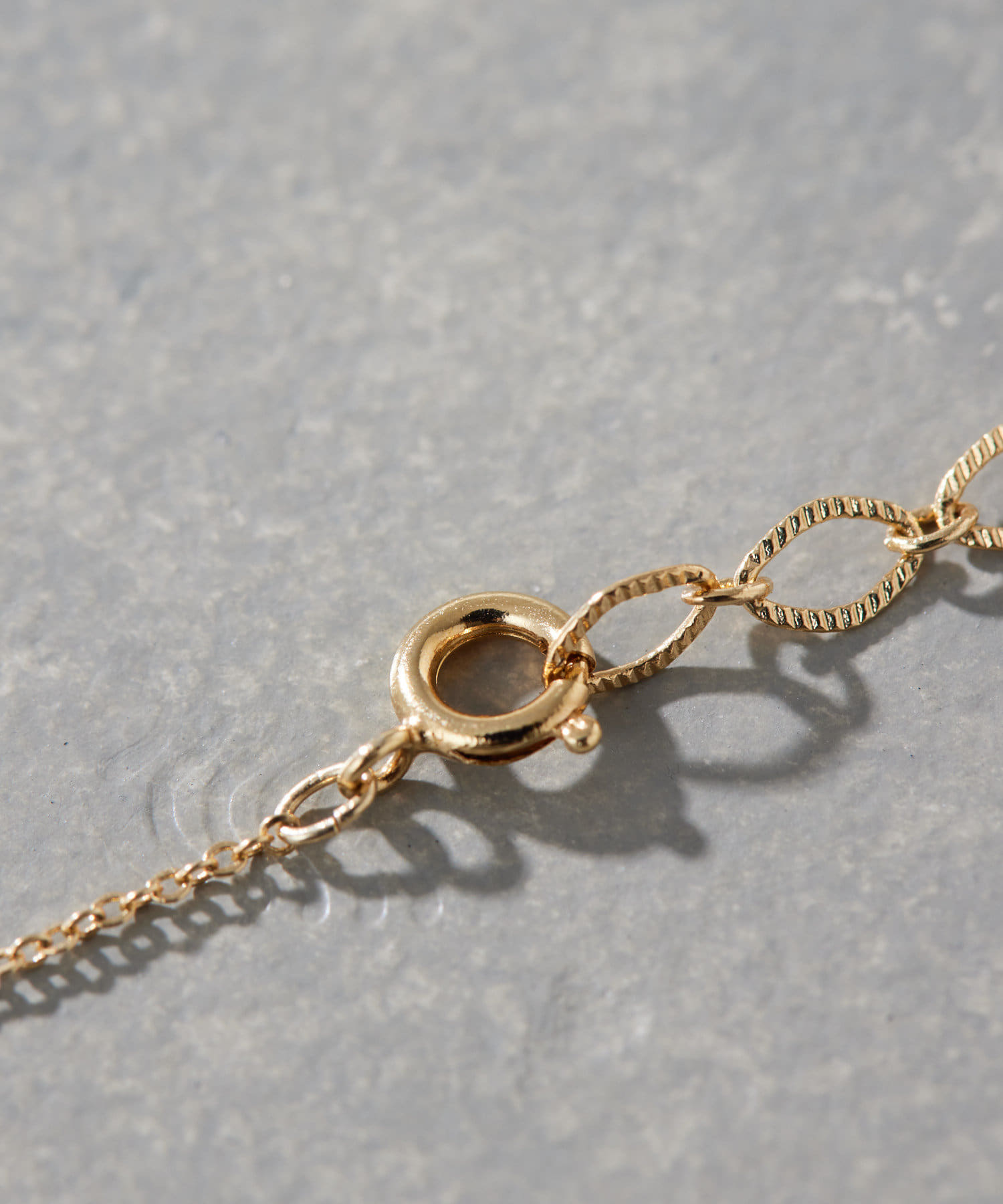 シンプルながらも上品なアズキチェーンとの組み合わせは、どんなスタイルにも合わせやすく、デイリー使いにぴったり。
