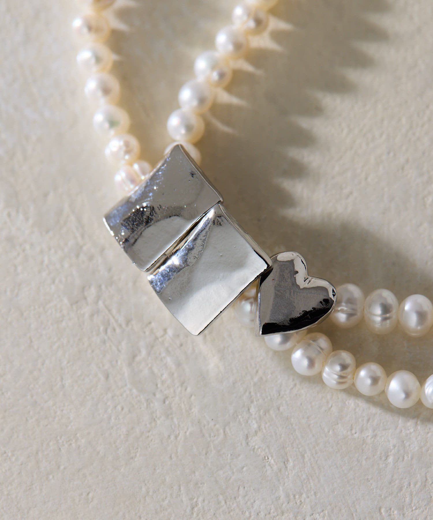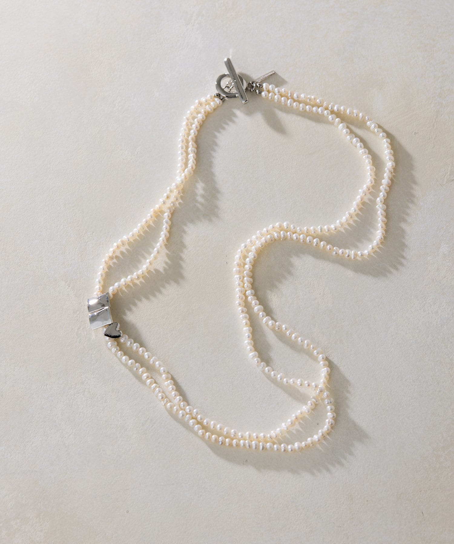 【beq Pettina(ベック ペティーナ)】メタルパーツ付き淡水パール2連ネックレス