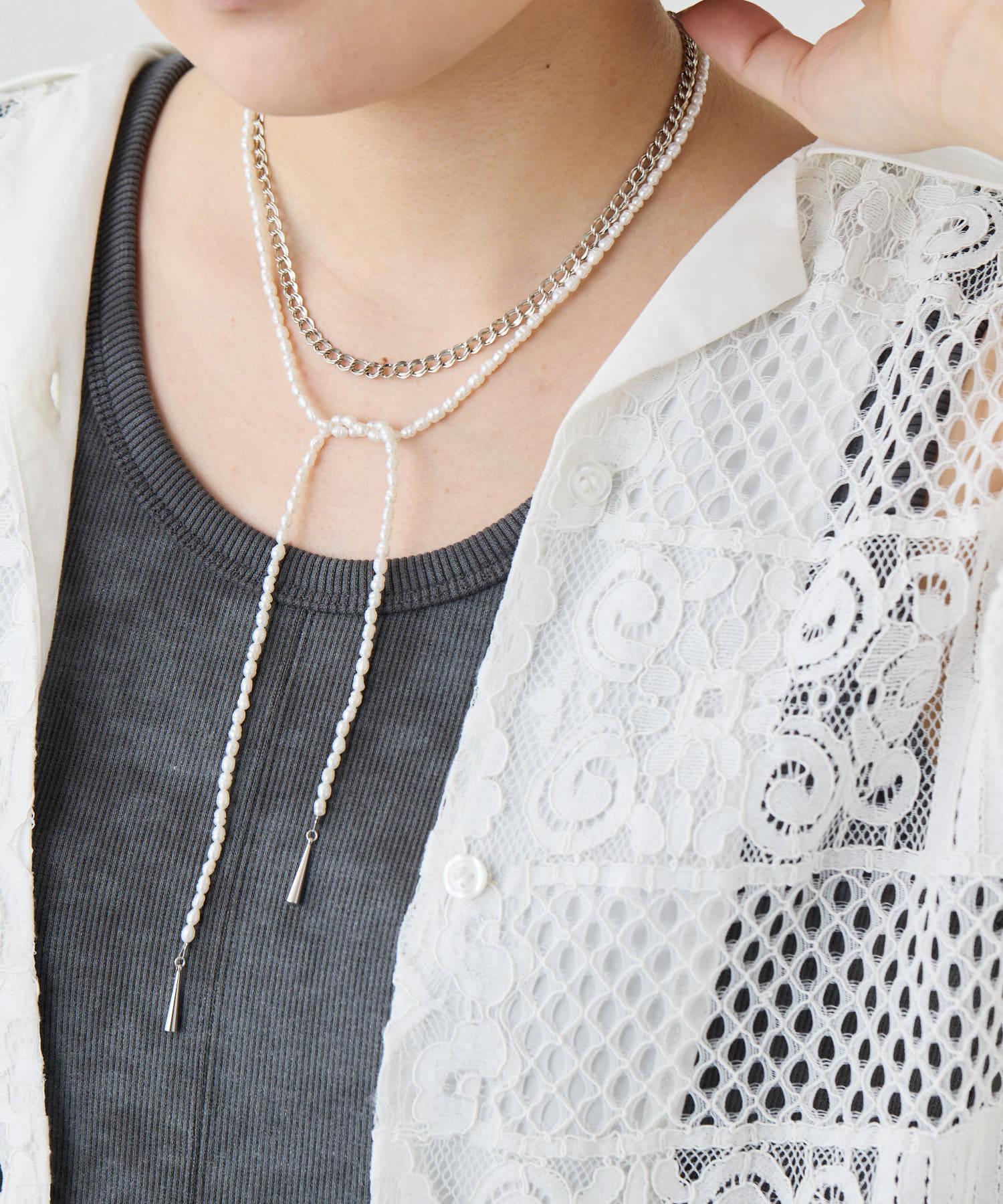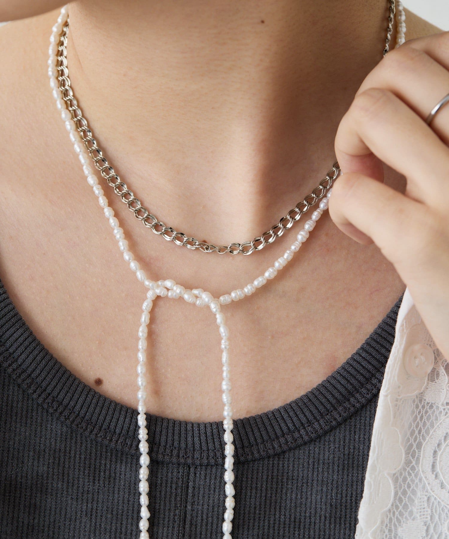 【beq Pettina(ベック ペティーナ)】淡水パール×メタルアレンジネックレス